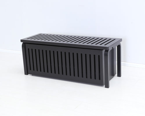• Artek Aalto ritiläpenkki 153A ja puusepän tekemä säilytyslaatikko