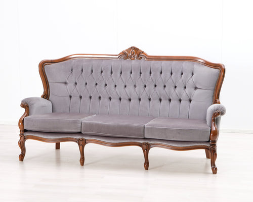 3-istuttava rokokoosohva vaaleanharmaa