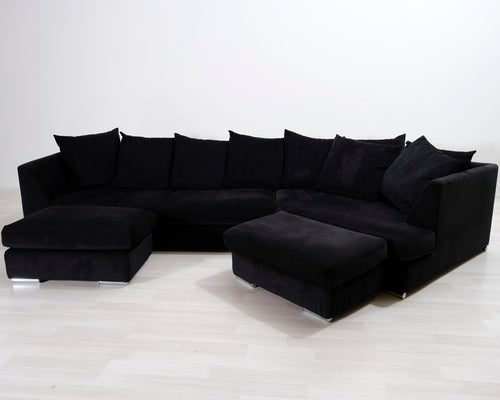 • 6-istuttava kangassohva ja kaksi rahia musta
