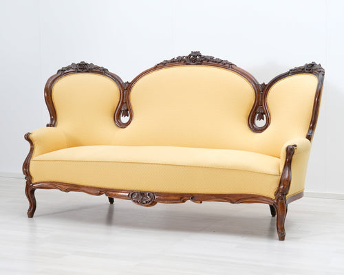 • Antiikkinen sohva keltaisella verhoilulla