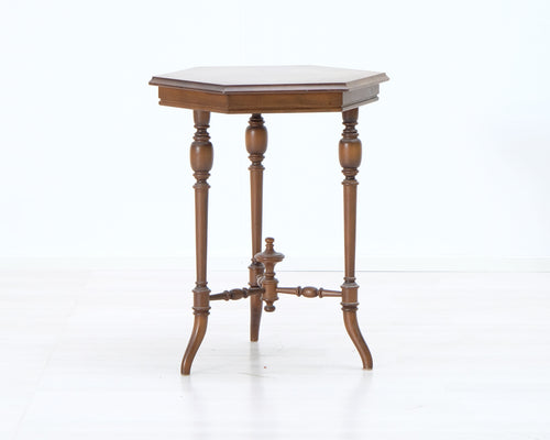 • Antiikkinen sivupöytä kuusikulmaisella pöytälevyllä