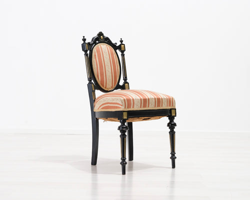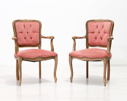 • Antiikkinen tuoli vaaleanpunaisella verhoilulla