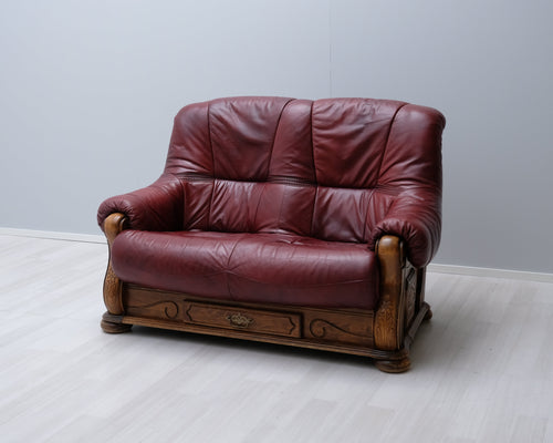 2-istuttava nahkasohva viininpunainen