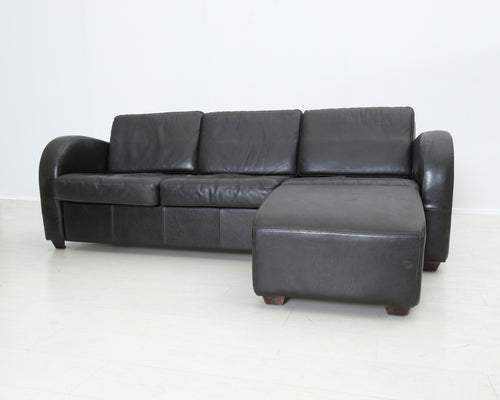 3-istuttava antiikkinahkainen sohva rahilla