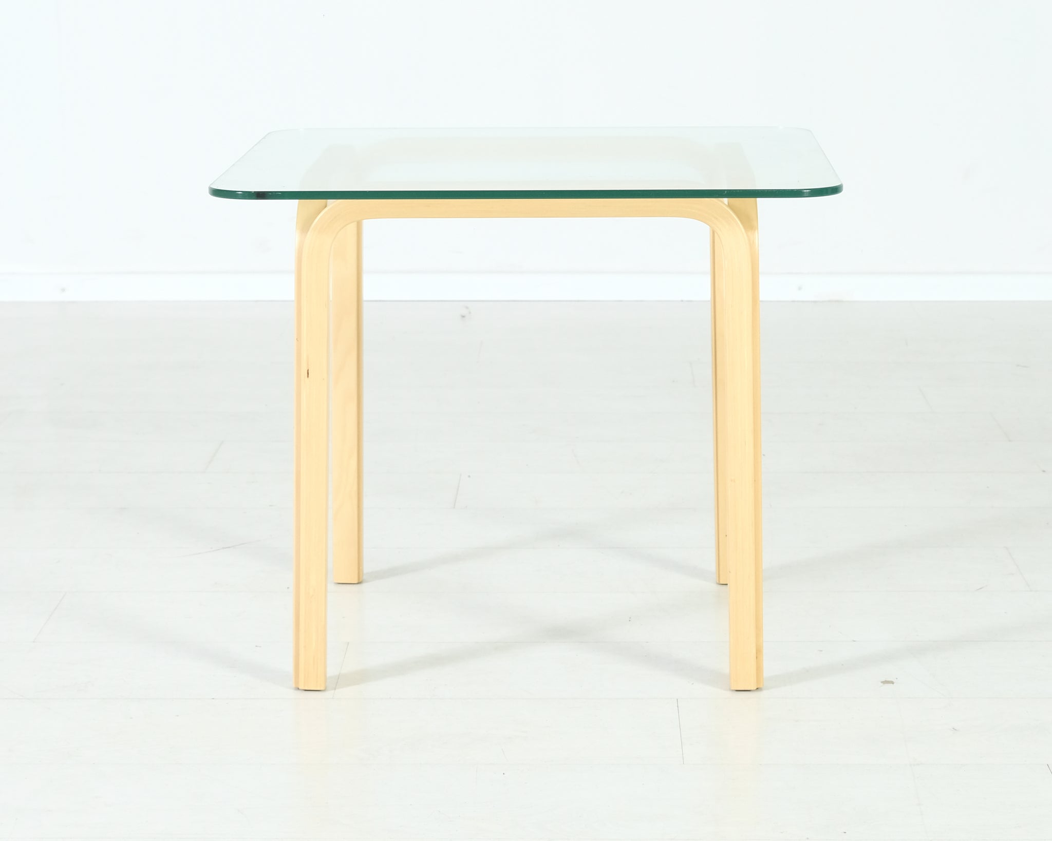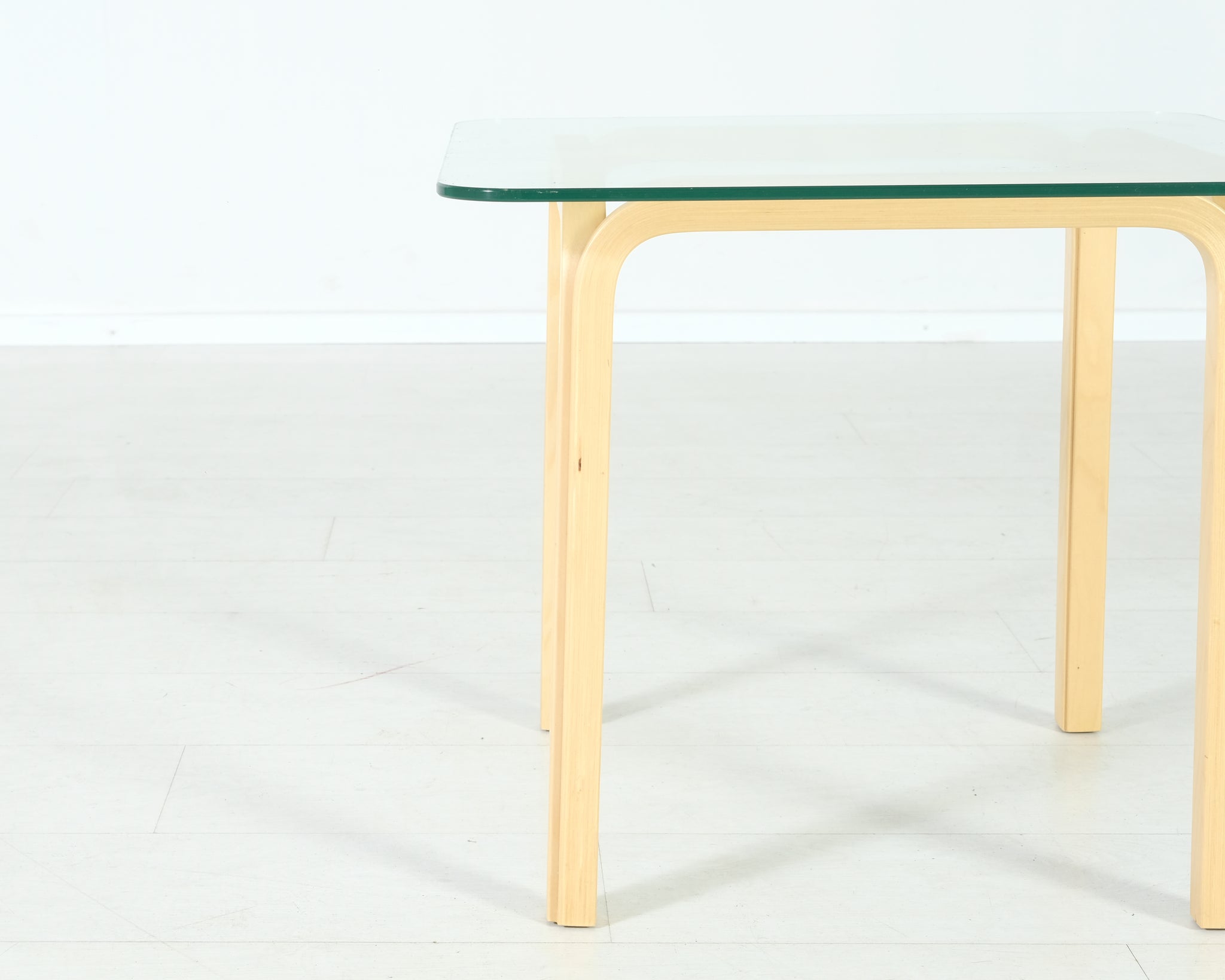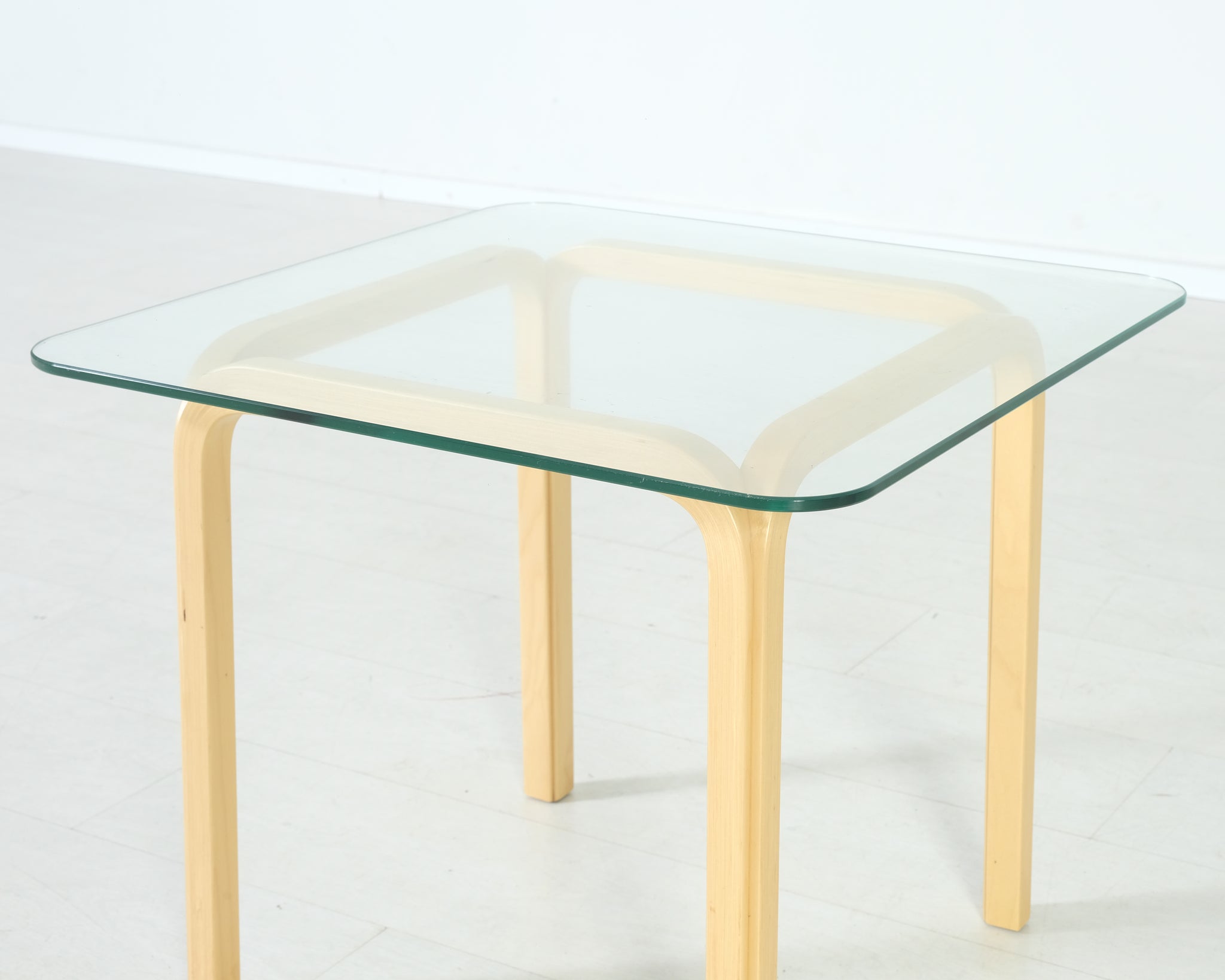 Tämä tyylikäs lasipöytä on Alvar Aallon suunnittelema. Tunnusomaiset Y-jalat. Pienin koko sarjaan kuuluneista pöydistä, ei enää tuotannossa.