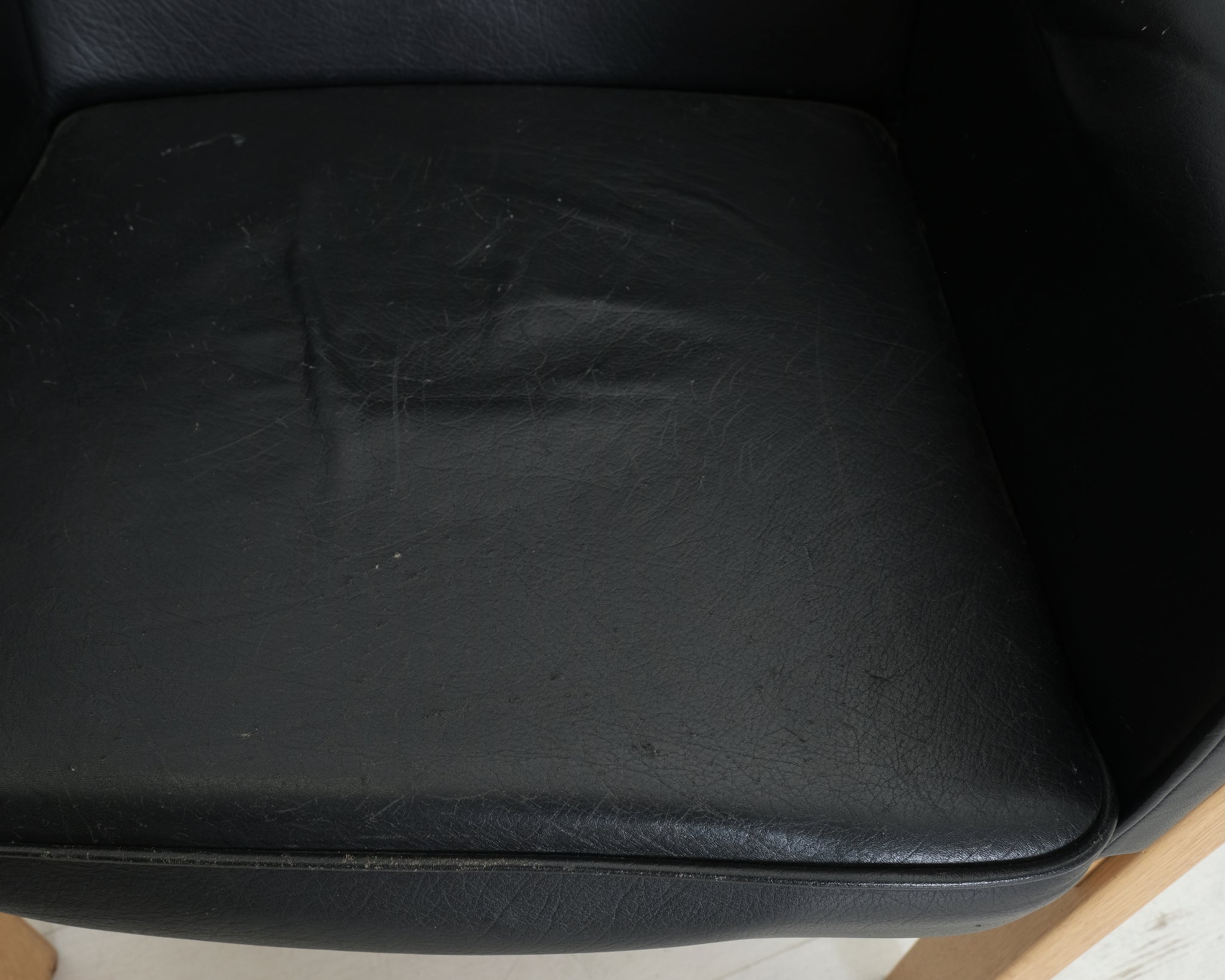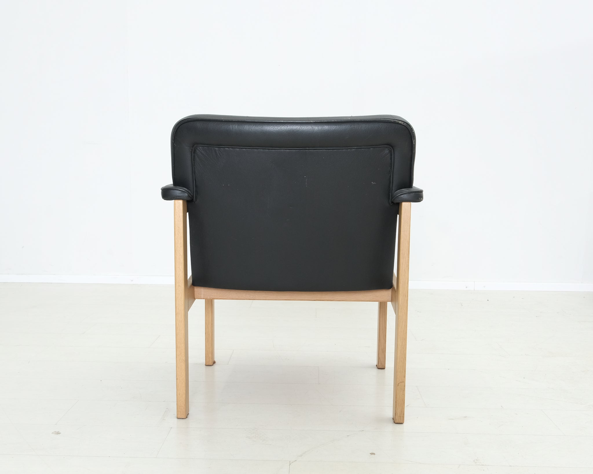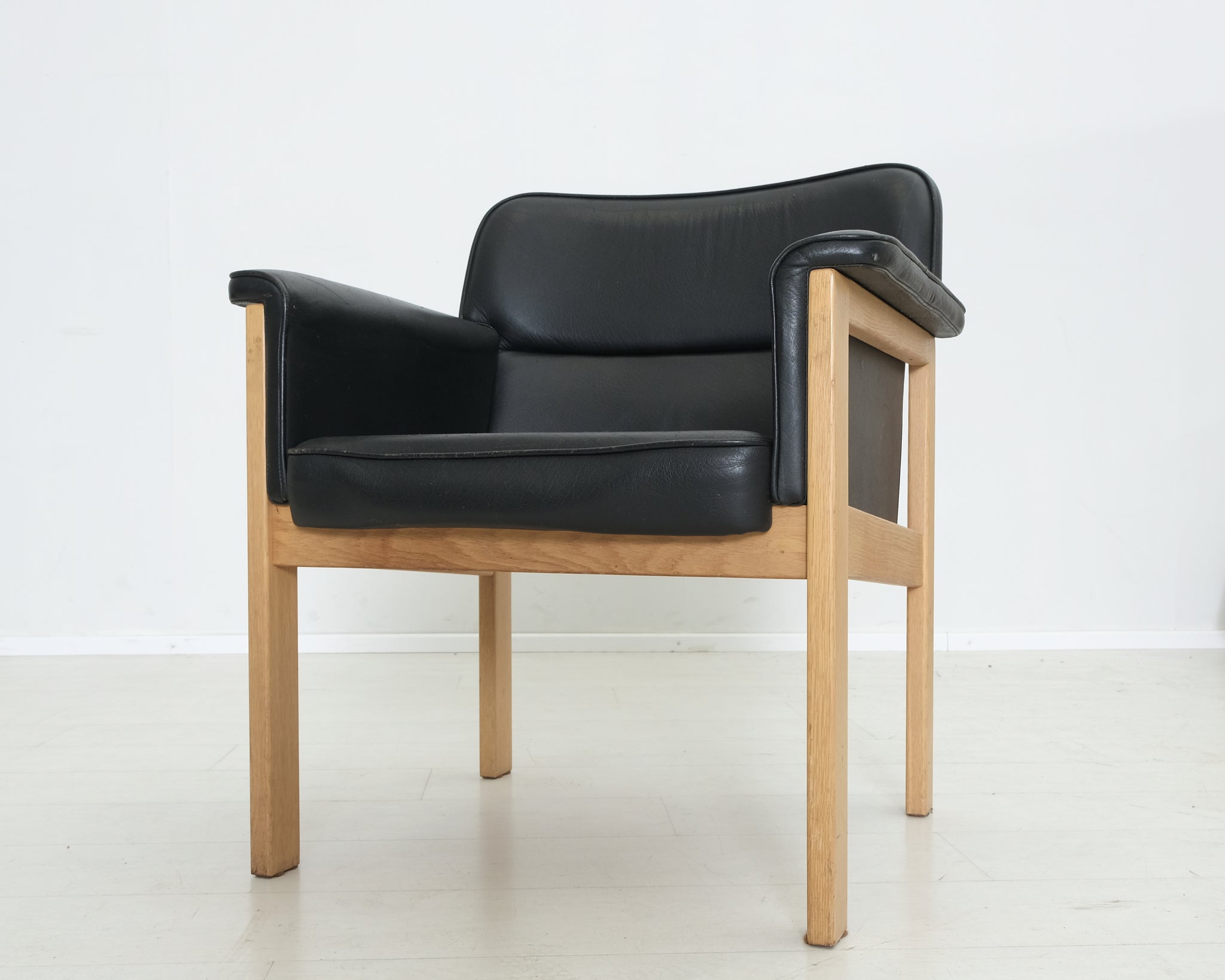 Vanhaa Askon omaa tuotantoa. Tyylikäs nahkaverhoiltu tuoli on jo nähnyt hieman elämää, mutta runko on hyvässä kunnossa ja siitä saa personoitua hyvän tuolin.