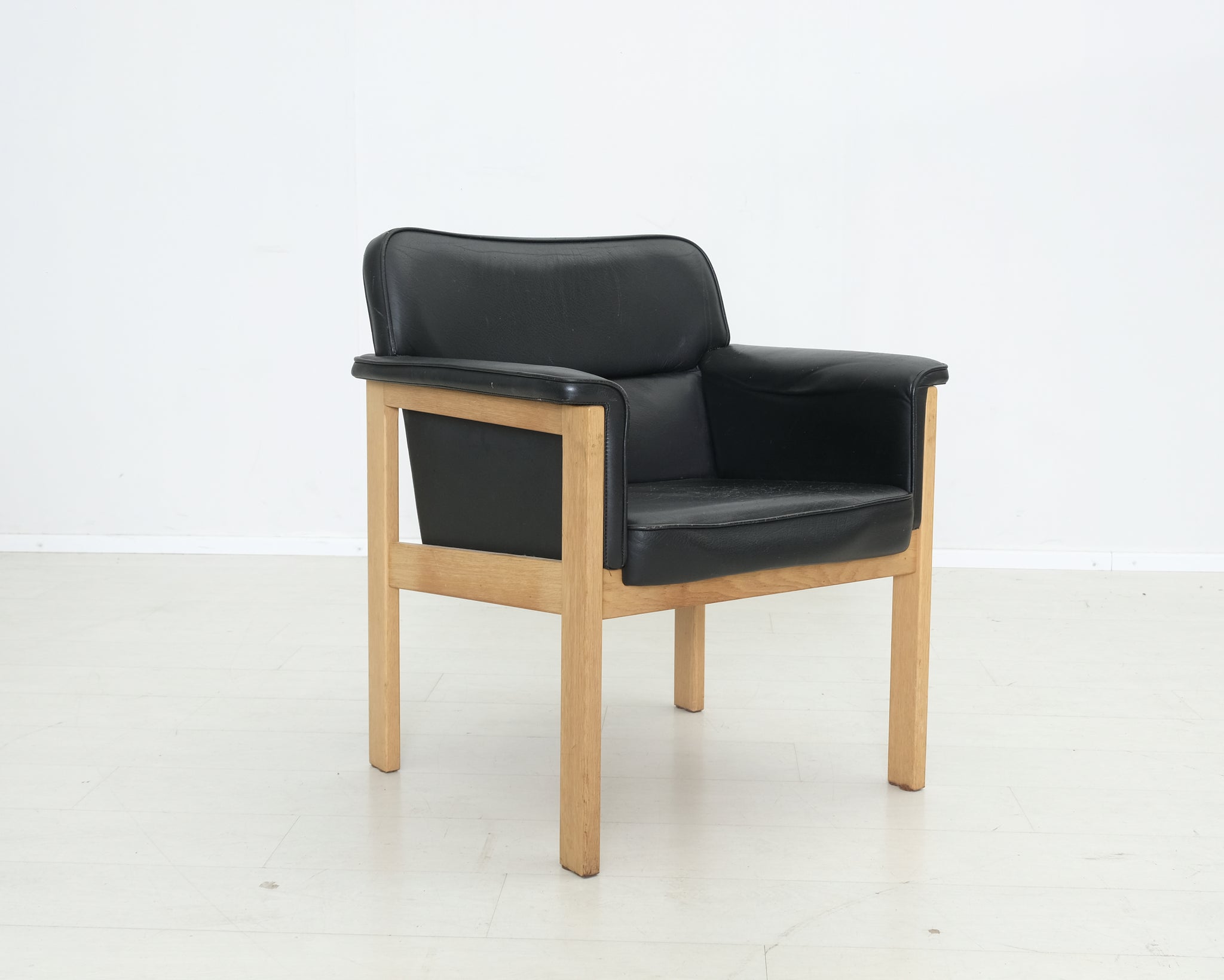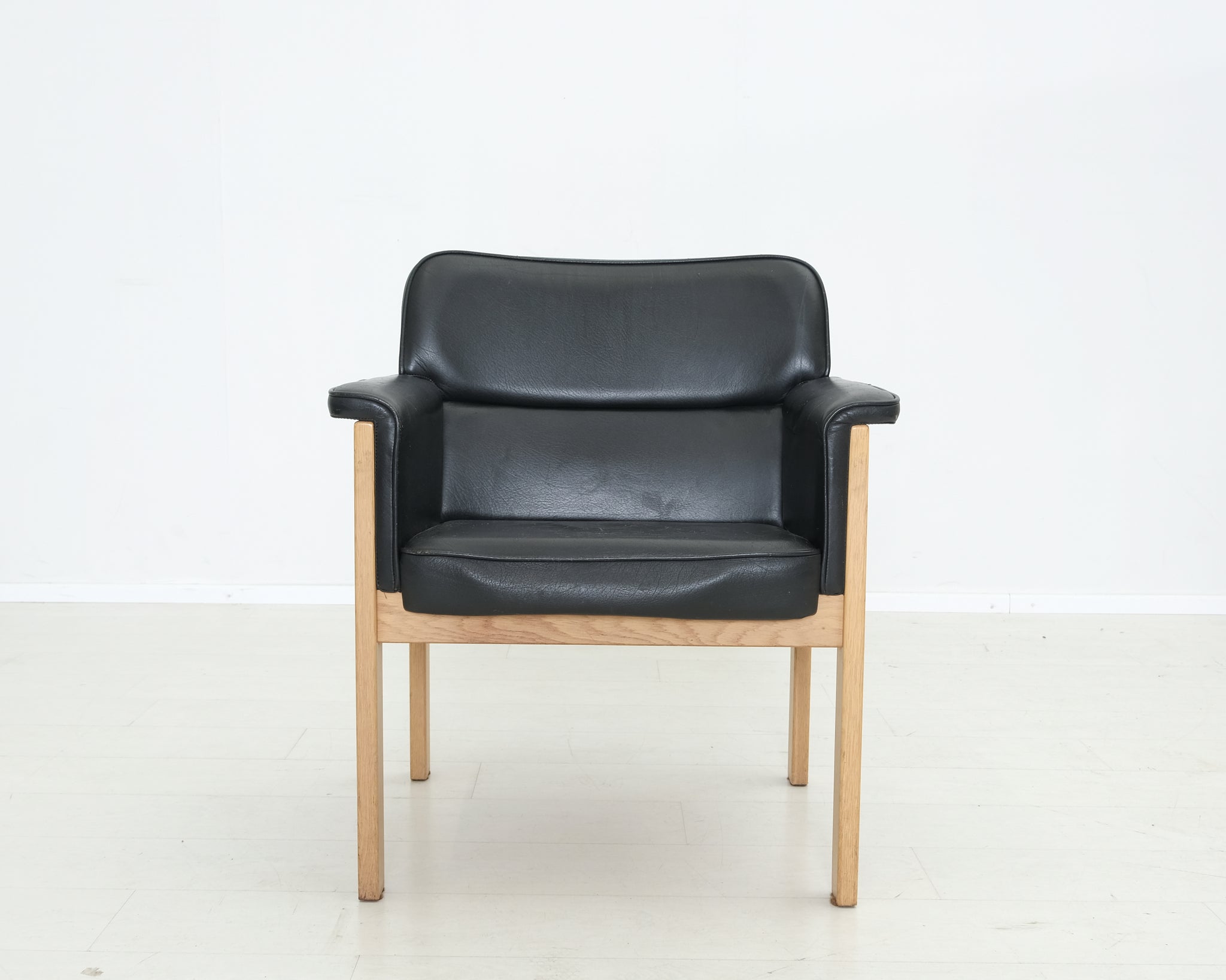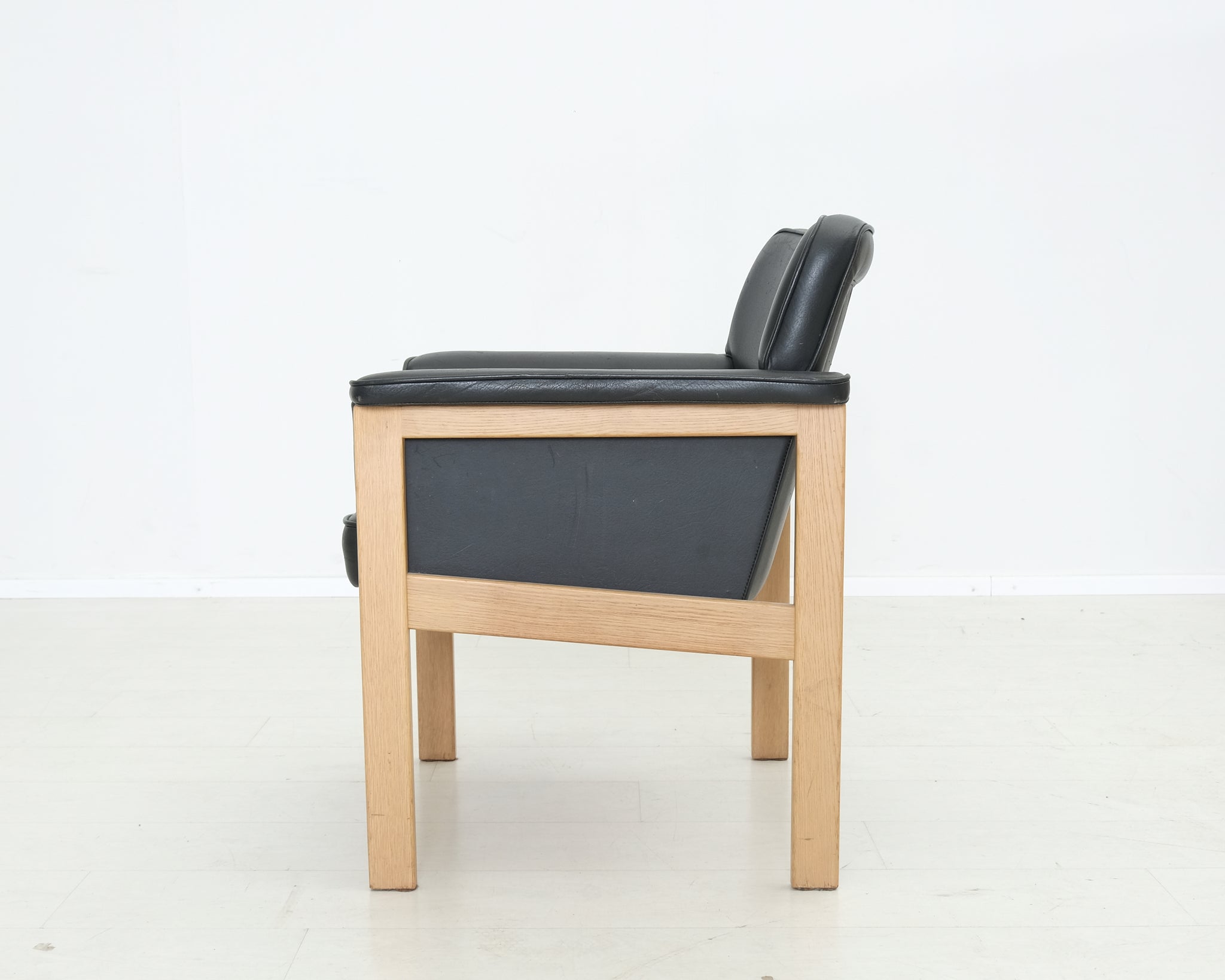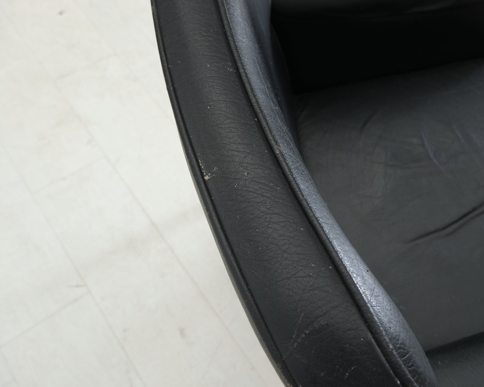 Vanhaa Askon omaa tuotantoa. Tyylikäs nahkaverhoiltu tuoli on jo nähnyt hieman elämää, mutta runko on hyvässä kunnossa ja siitä saa personoitua hyvän tuolin.