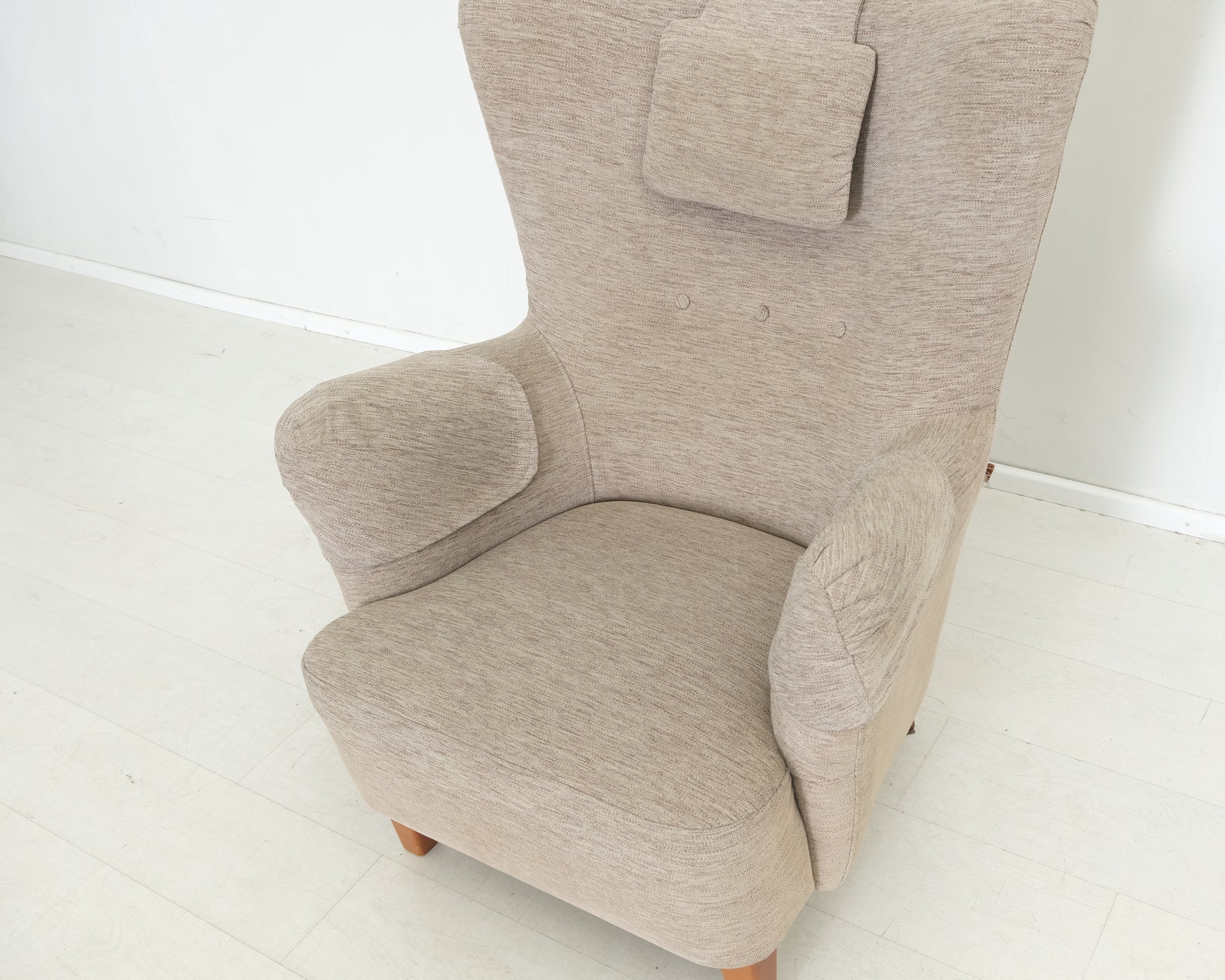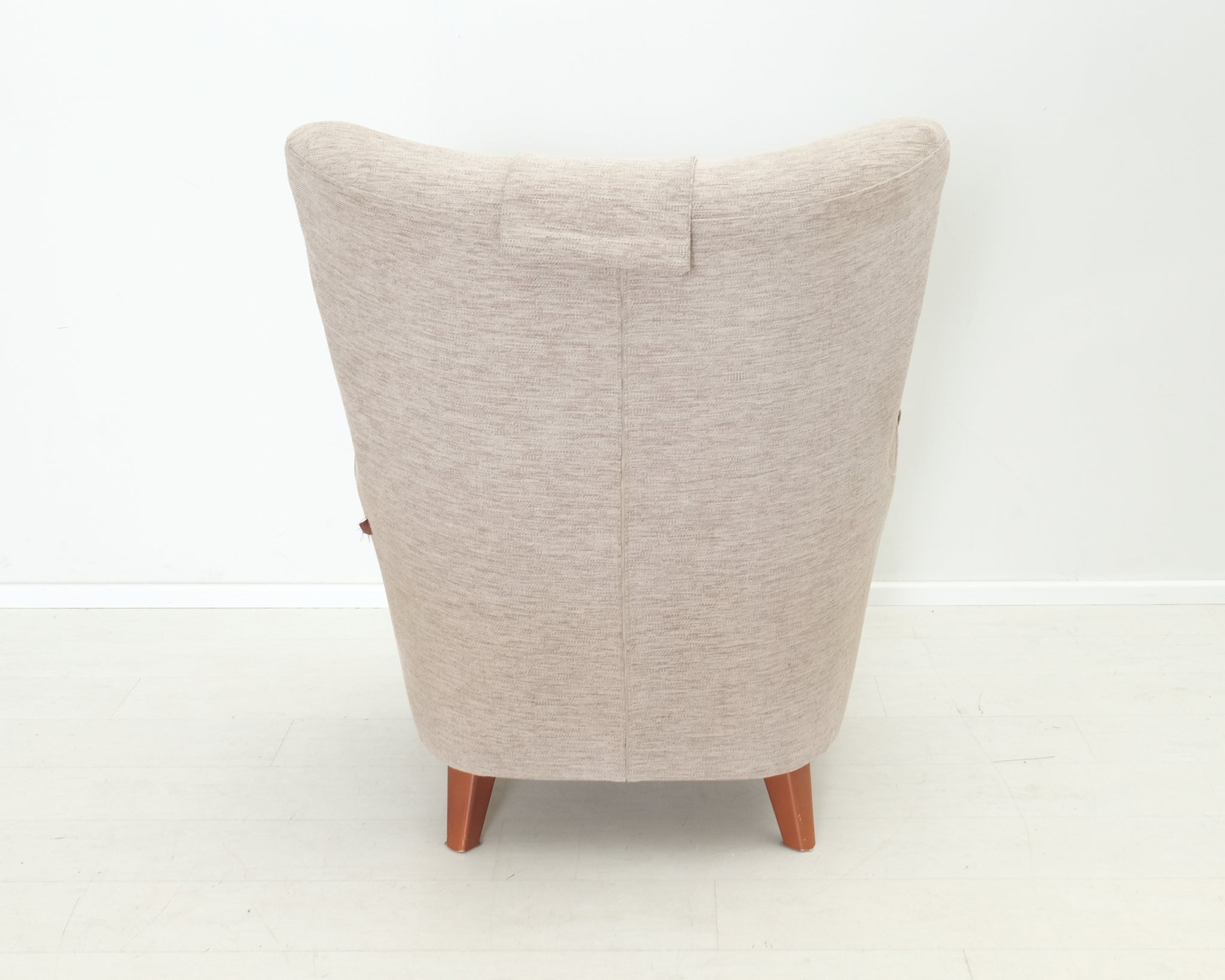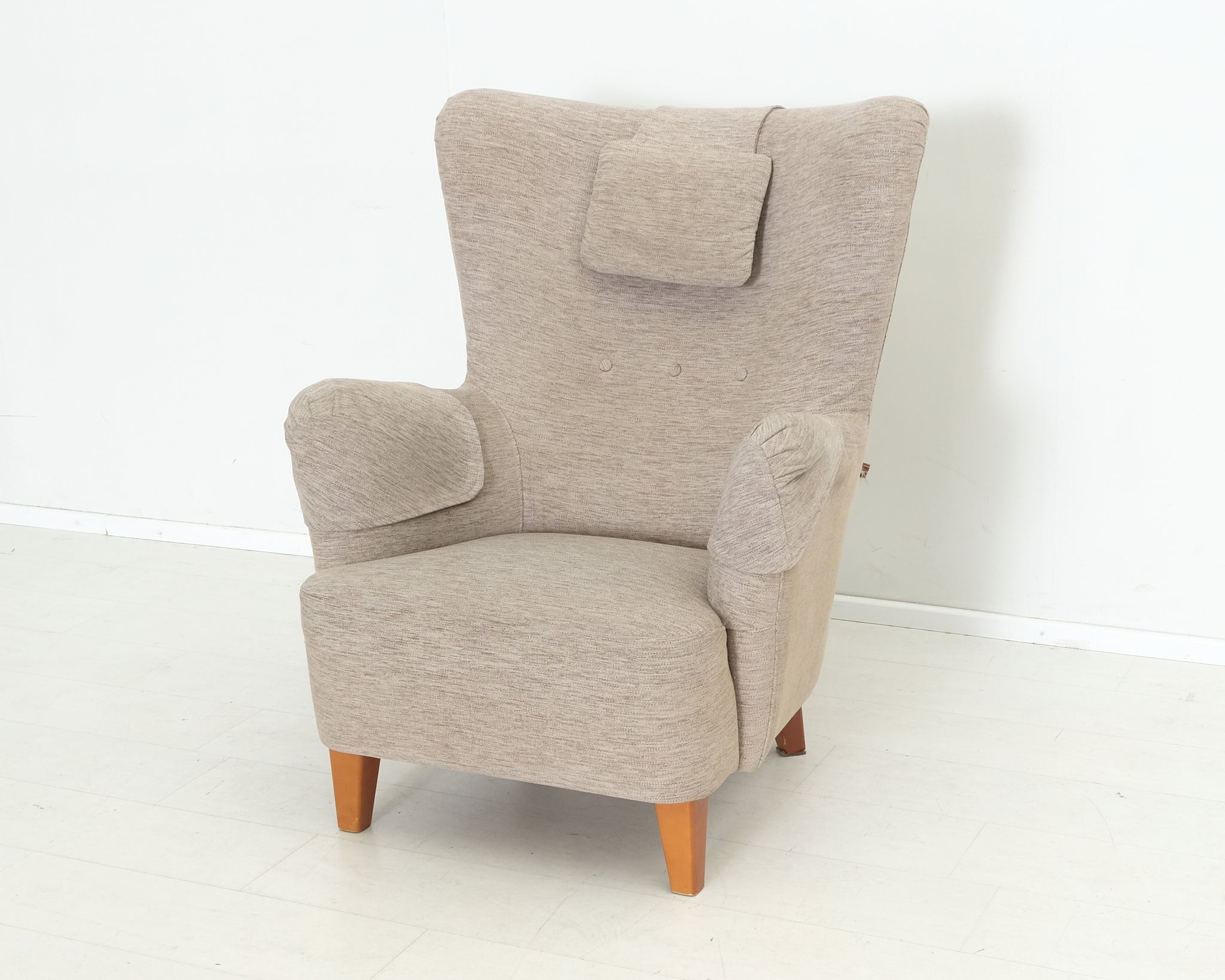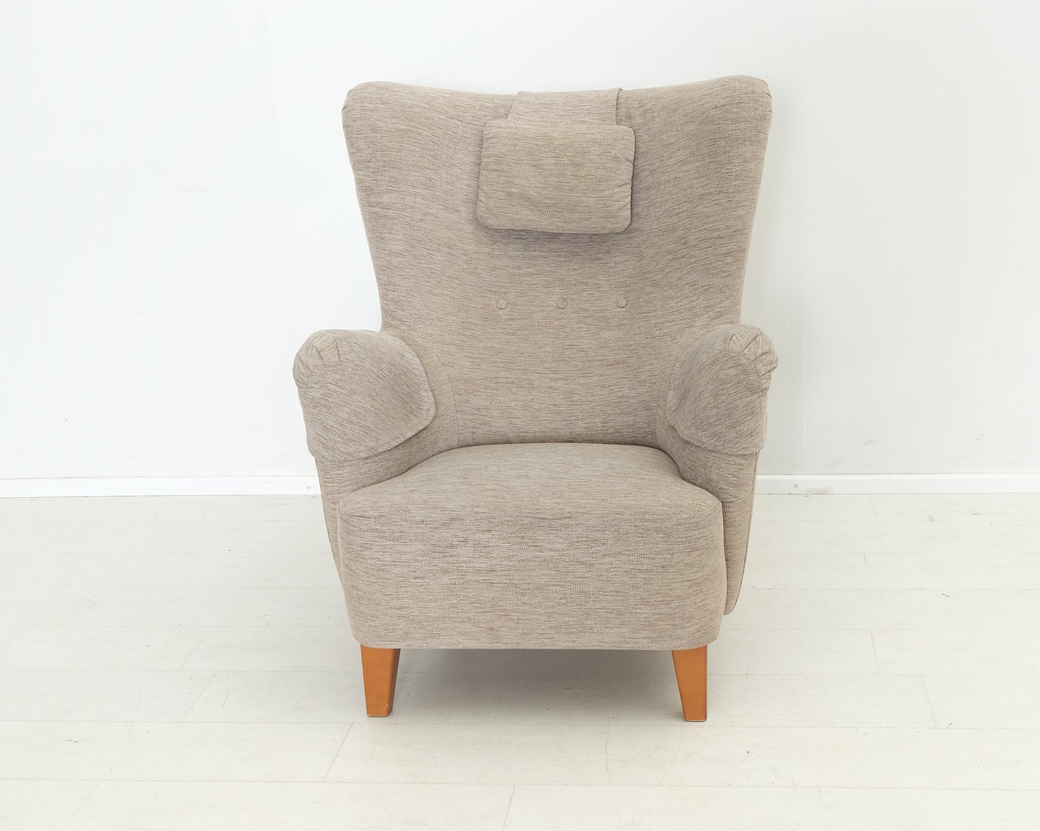 Tämän klassikkonojatuolin malli on peräisin 40-luvulta. Kaunis vaalean beige verhoilu.