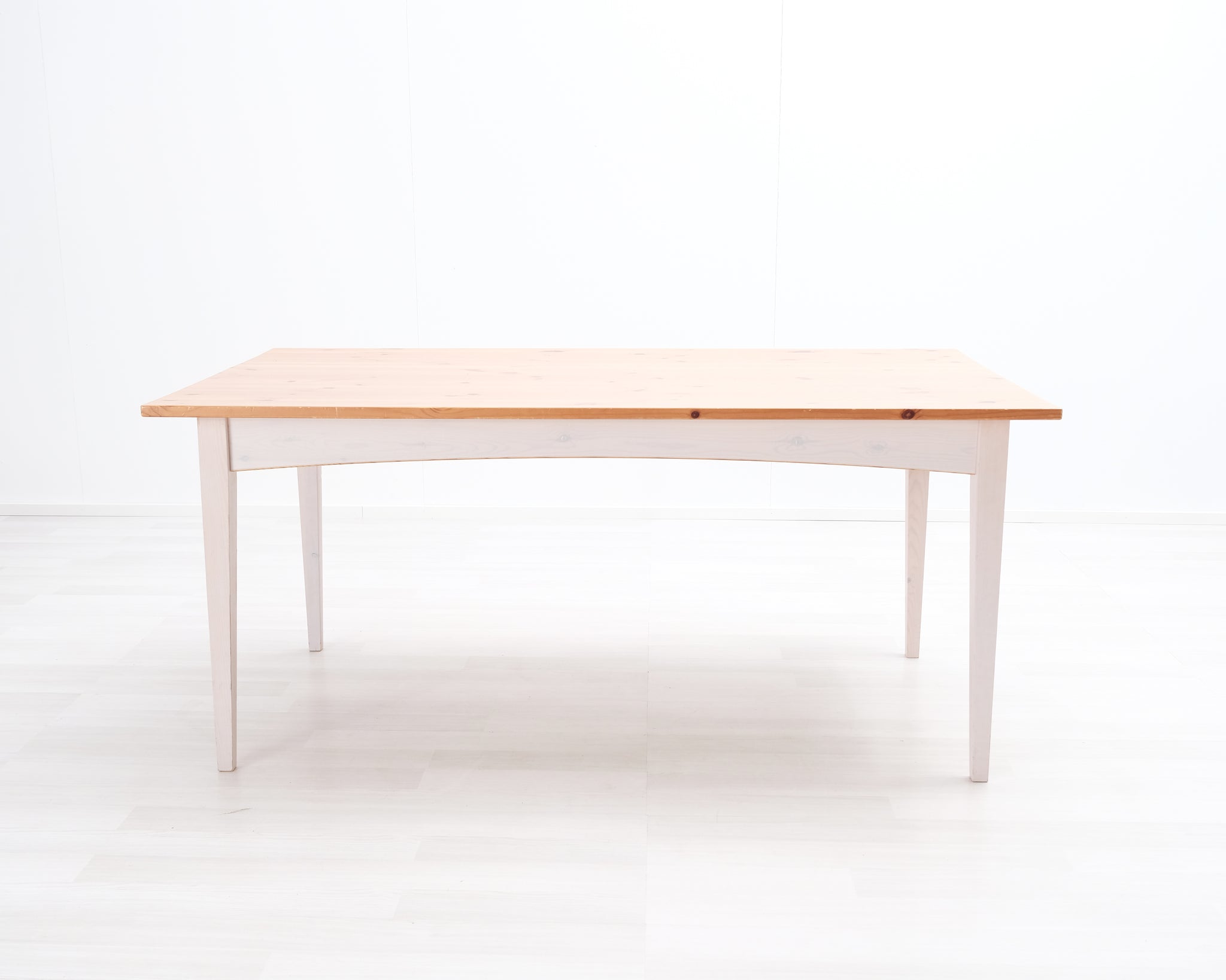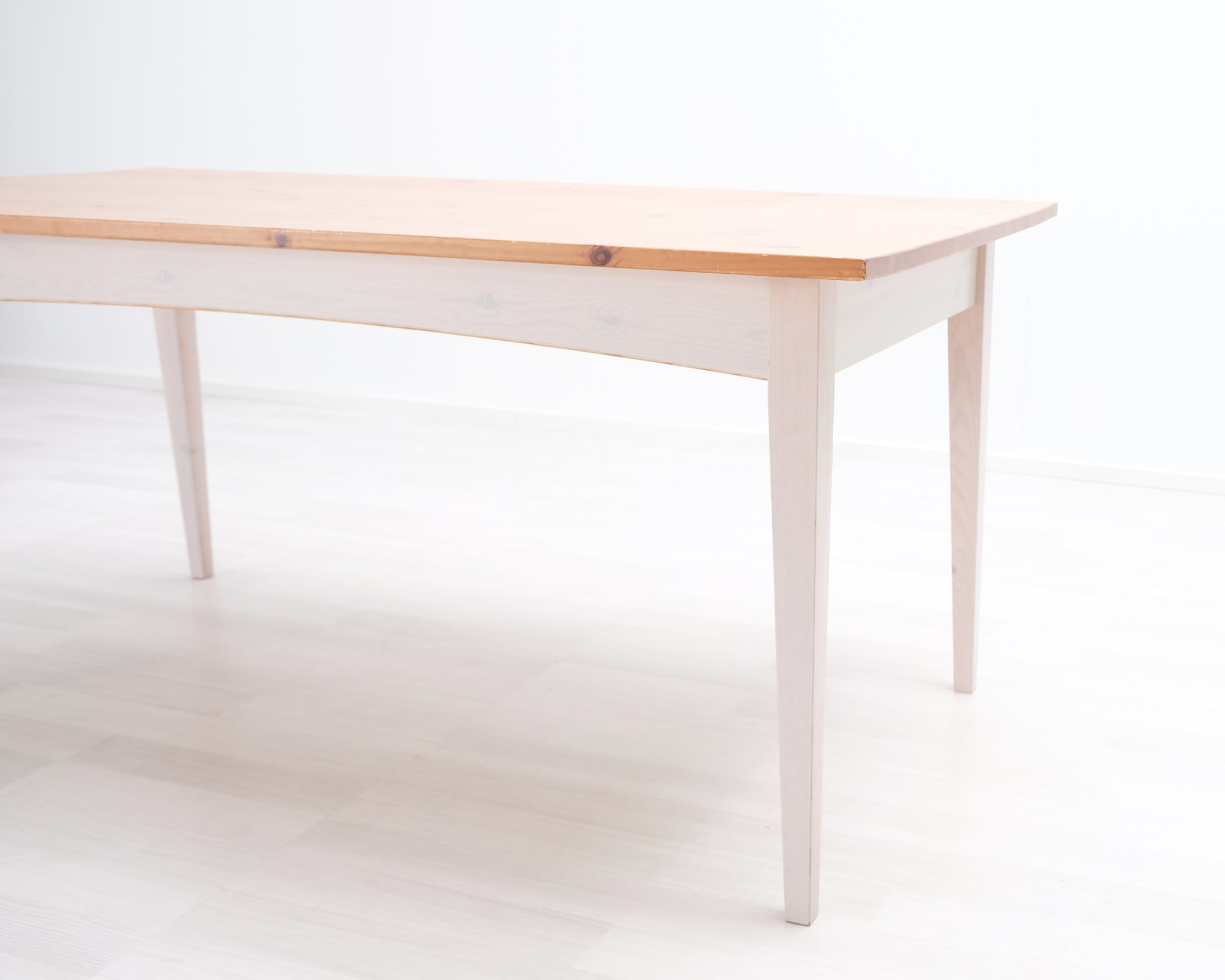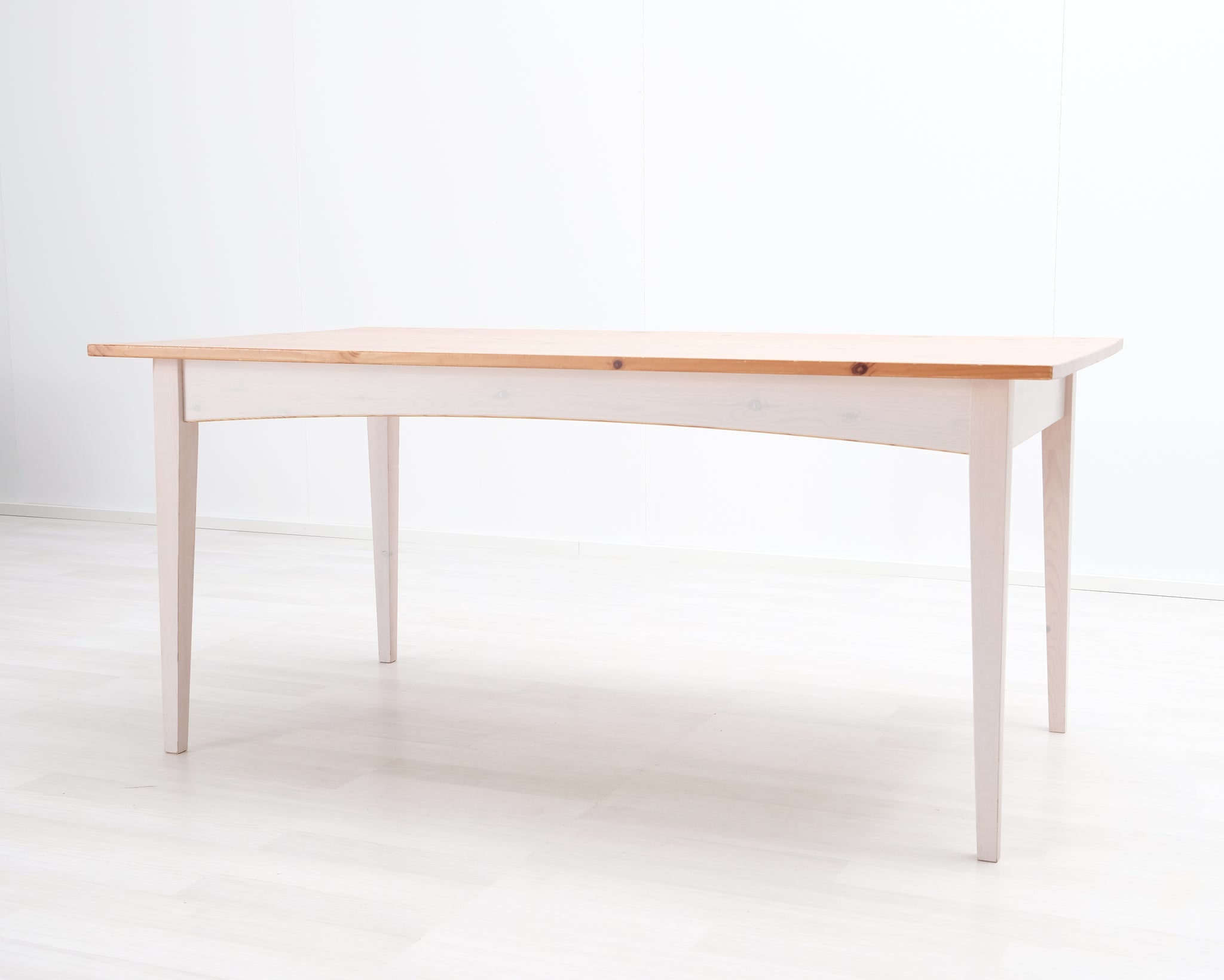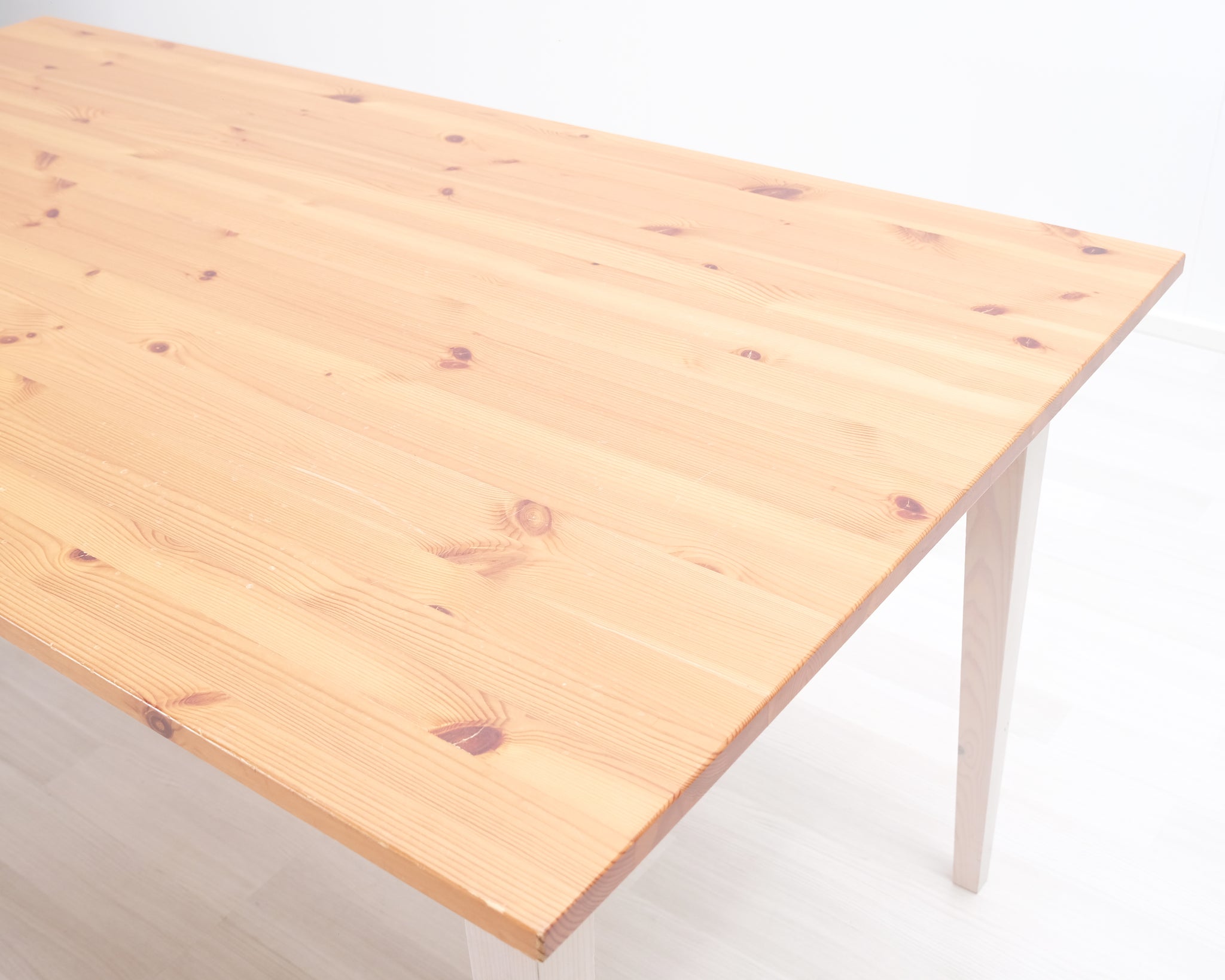 Hyväkuntoinen ja toimiva mäntyrunkoinen ruokapöytä Askon mallistosta.