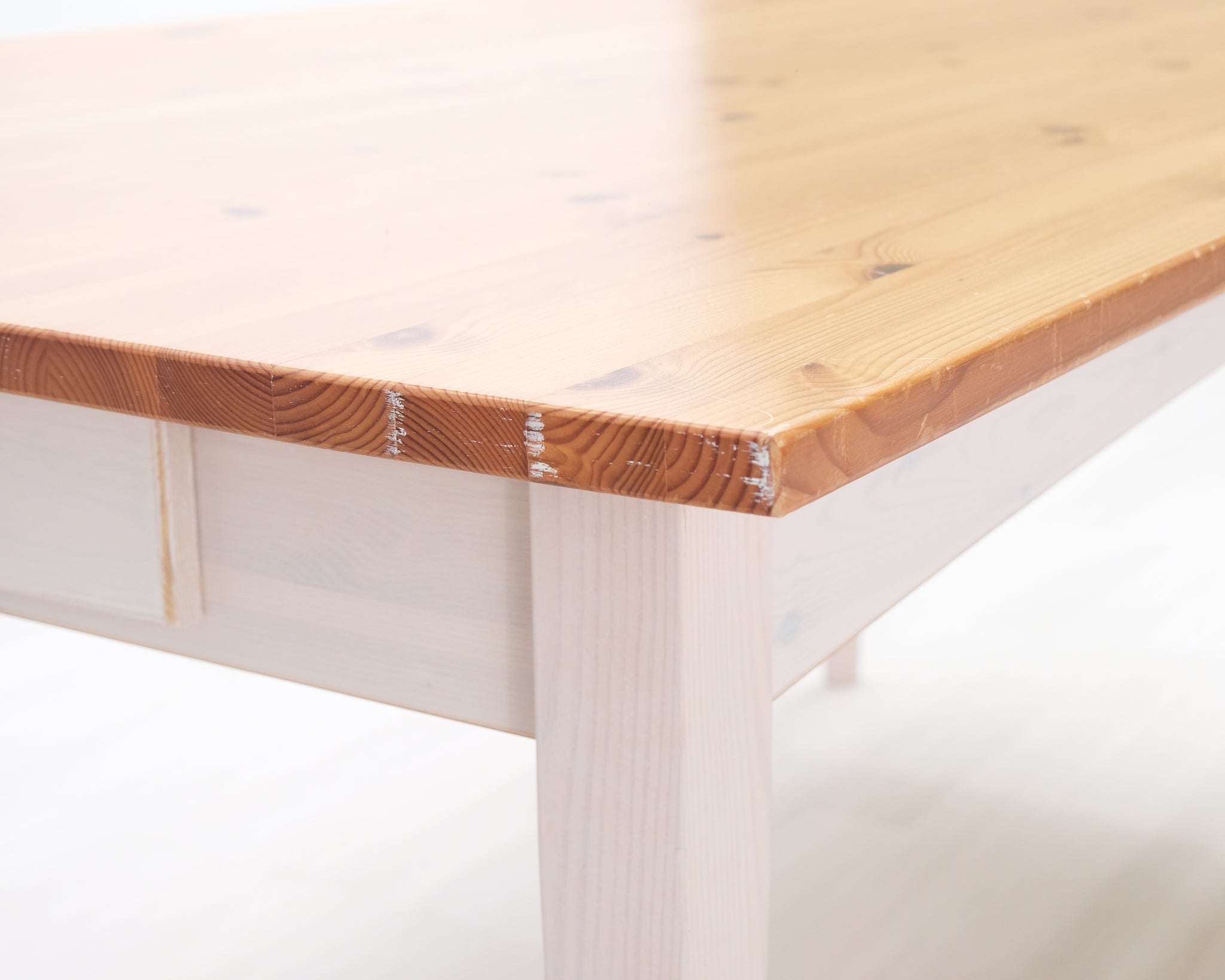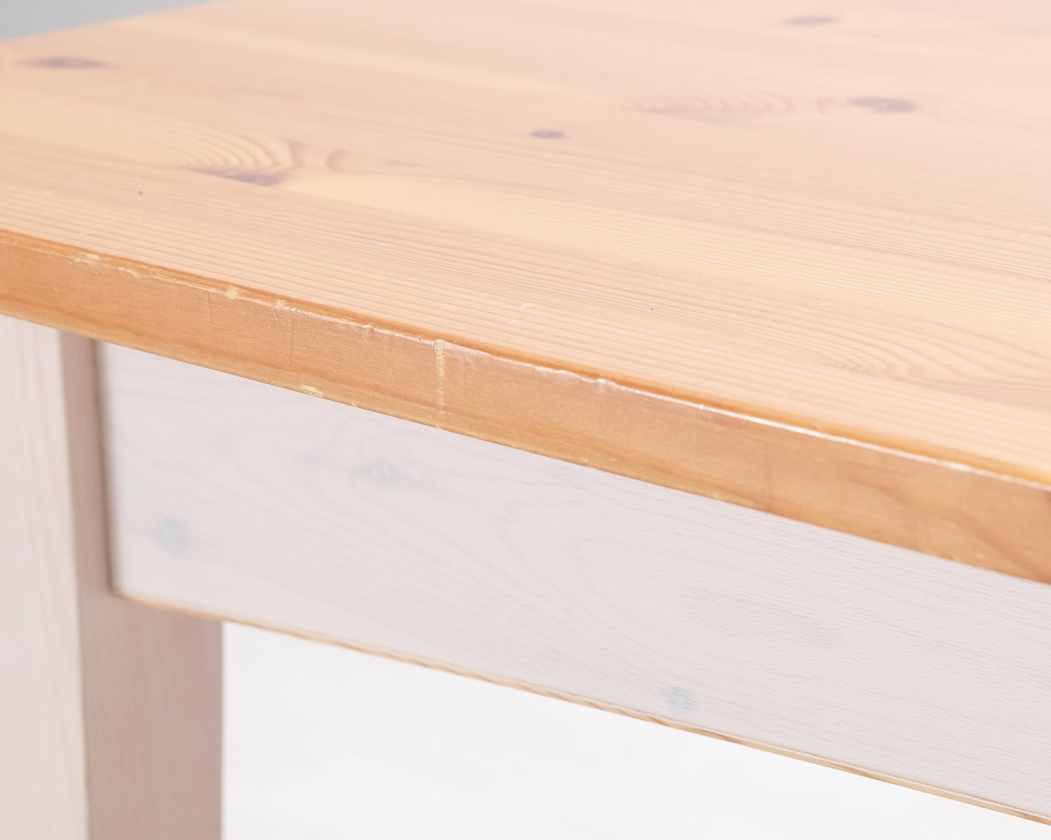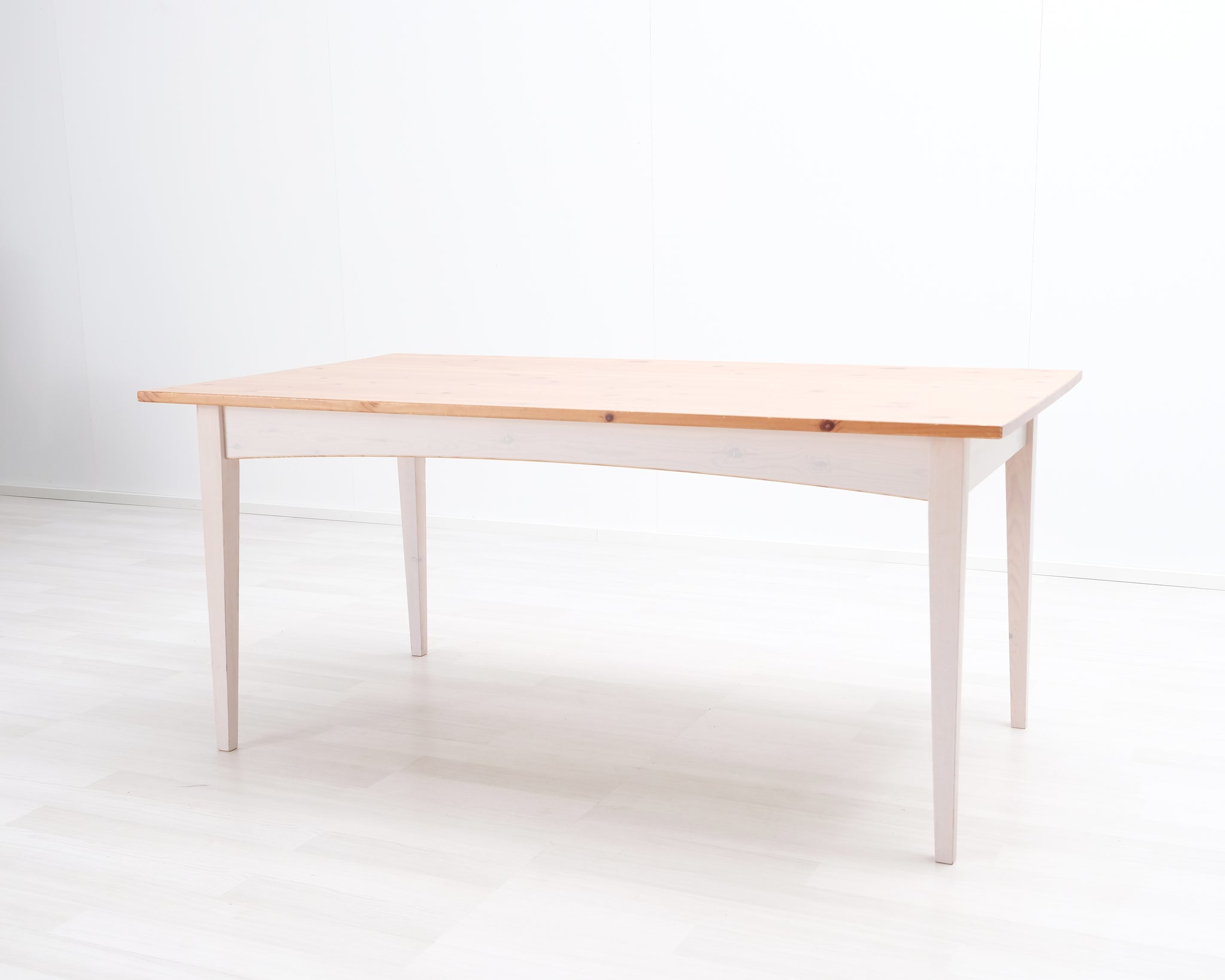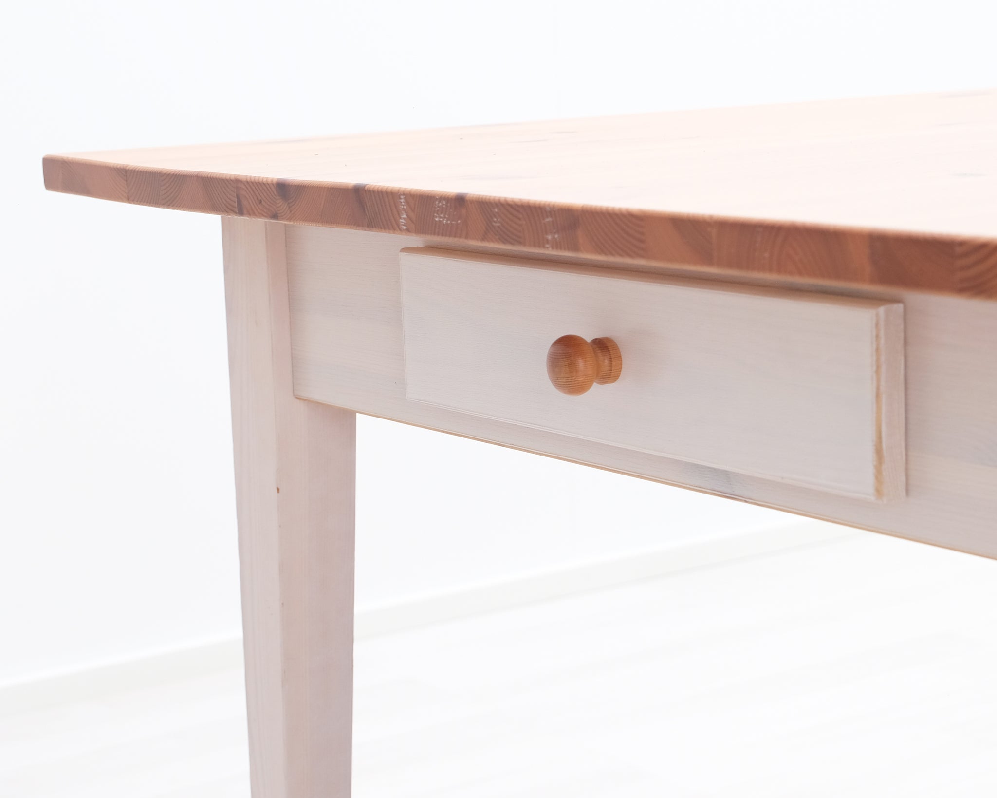Hyväkuntoinen ja toimiva mäntyrunkoinen ruokapöytä Askon mallistosta.