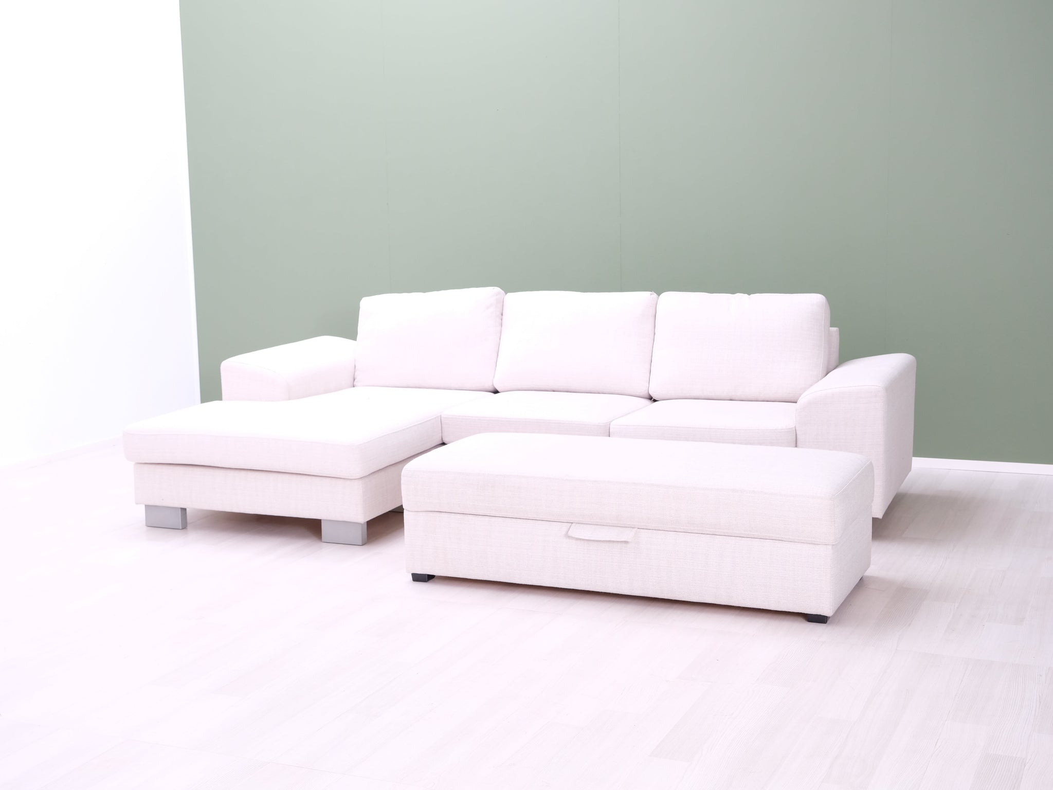 Muhkea divaanisohva, joka houkuttelee rentoon oleskeluun. Suurikokoinen rahi tekee oleskelusta entistäkin mukavempaa. Rahi toimii hyvin myös säilytyskalusteena ja sohvapöytänä.