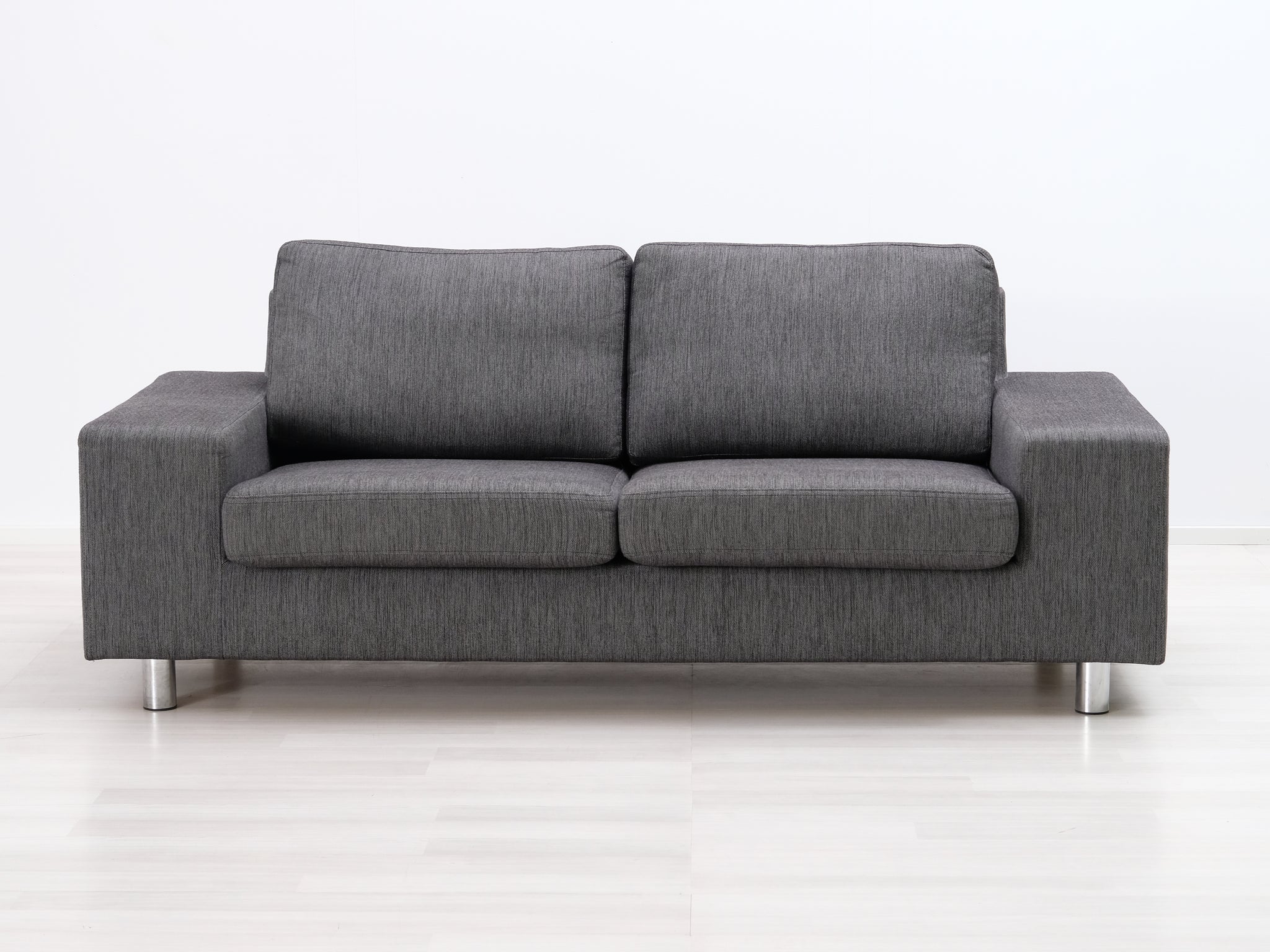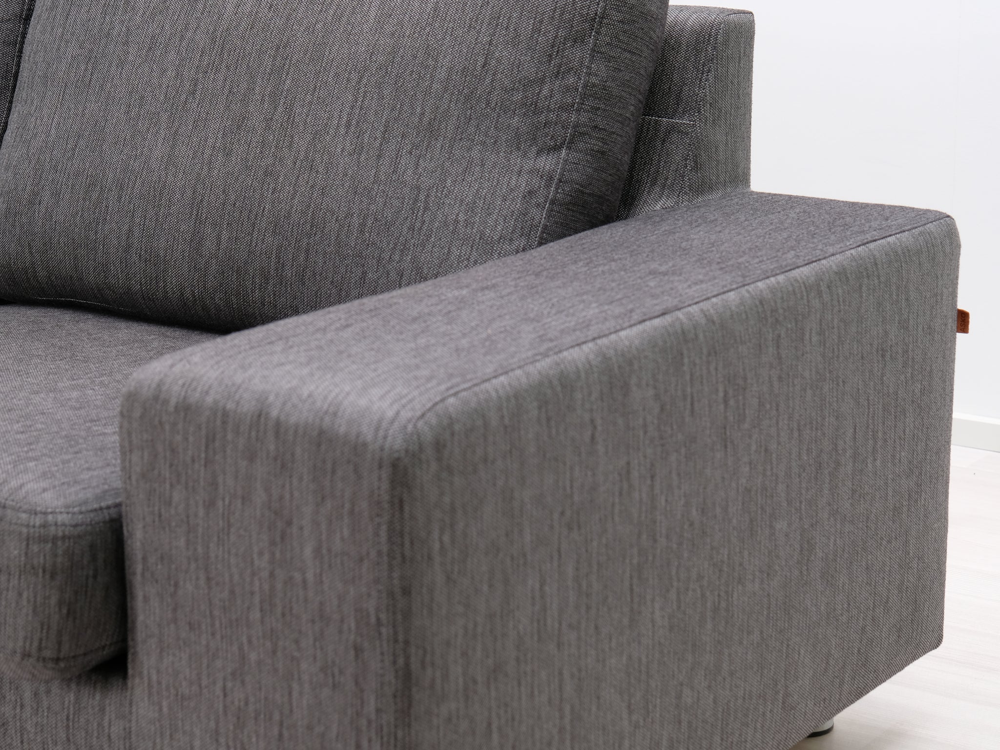Askon kangassohva. Sohvan pelkistetyn linjakas design tekee siitä sopivan moderniin ympäristöön. Harmaa verhoilu on ajaton ja helposti yhdistettävissä muihin väreihin.