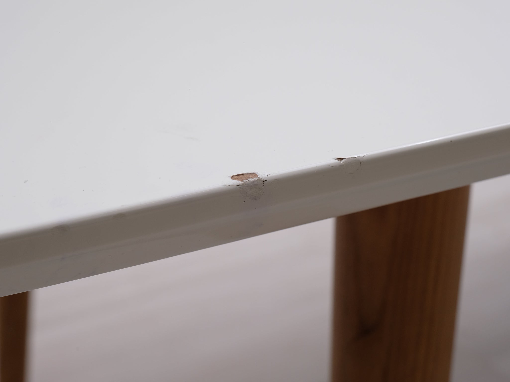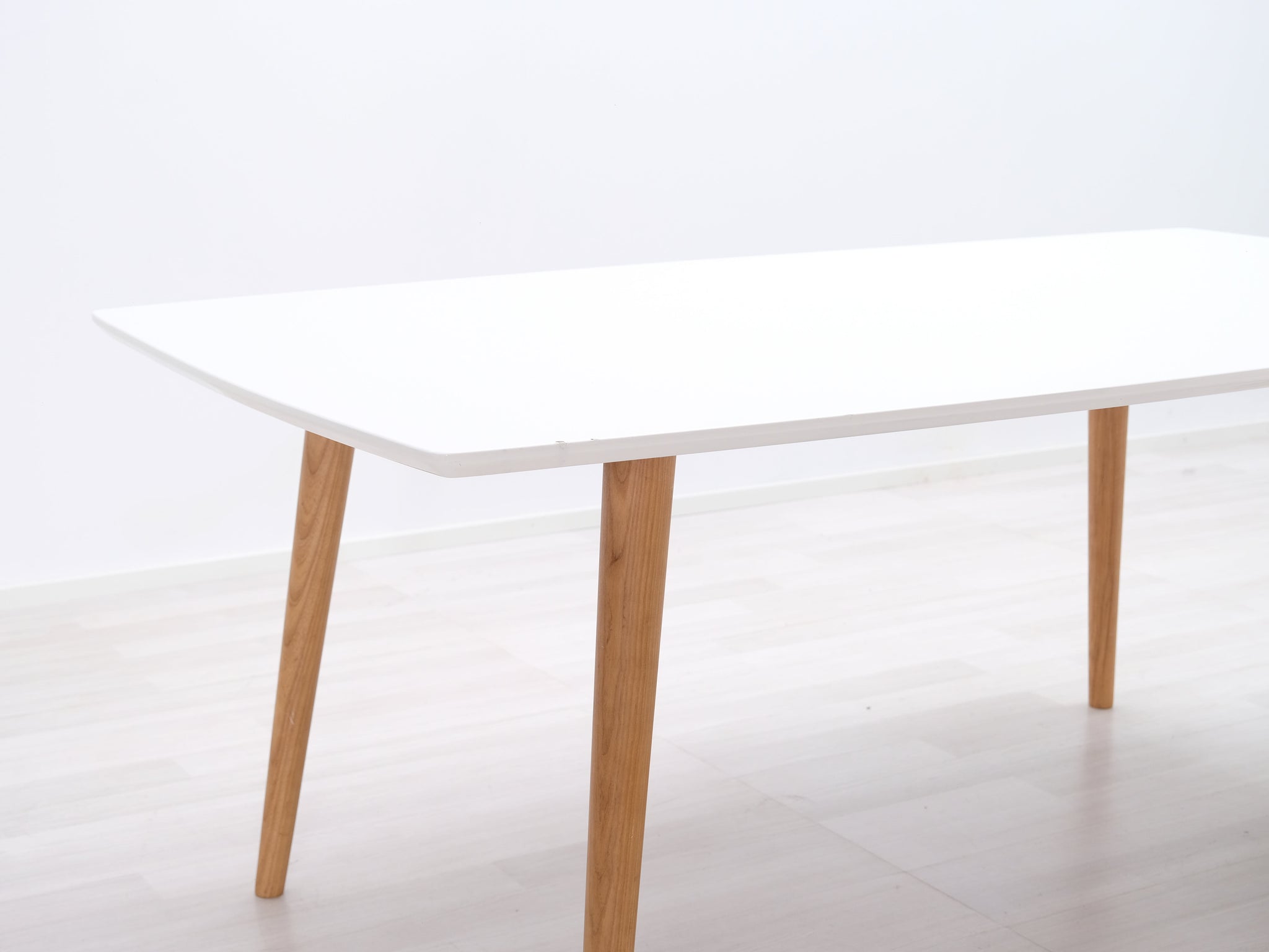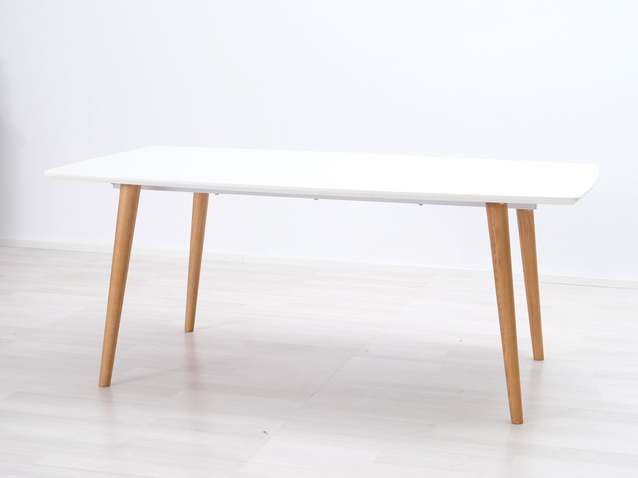 Askon valmistama ruokapöytä. Pöytälevy on korkeakiiltoa ja jalat valmistettu tammesta.