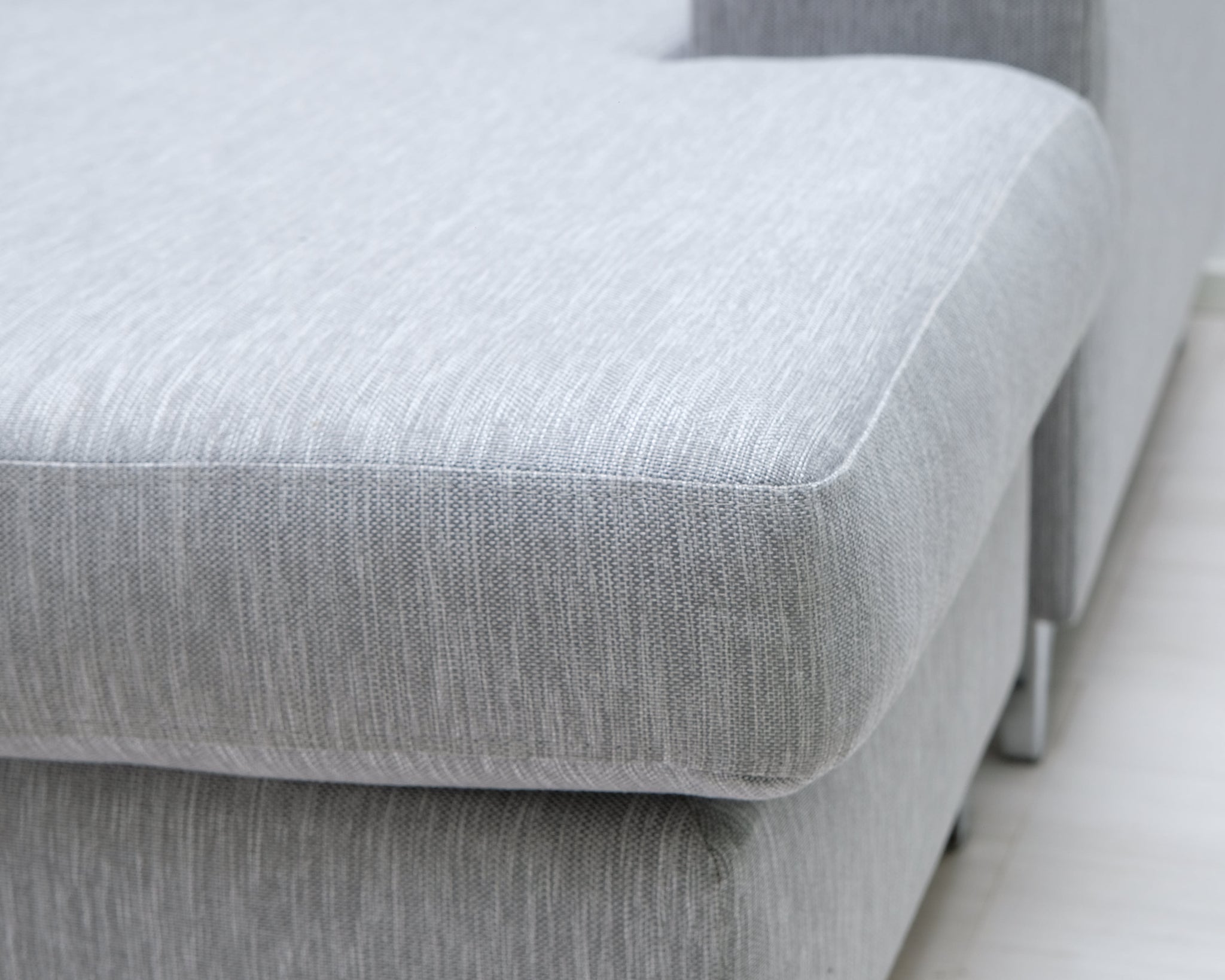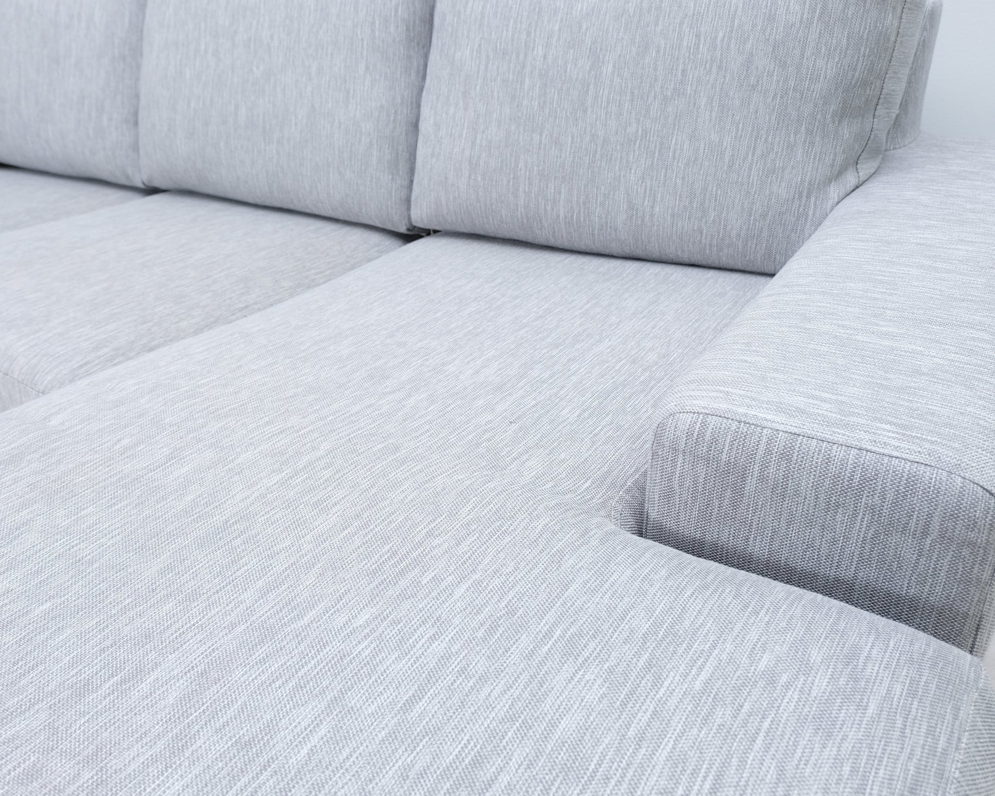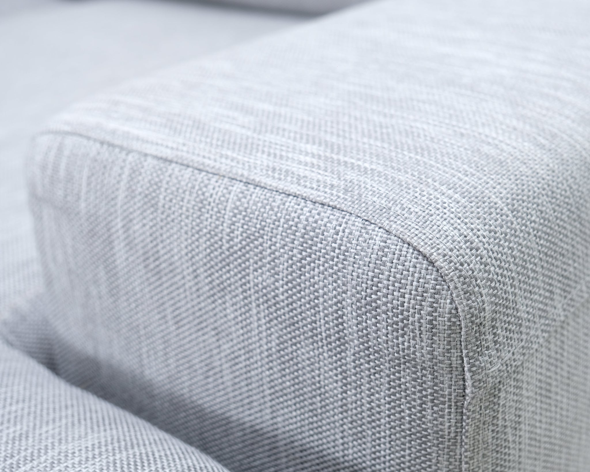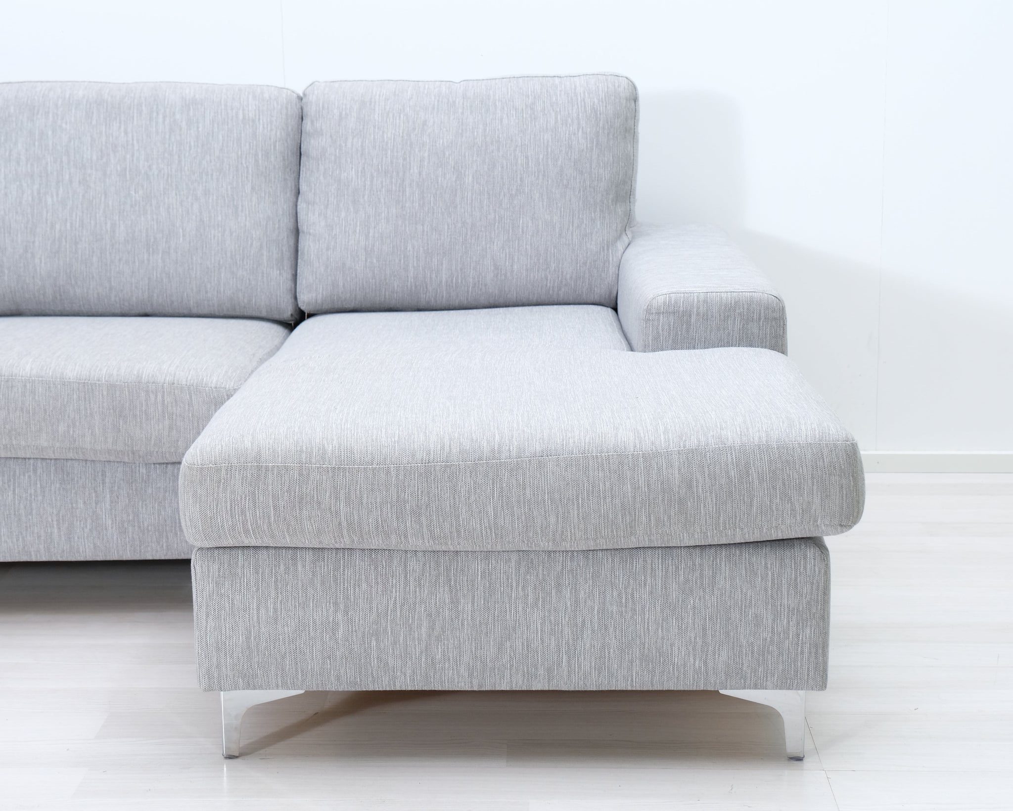 Askon kolmen istuttava divaanisohva. Harmaa kangasverhoilu ja metalliset jalat.