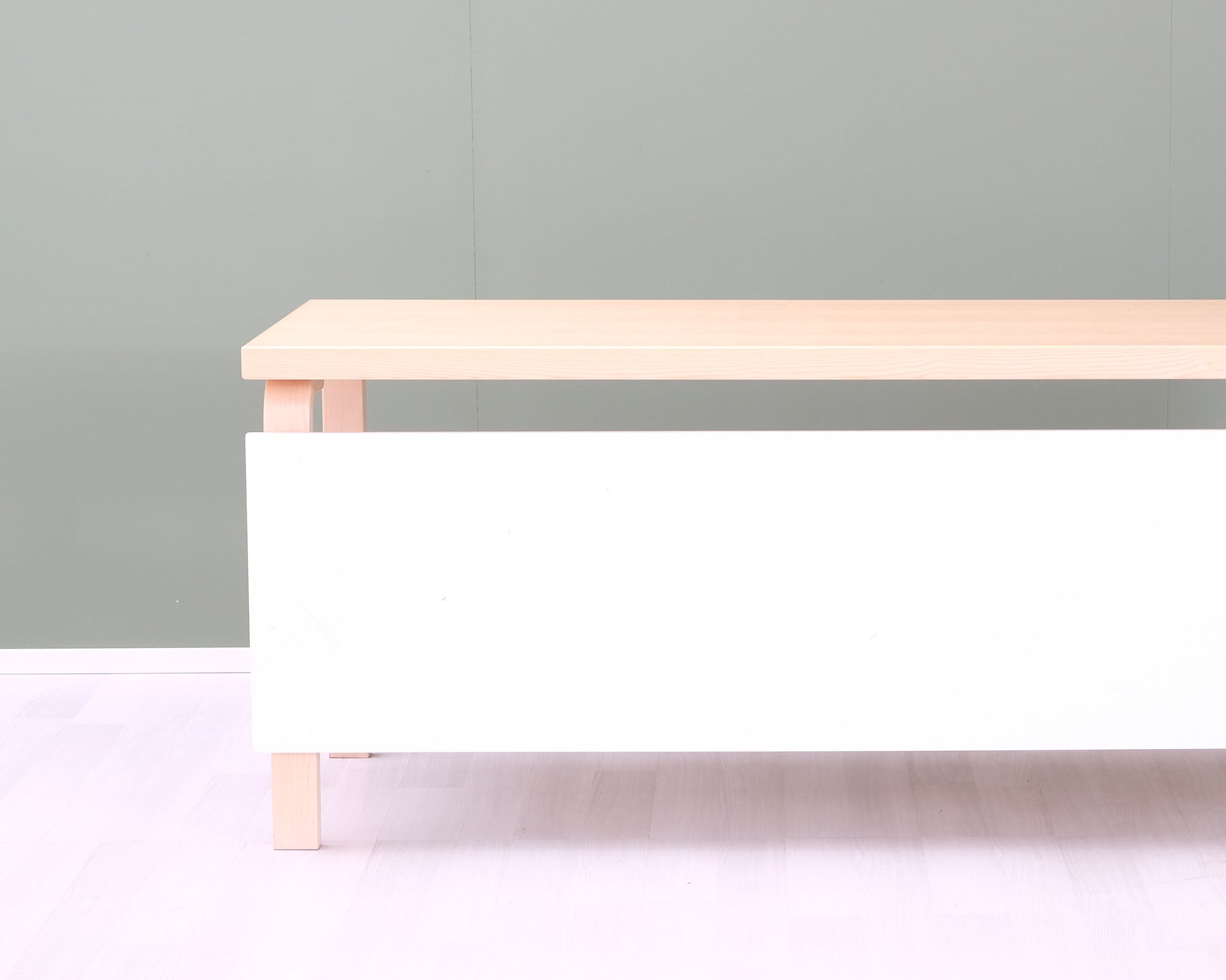Alvar Aallon Artekille suunnittelema pitkä työpöytä. Kuten muutkin Artekin tuotteet, tämäkin pöytä edustaa ajatonta ja käytännöllistä muotoilua. Pöydän päämateriaali on koivu.