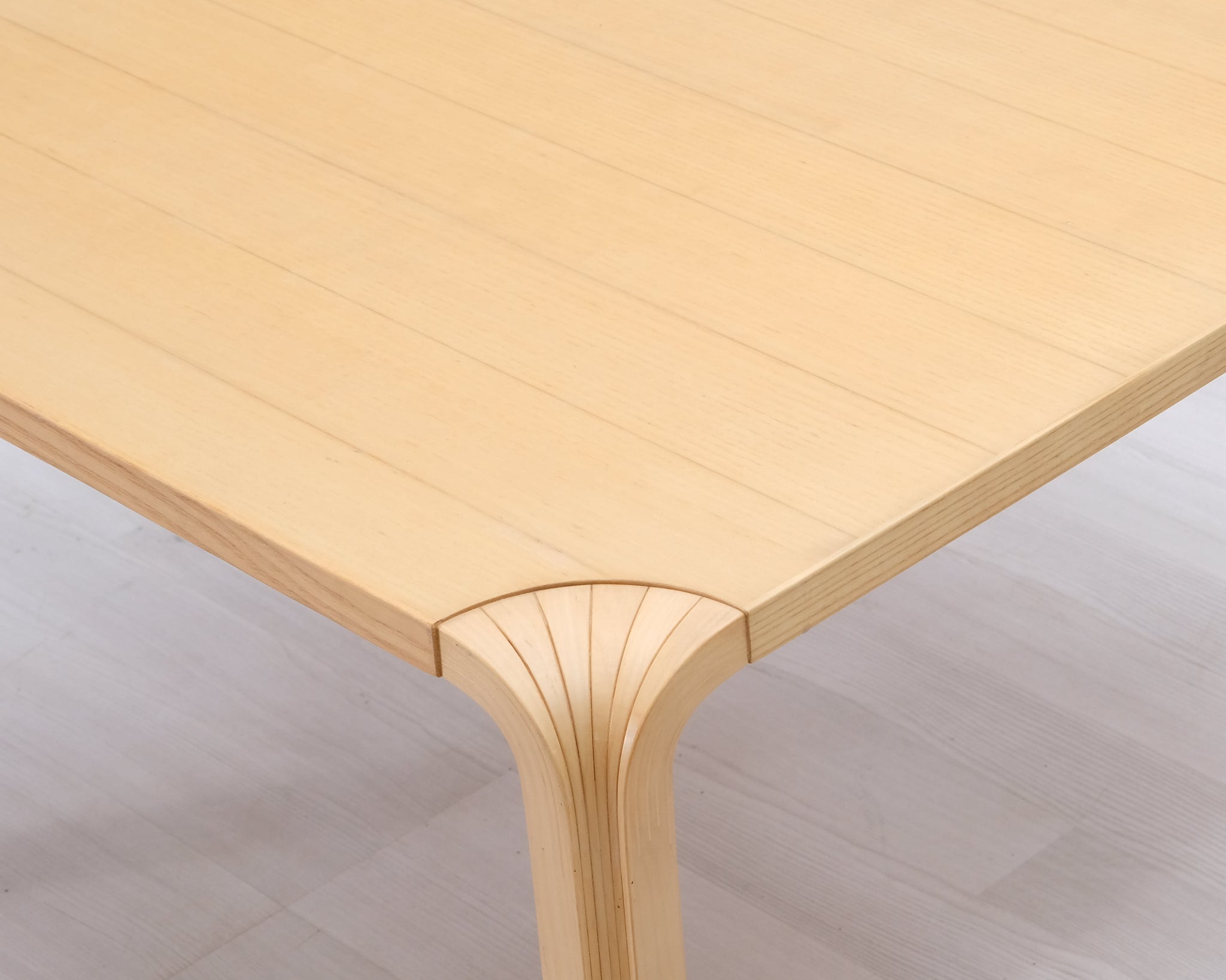 Viuhkapöytänäkin tunnettu Artekin sohvapöytä X800C on Alvar Aallon käsialaa. Pöytä on valmistettu massivikoivusta.