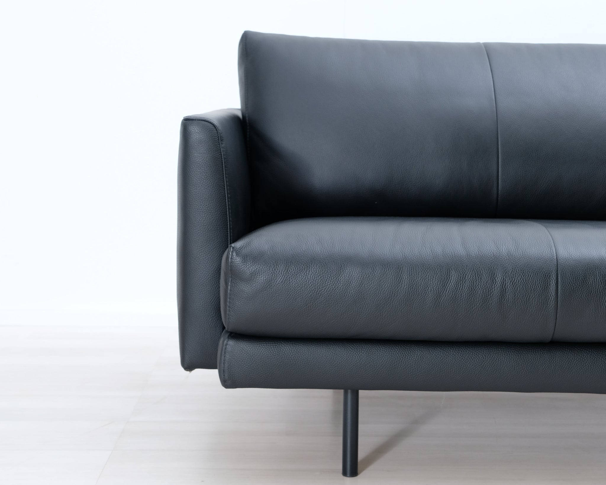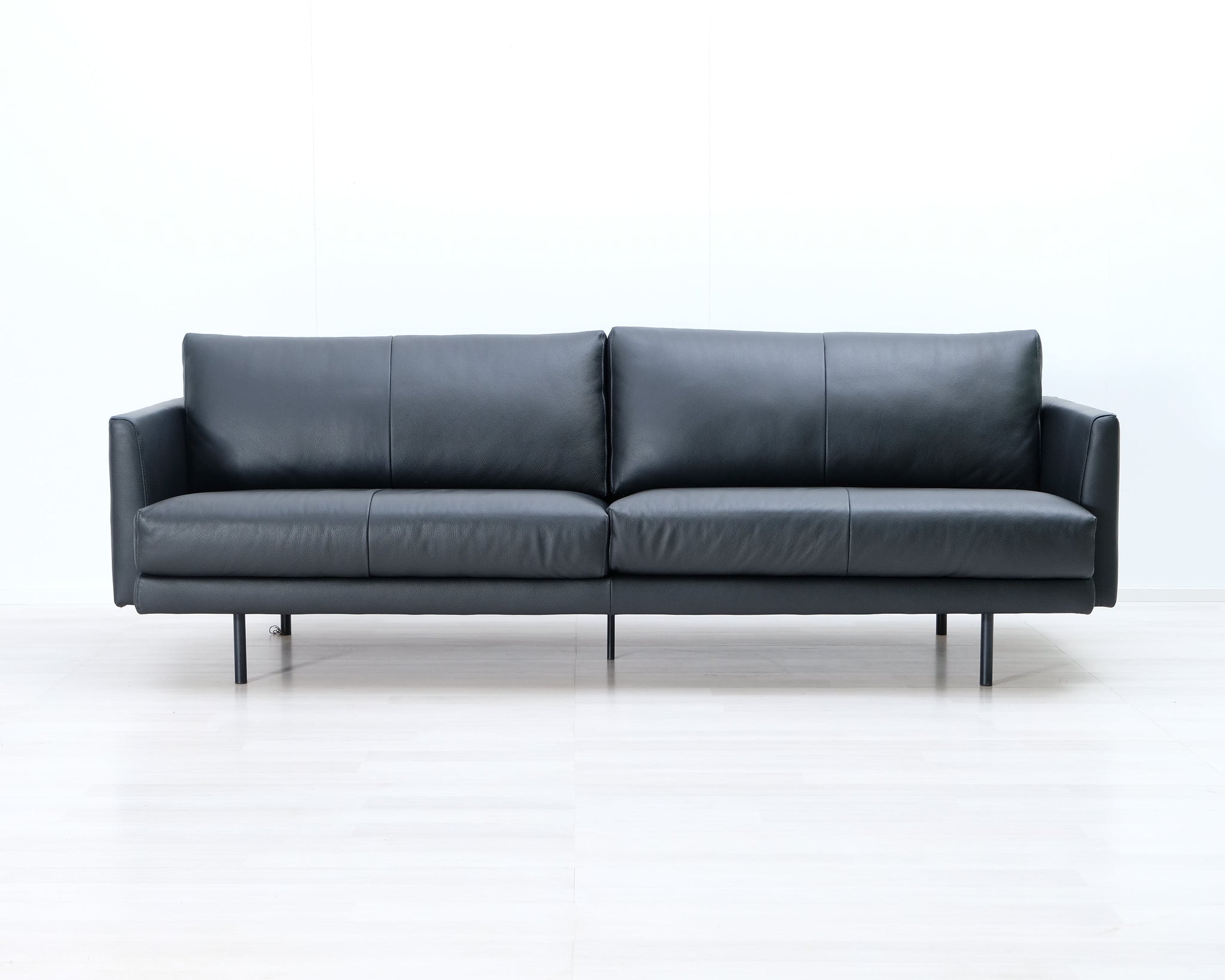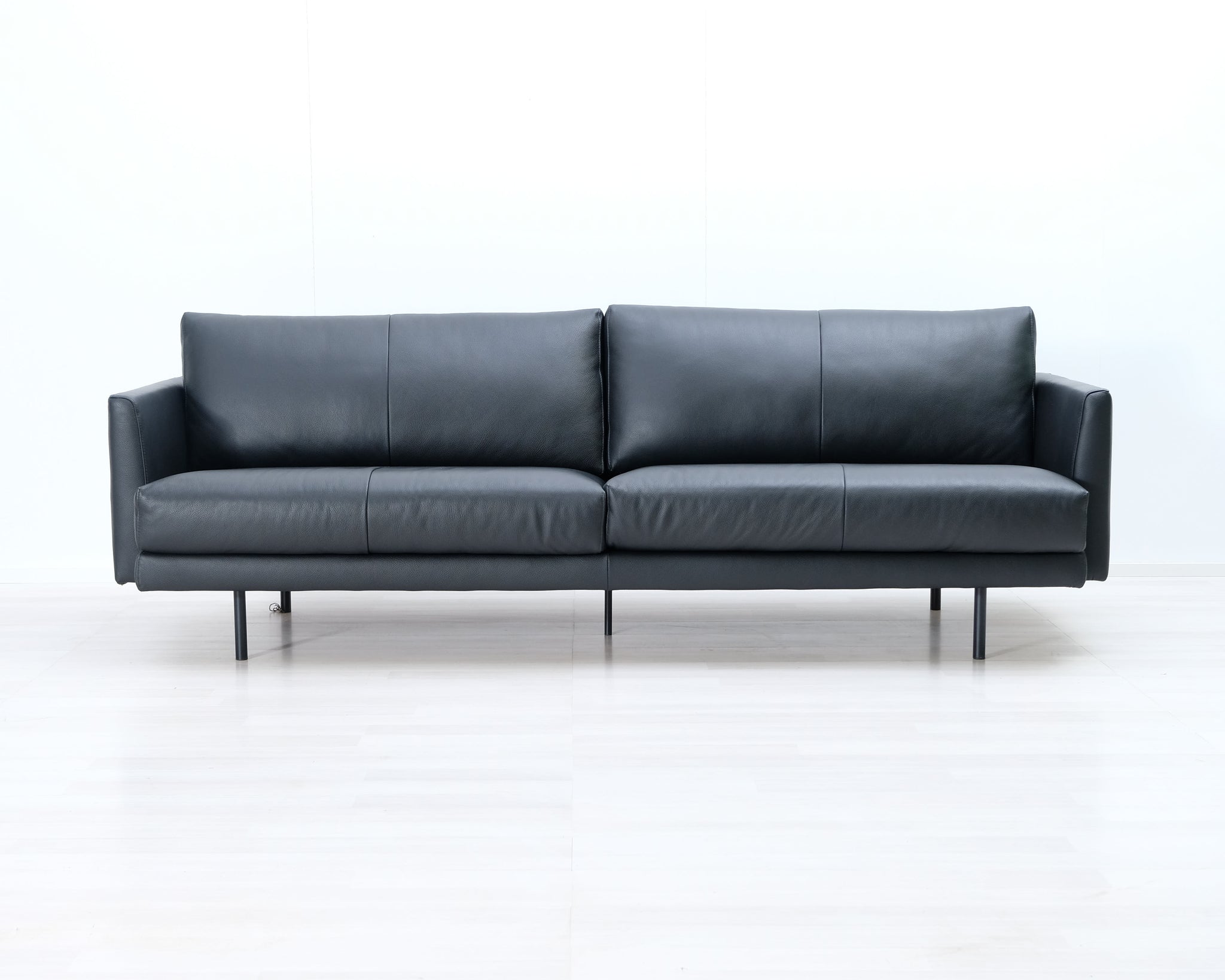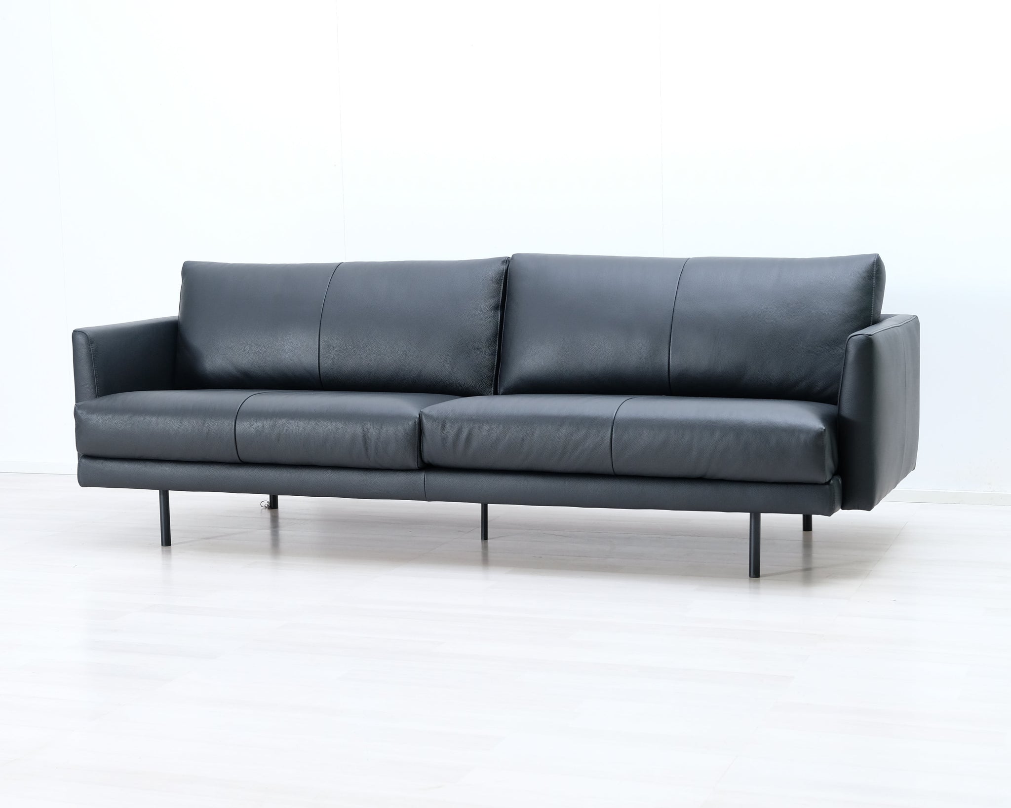 Askon tyylikäs nahkasohva. Moderni muotoilu ja ohuet metallijalat.