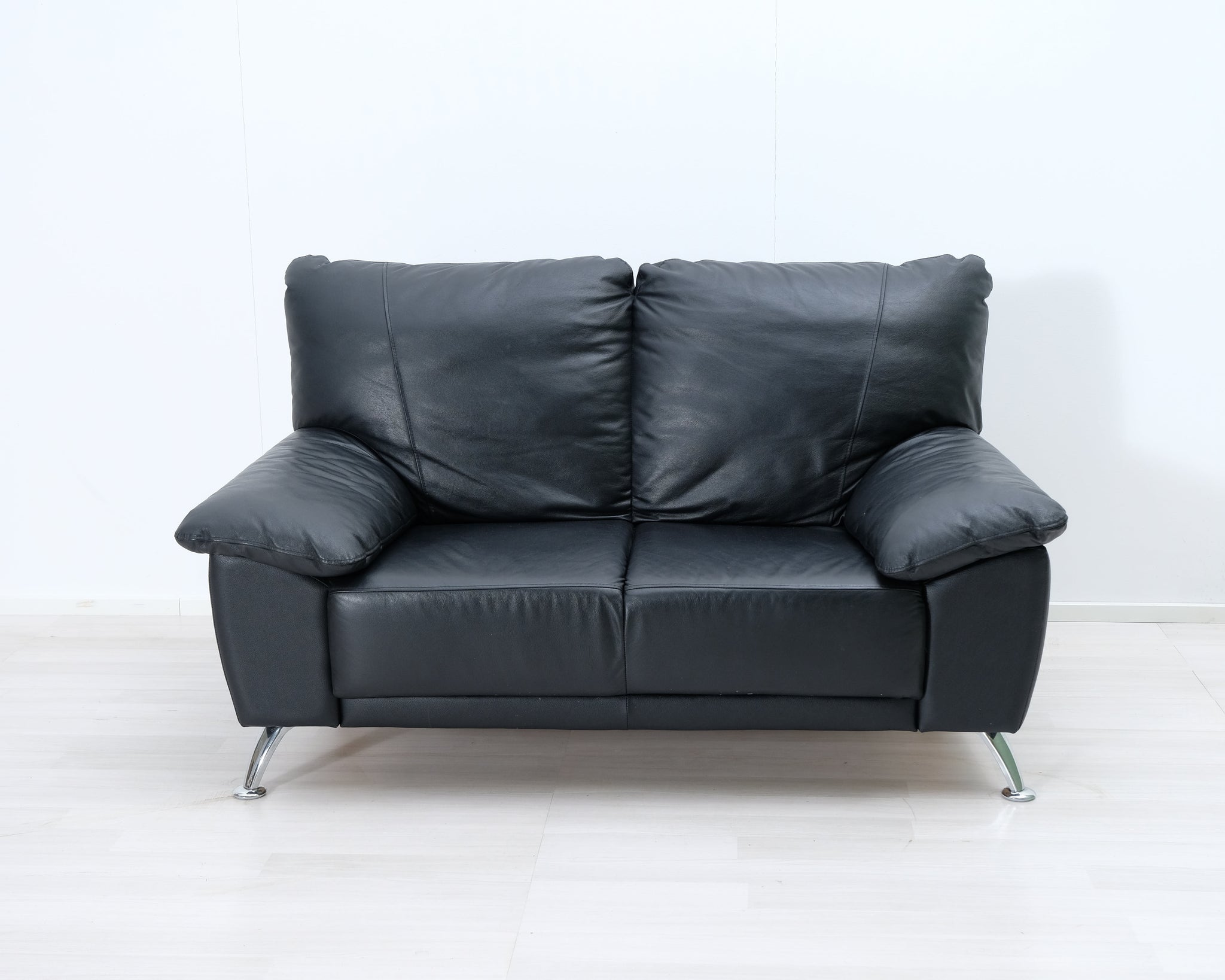 2-istuttava nahkasohva musta