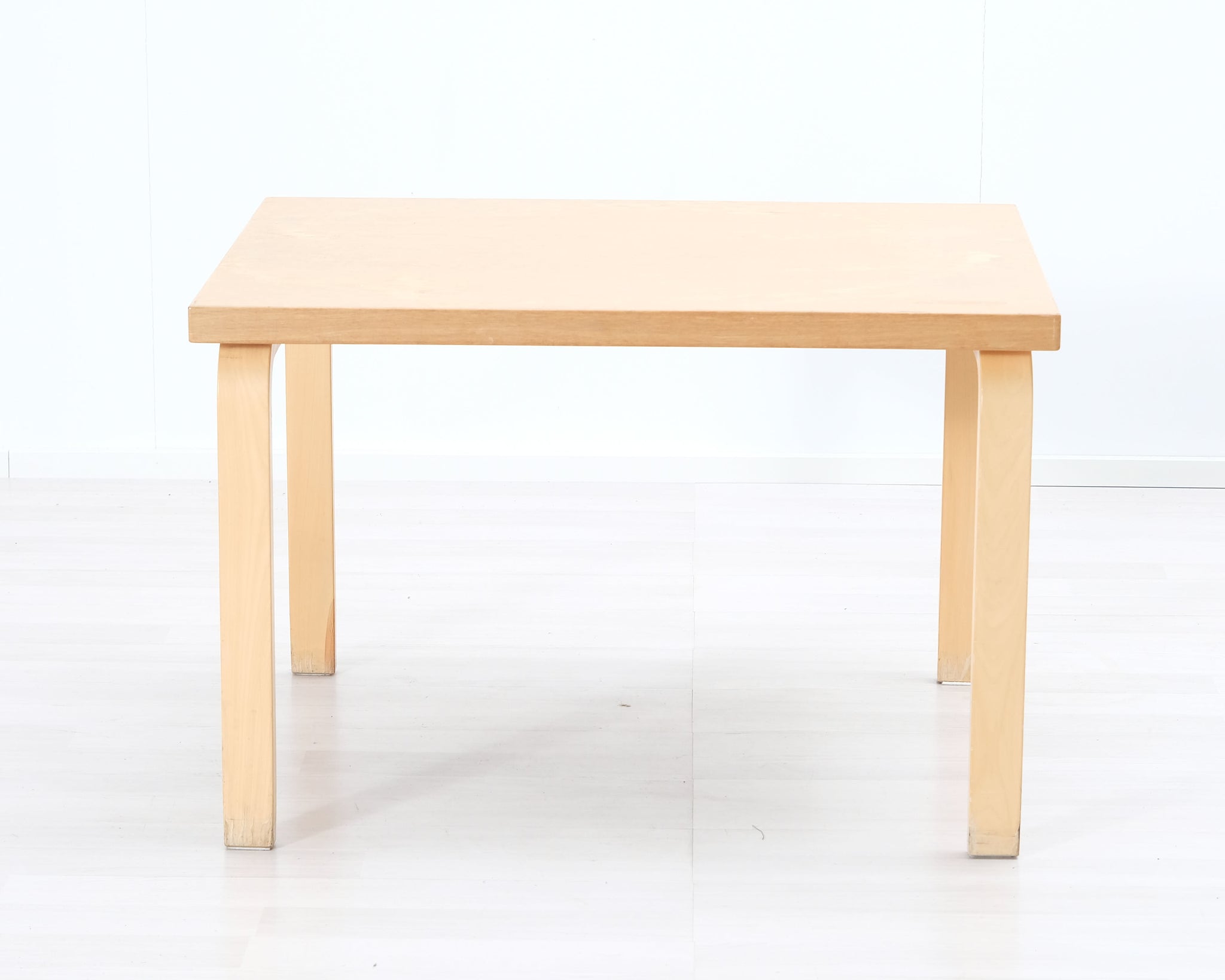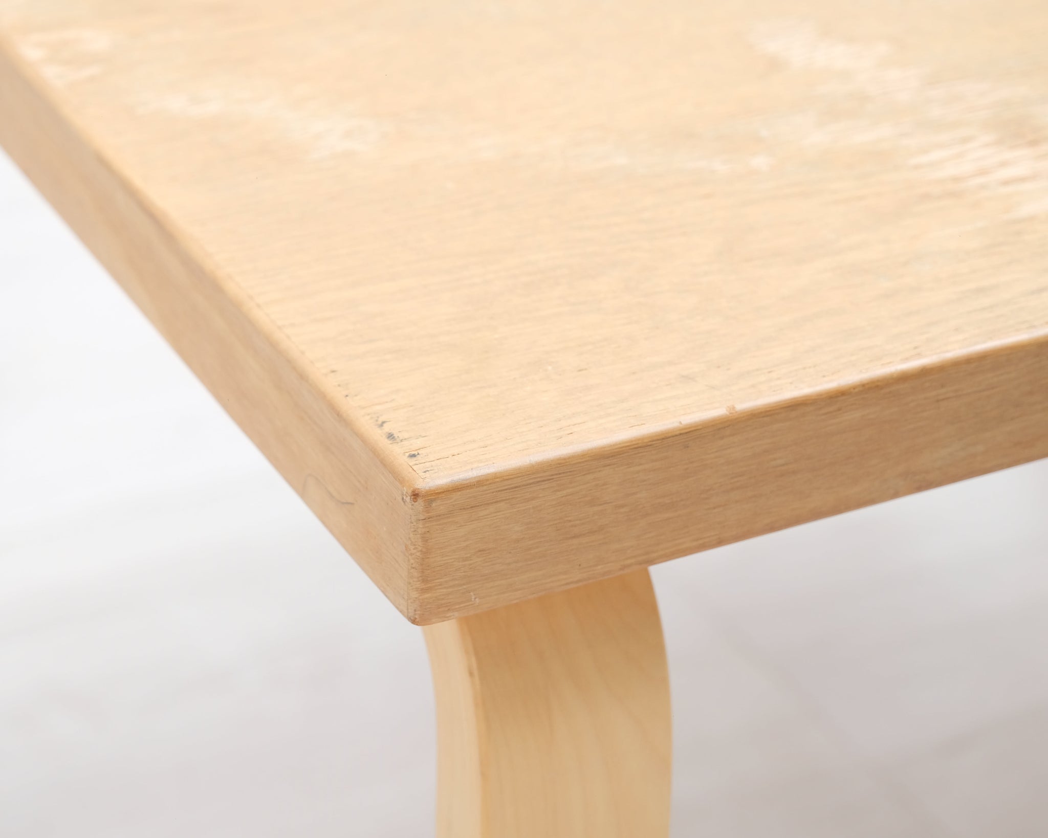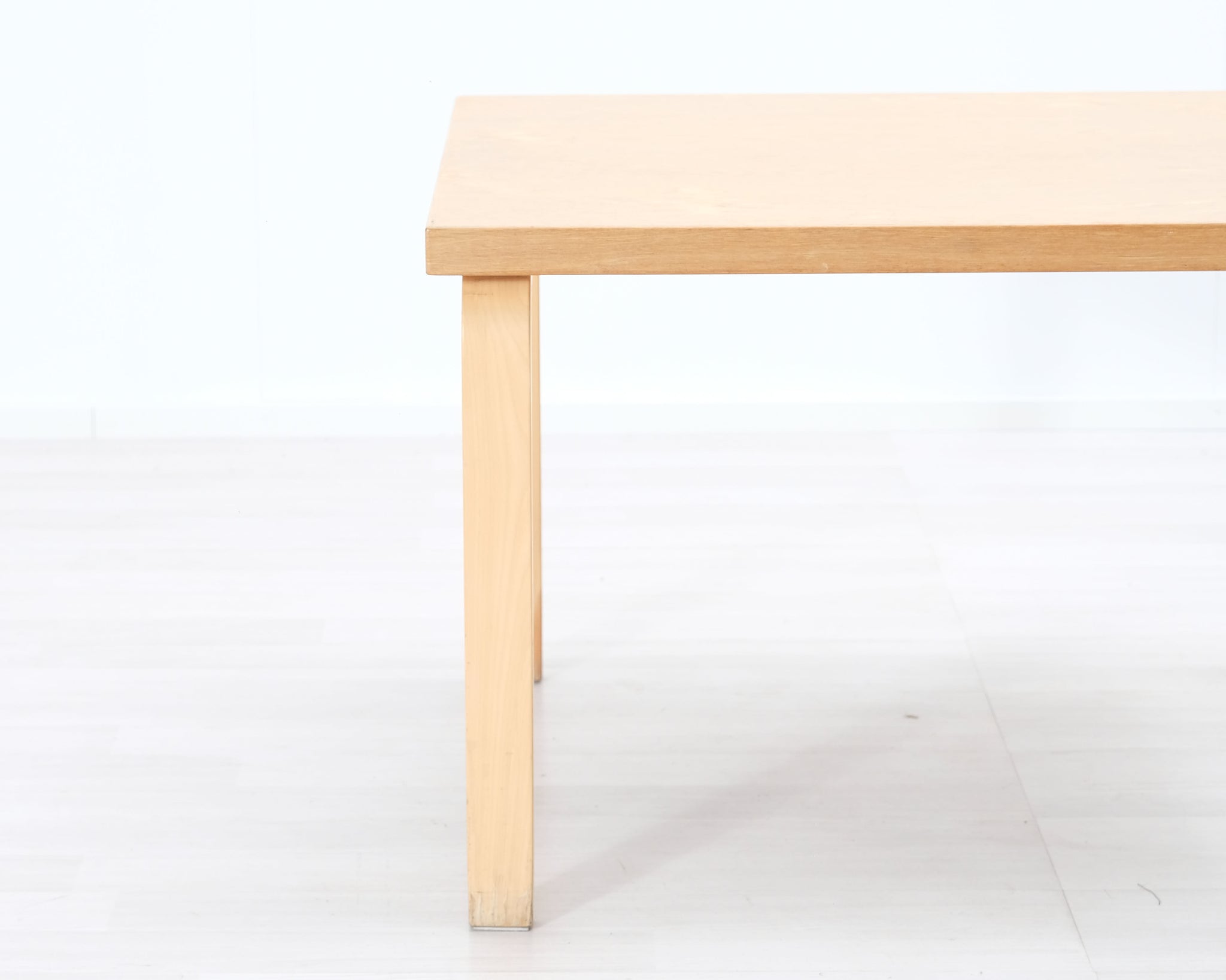 Koivusta valmistettu Artekin sivupöytä. Pöydässä on suunnittelija Alvar Aallolle tyypilliset L-jalat, sekä ajattoman tyylikäs muotokieli.