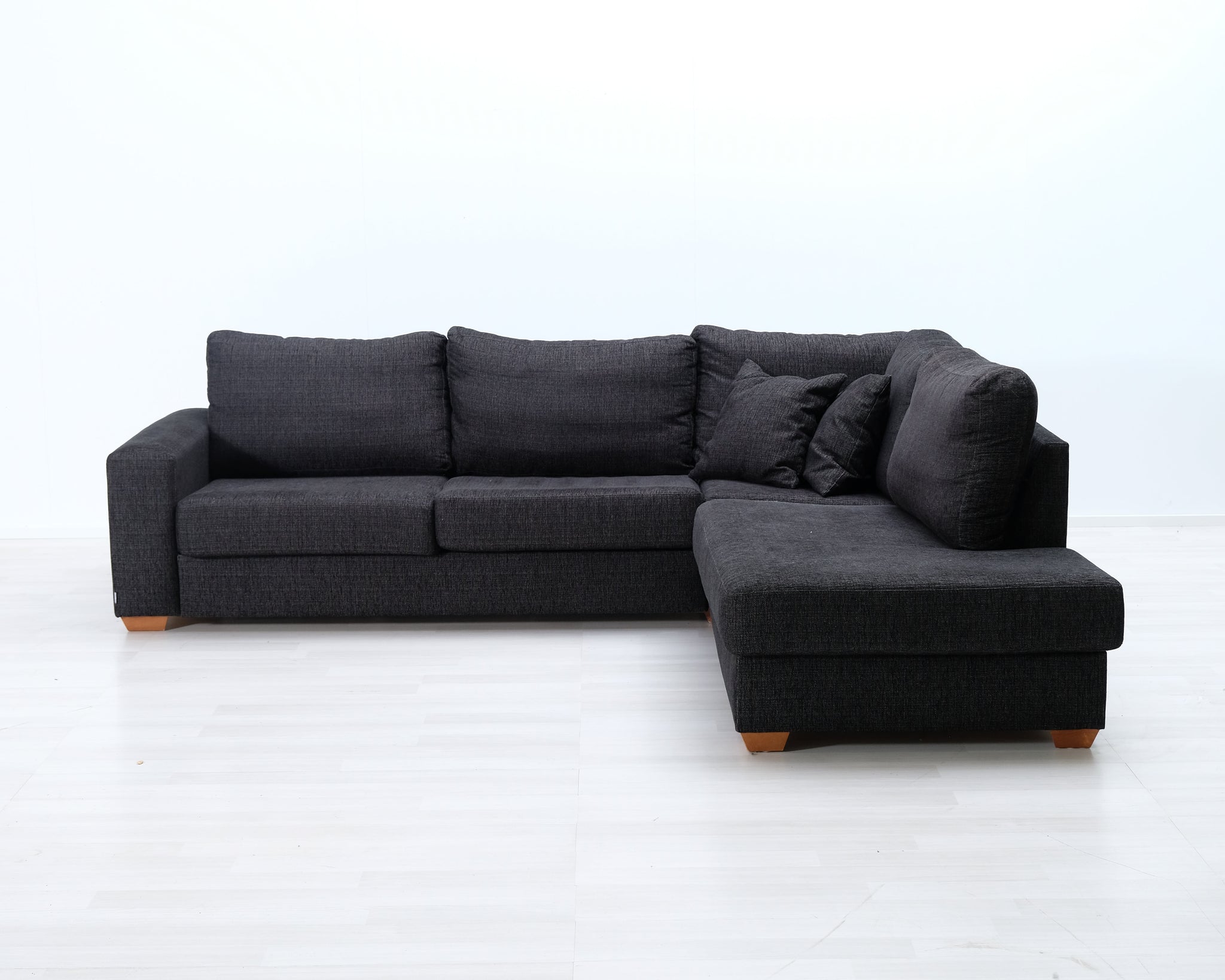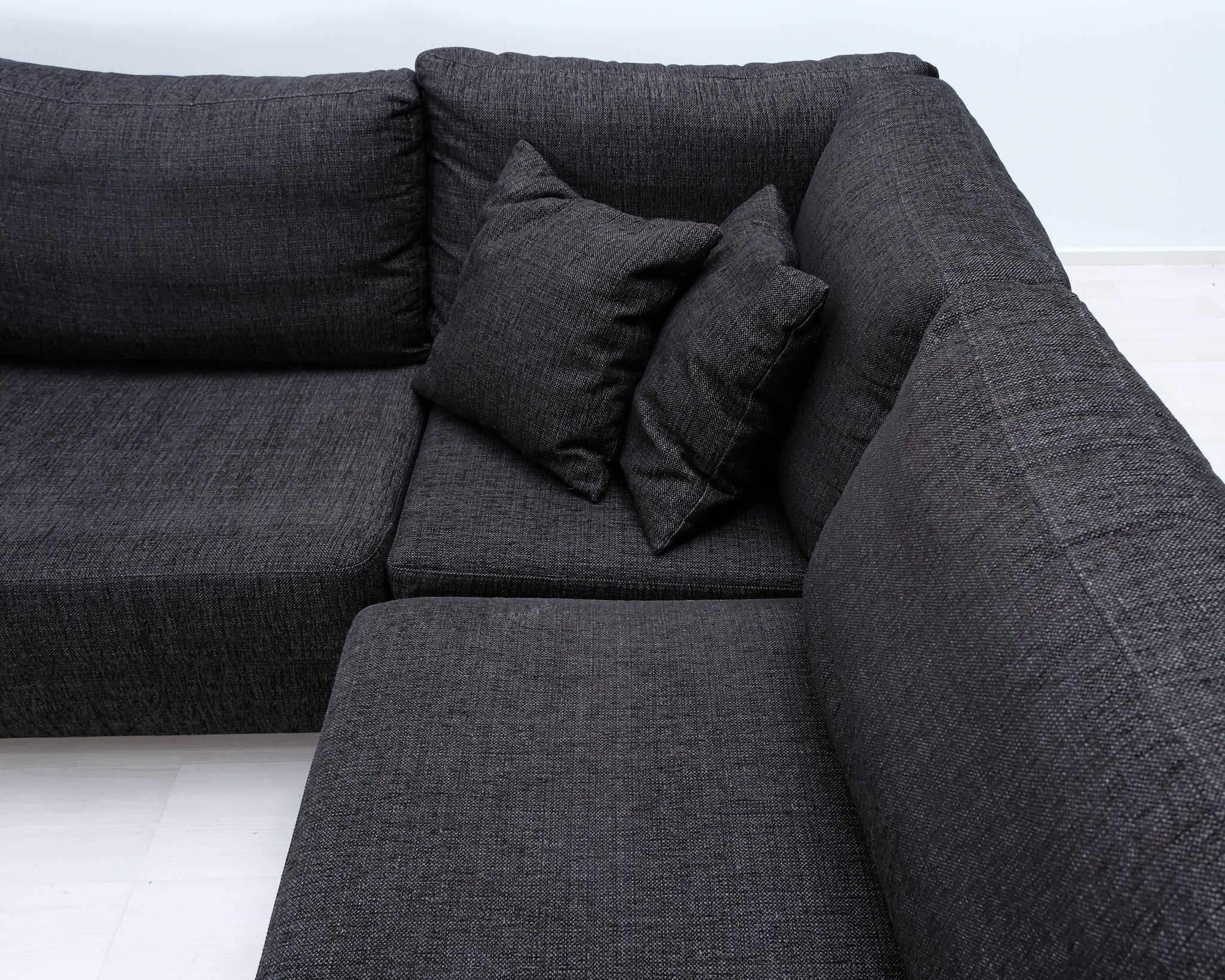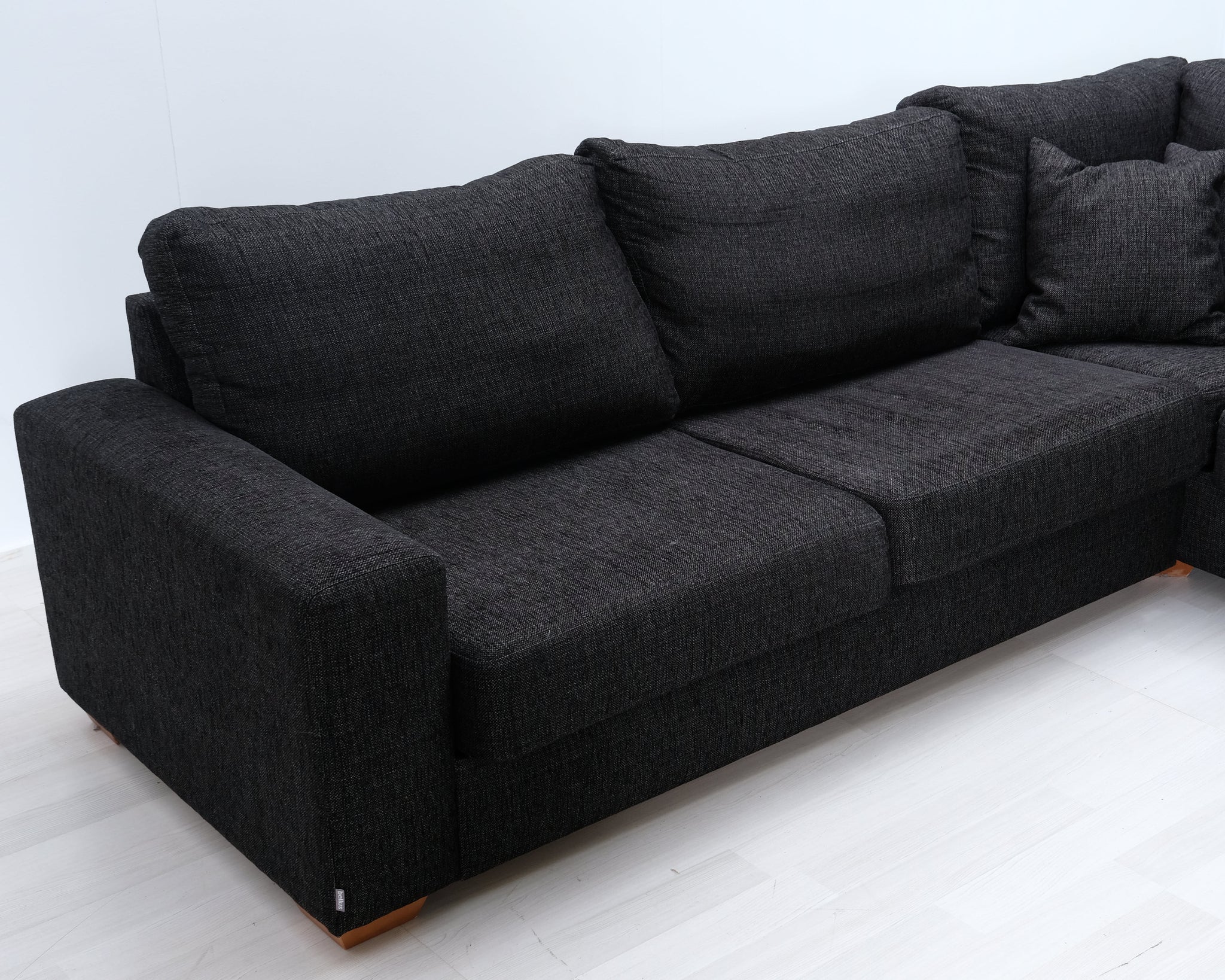 Askon tyylikäs divaanisohva leveillä käsinojilla. Tummanharmaa verhoilu sopii moneen kotiin.