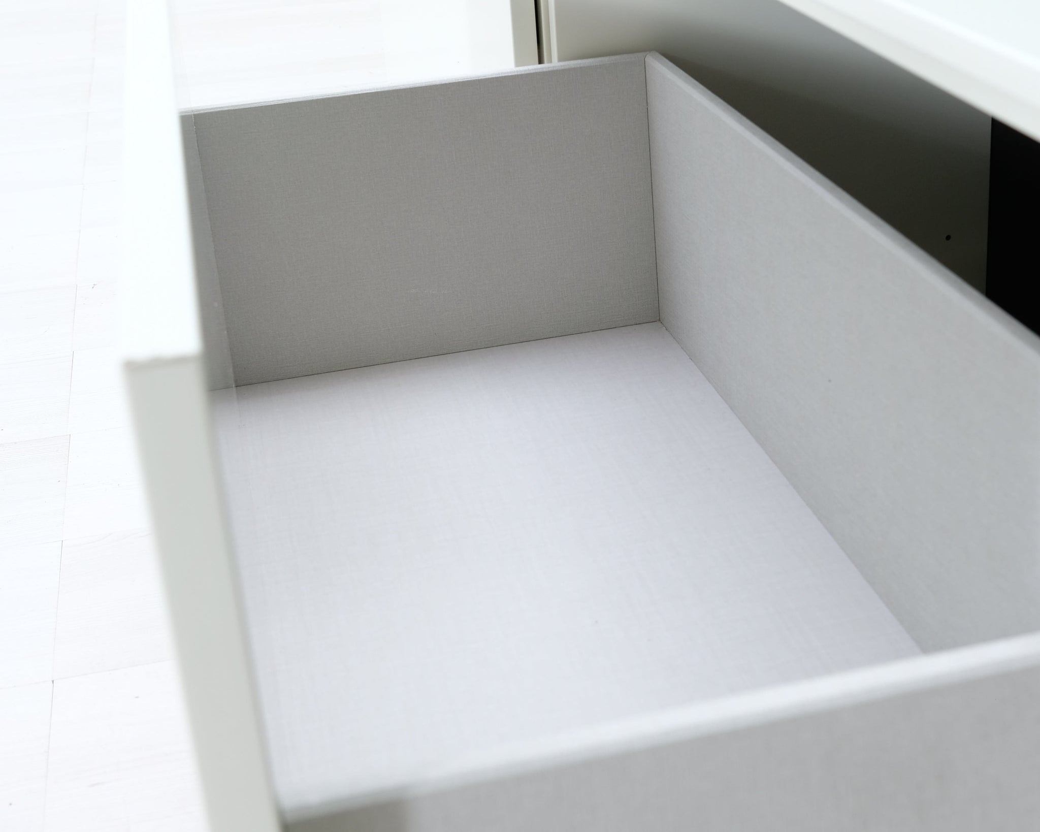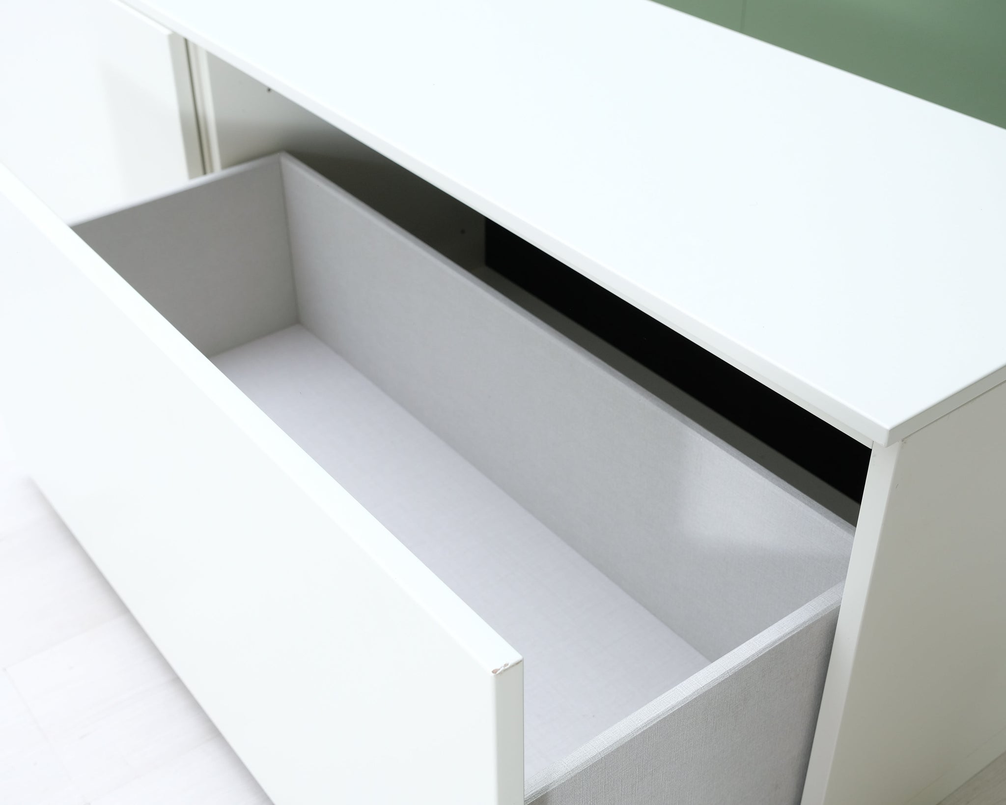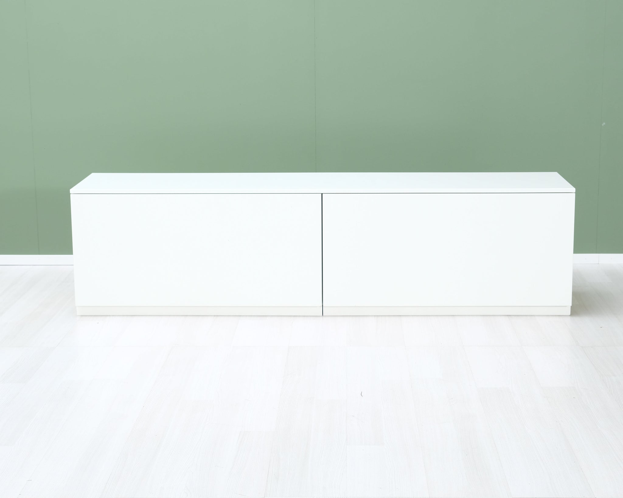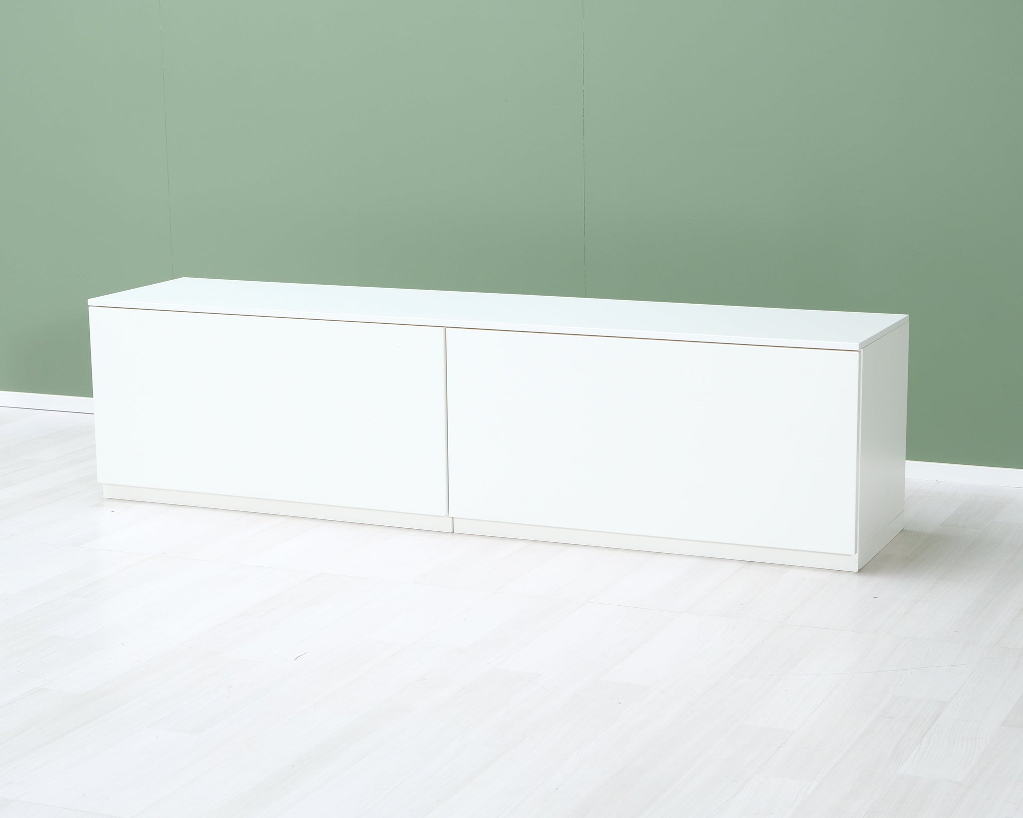 Askon valkoinen televisiotaso suurilla säilytyslaatikoilla.