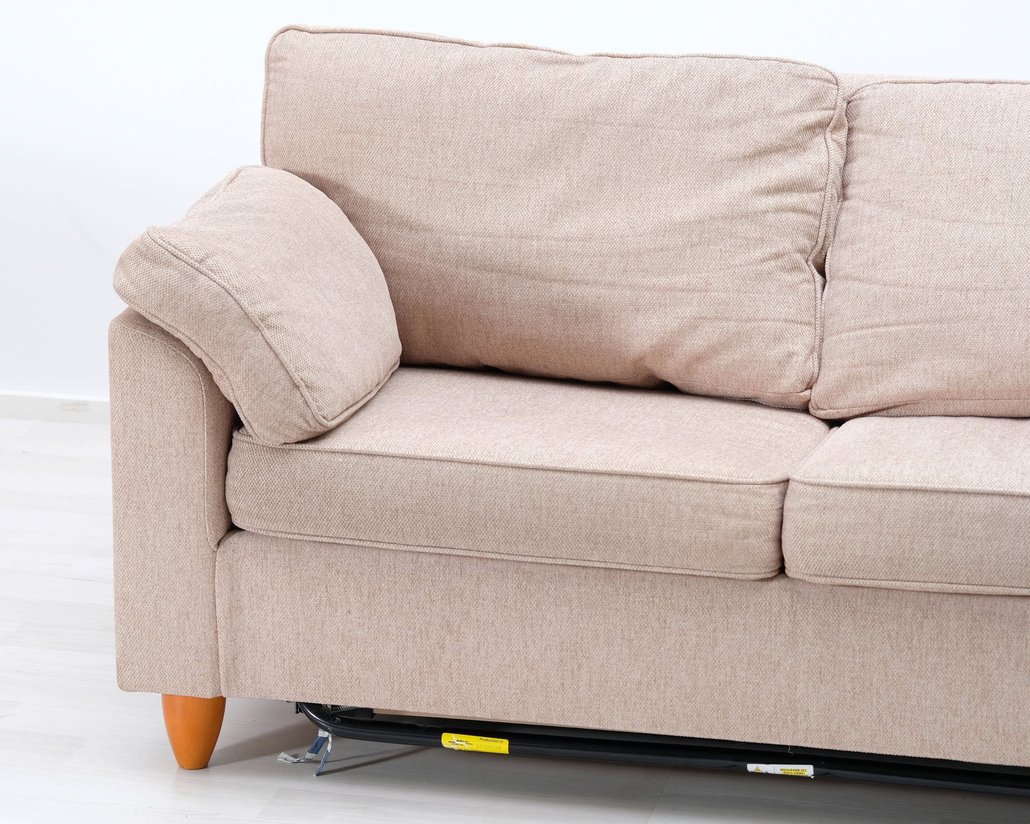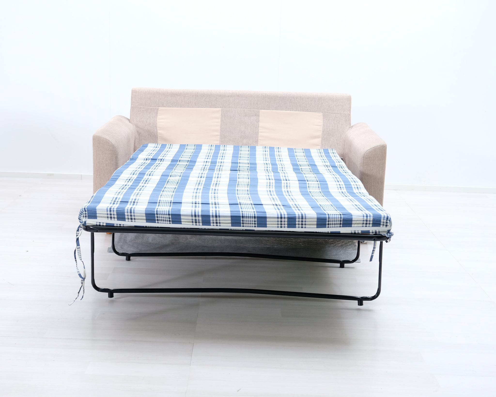 Kompakti kahden hengen vuodesohva. Beige kangasverhoilu.