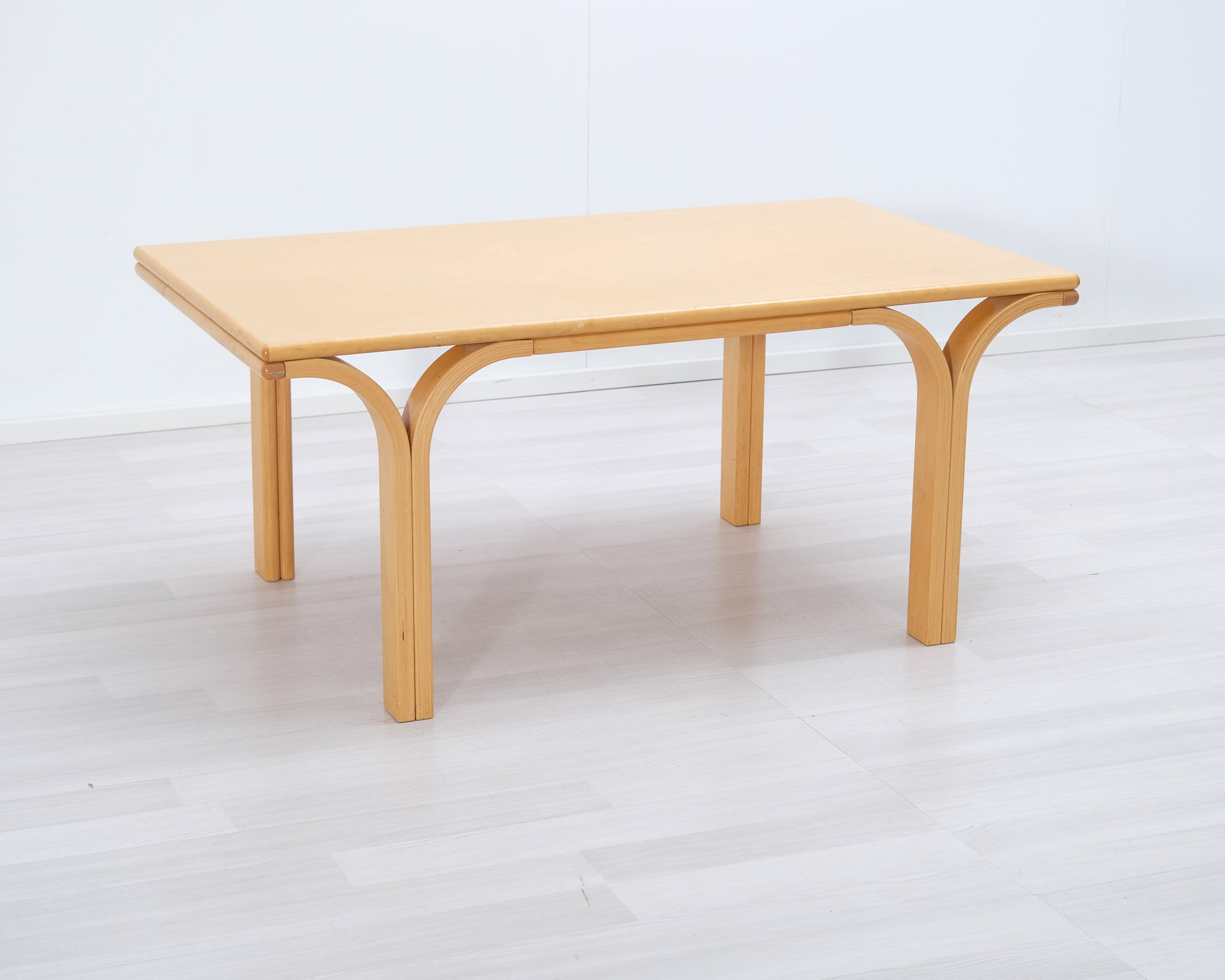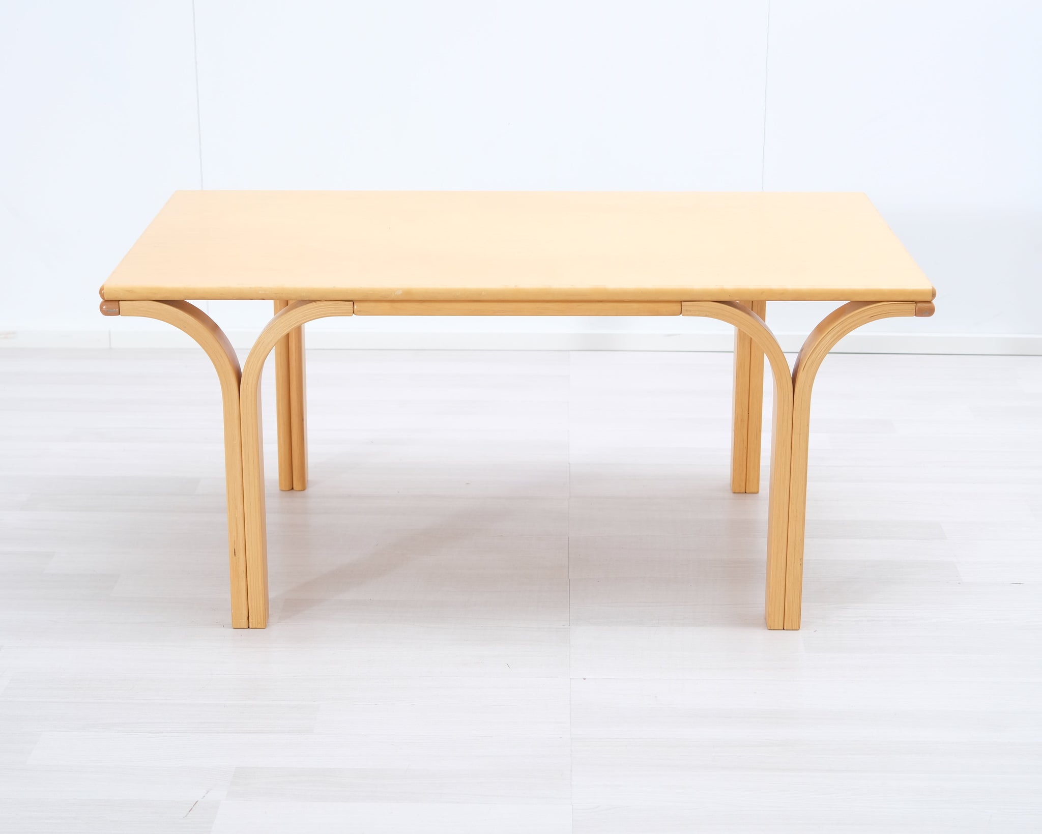 Askon valmistama puinen sohvapöytä. Pöydän jalat koostuvat kahdesta taivutetusta osasta.