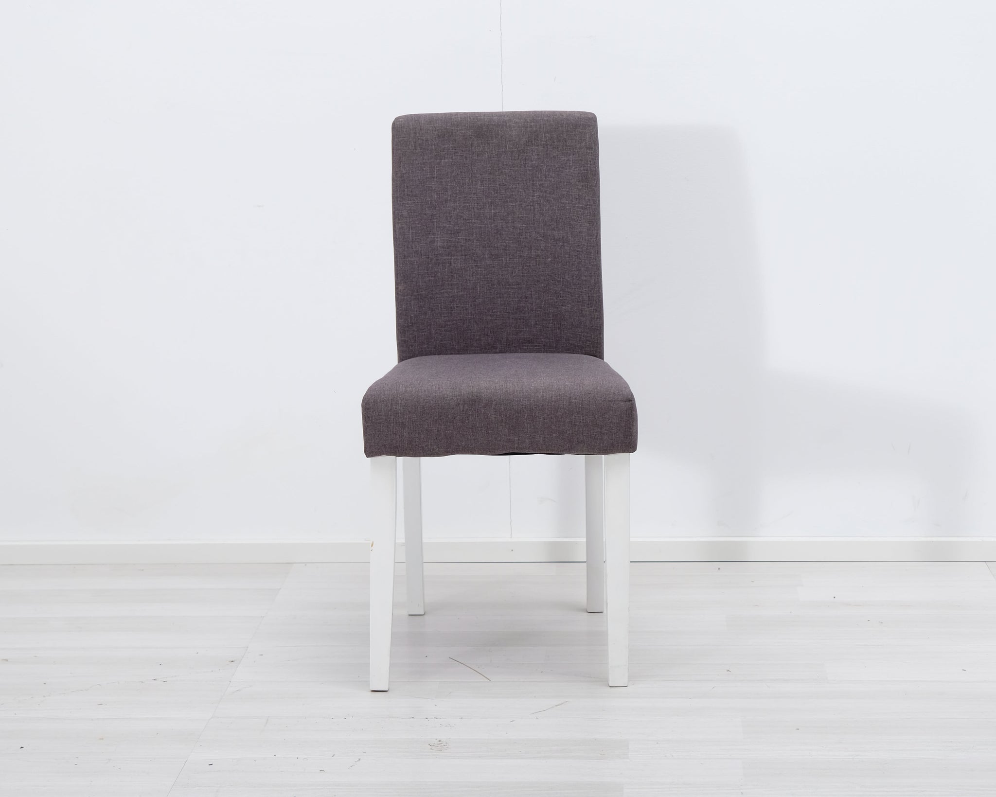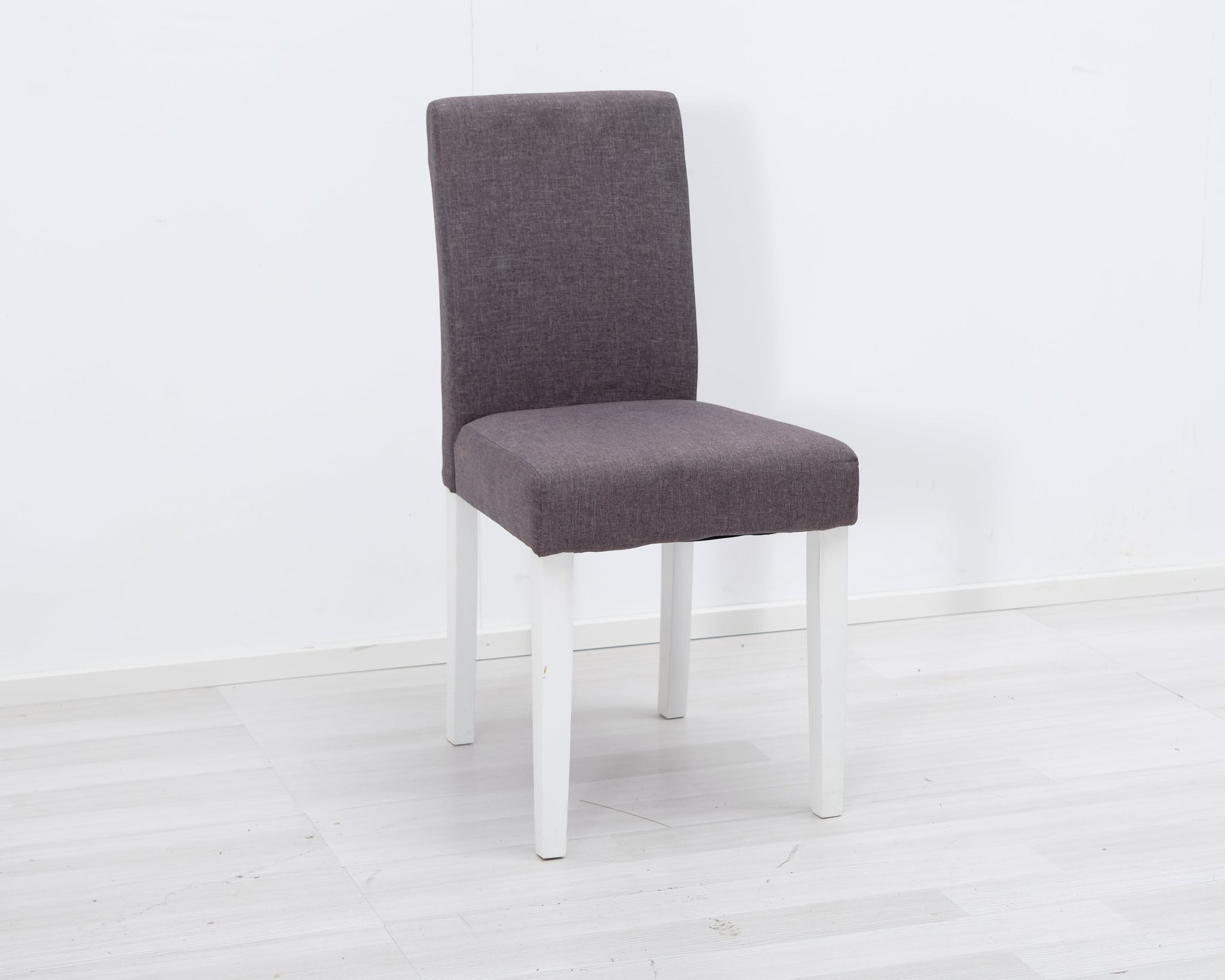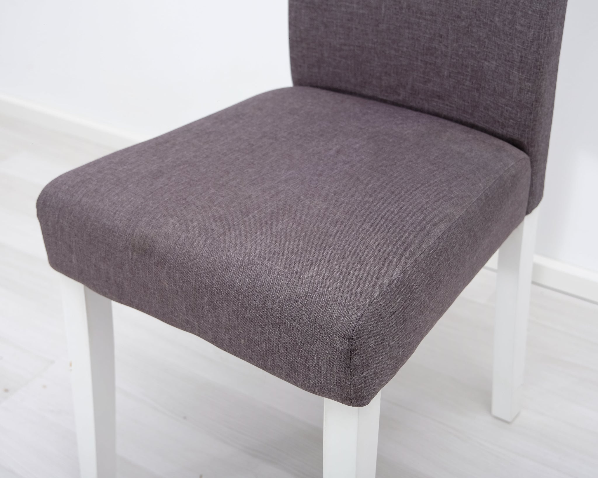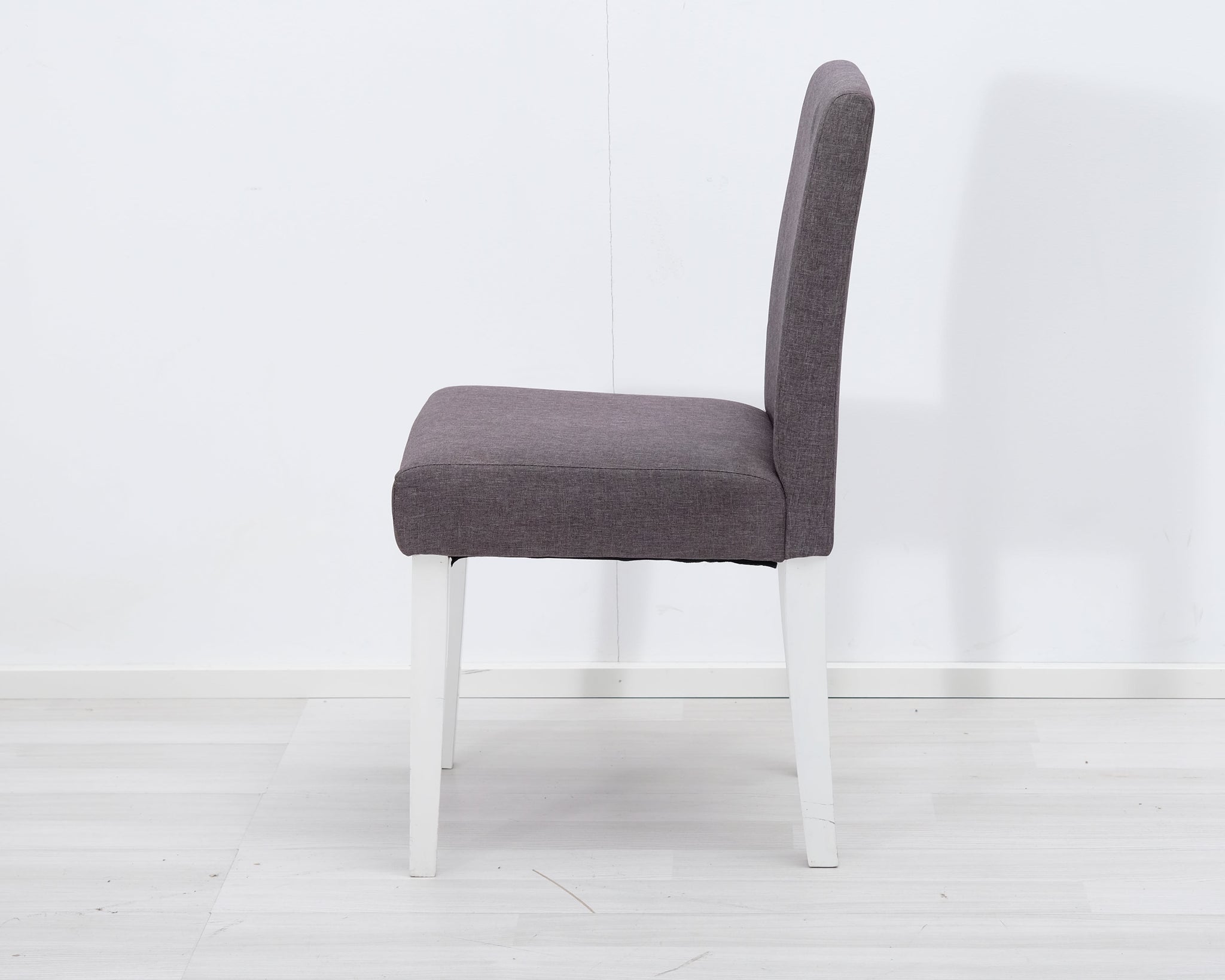 Askon perinteinen ruokapöydän tuoli harmaalla kangasverhoilulla ja valkoisilla puujaloilla.