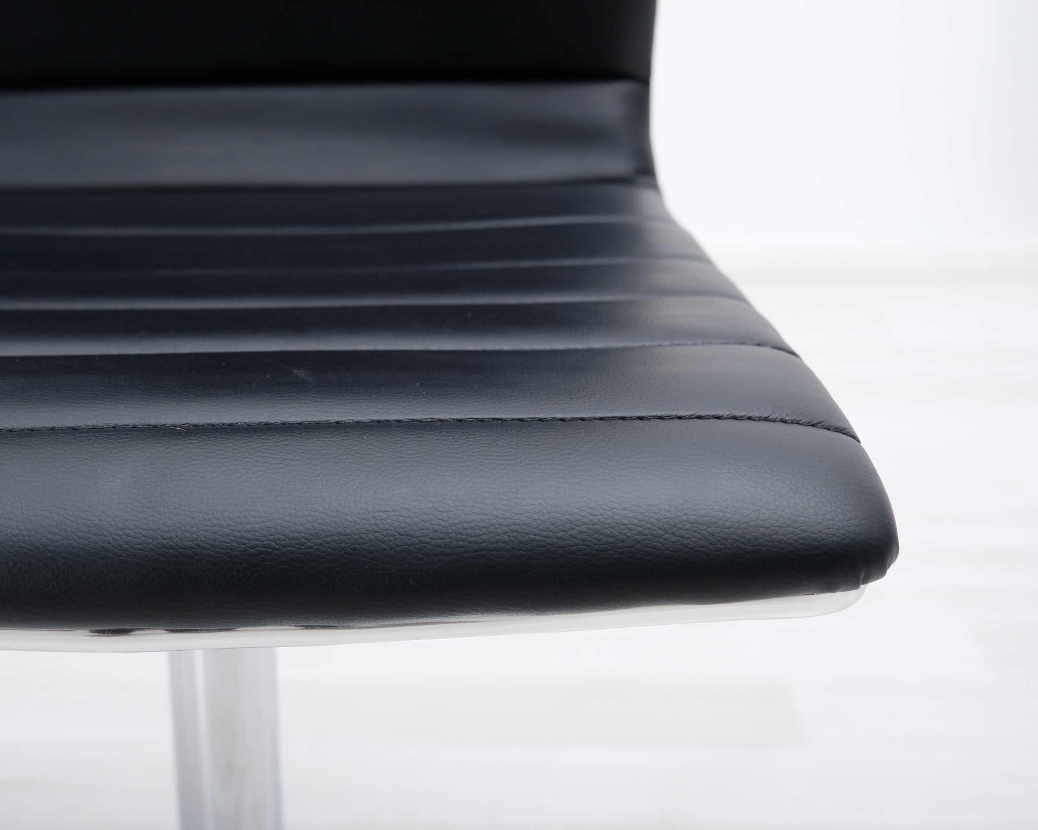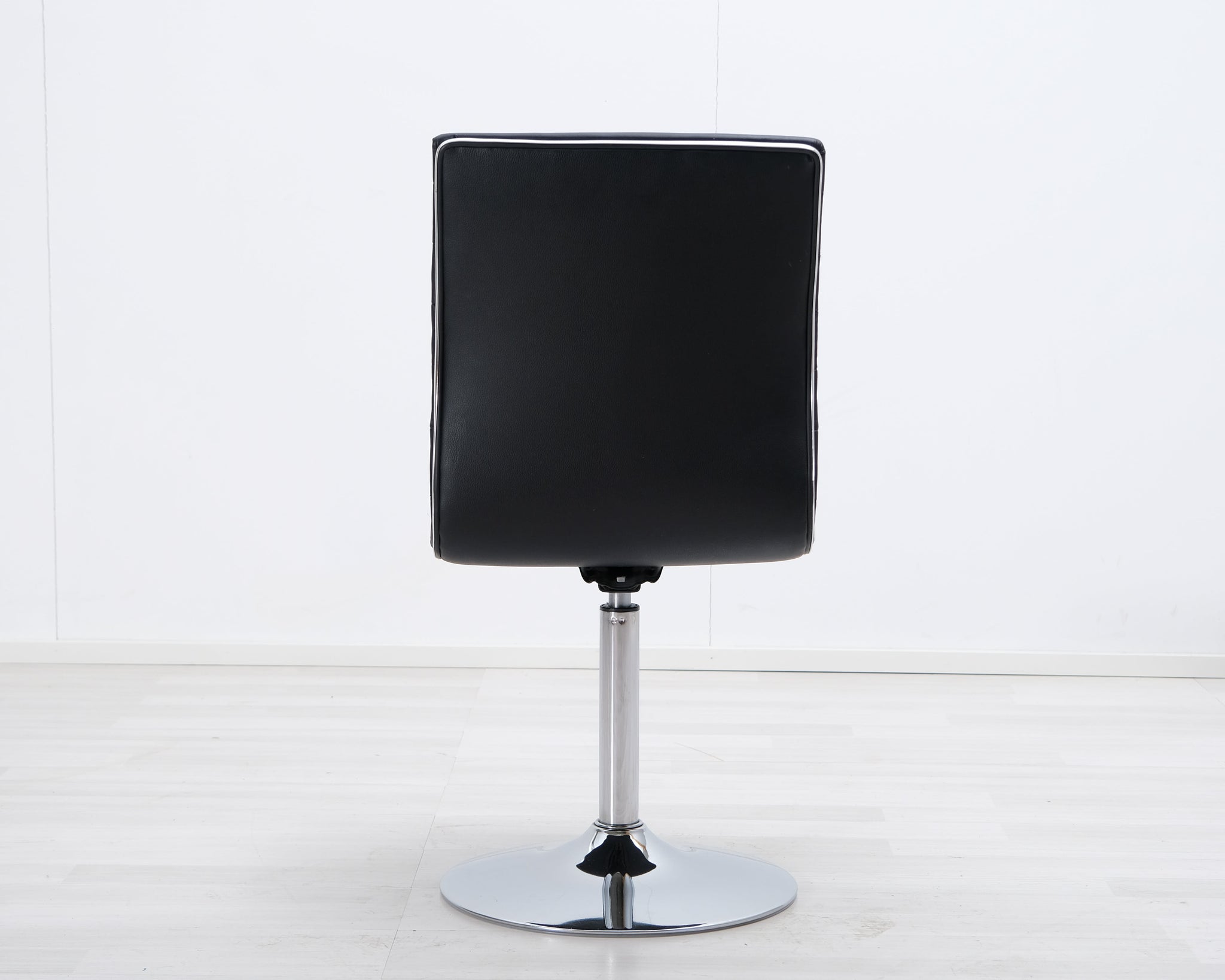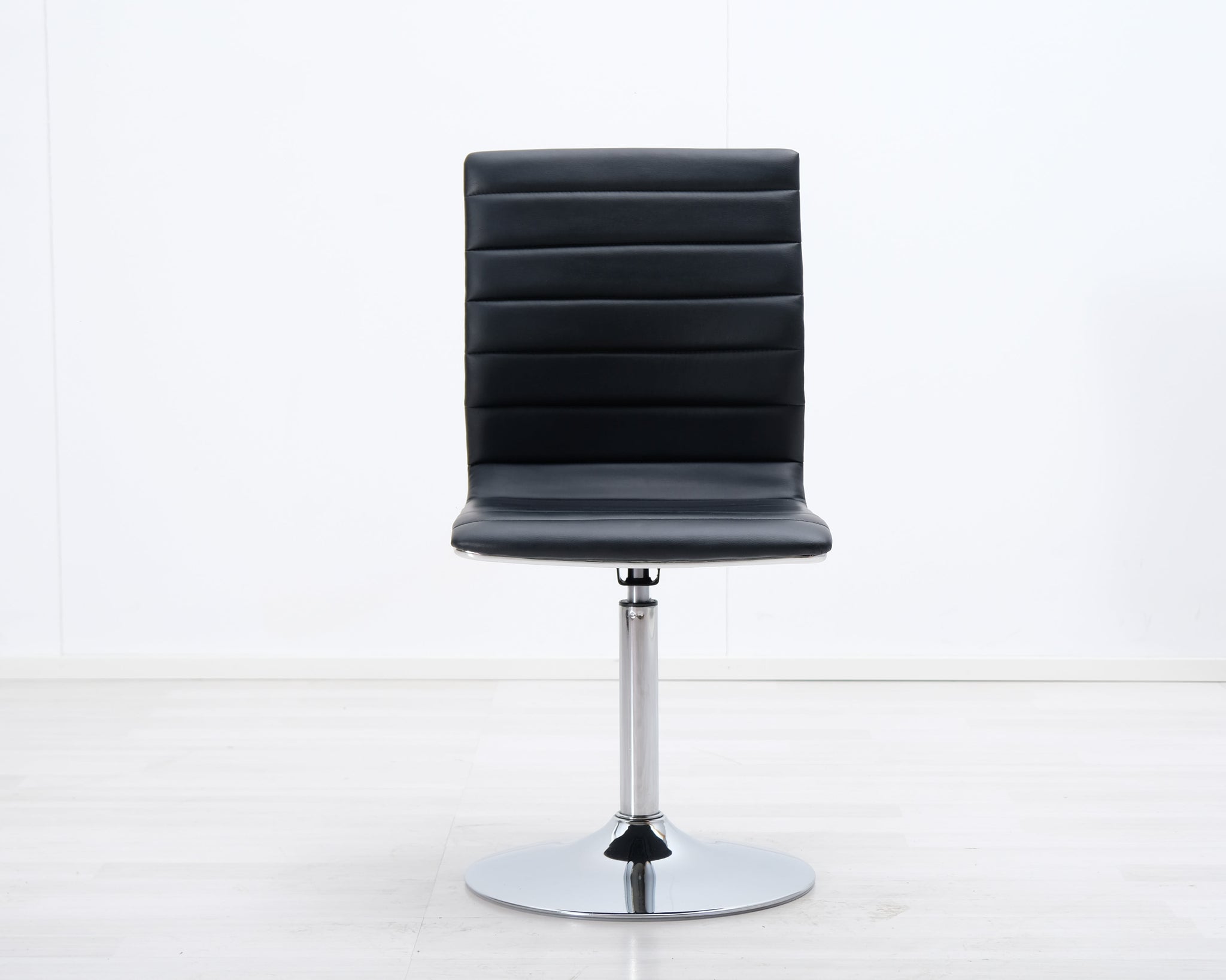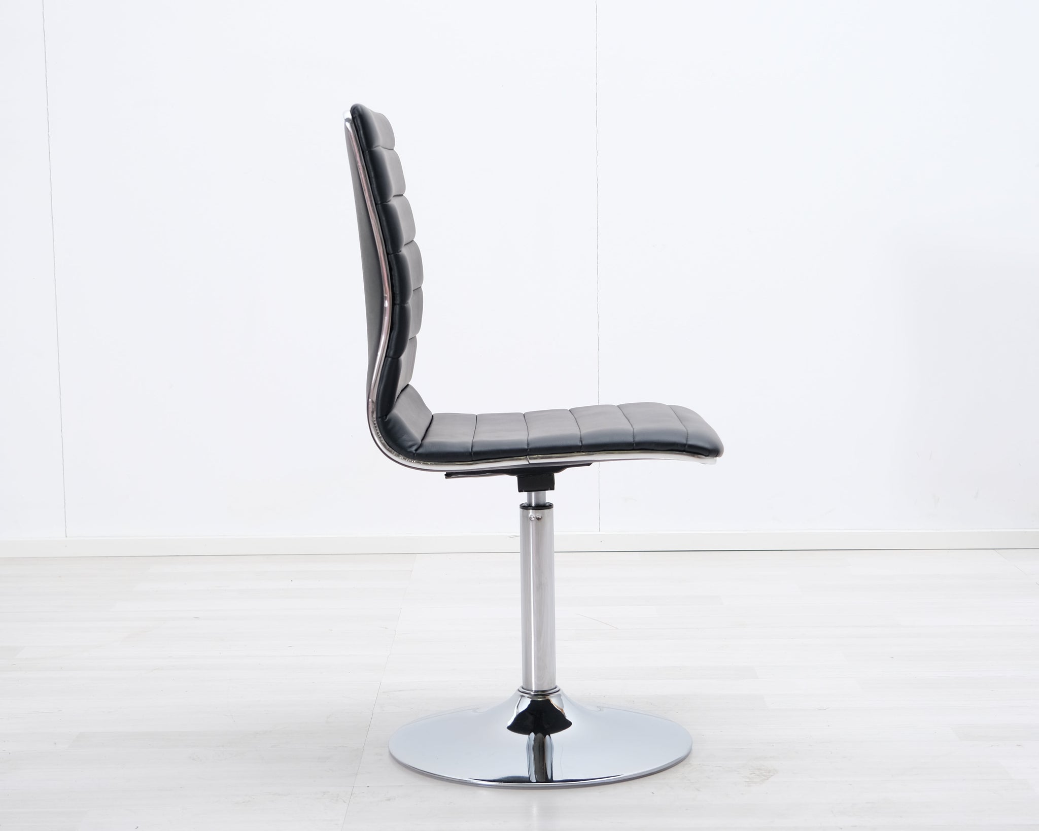 Pyörivä ruokatuoli mustalla keinonahkaistuimella. Metallinen laippajalka.