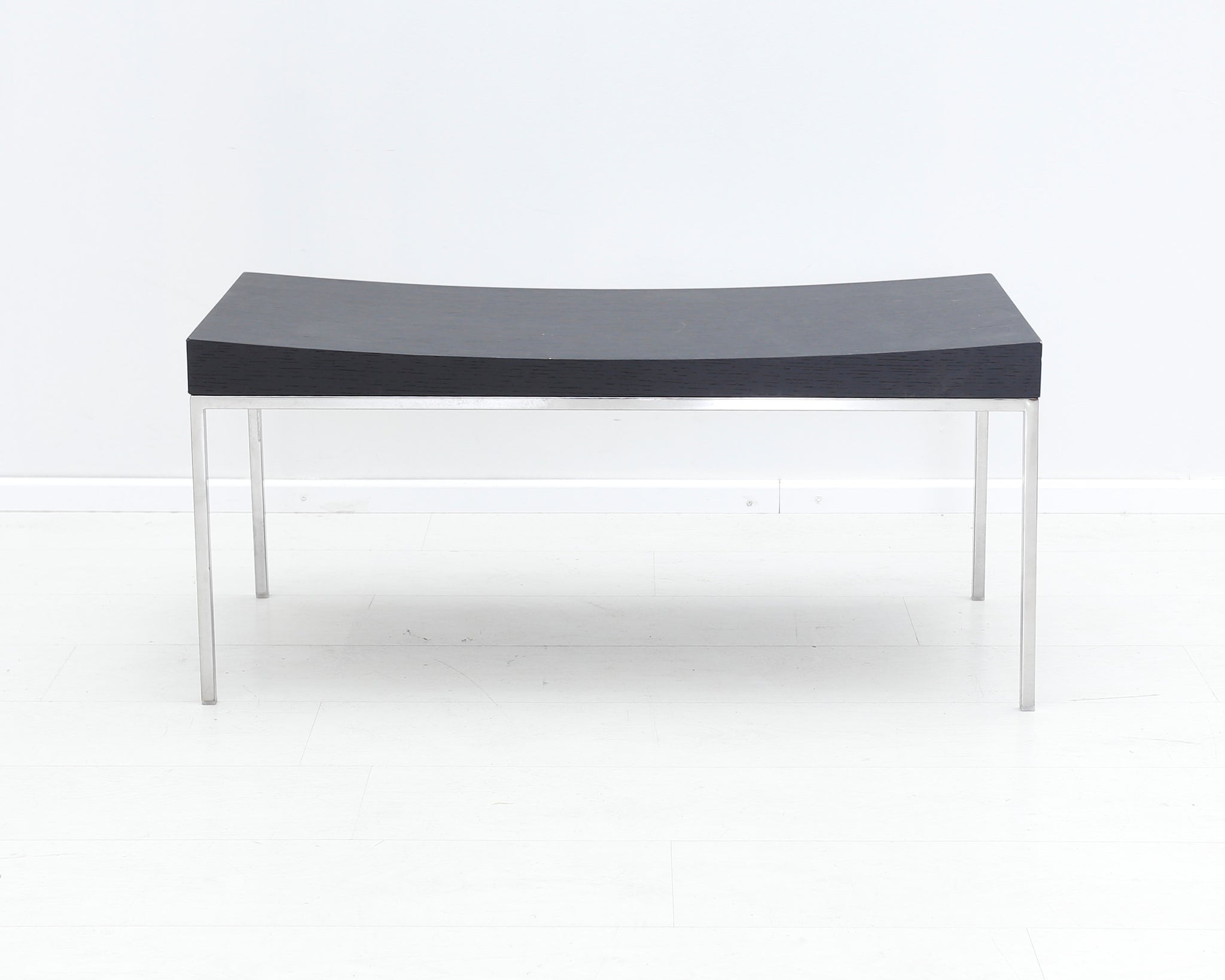Kaunis ja pelkistetty pöytä tummalla pöytälevyllä. Istuu hienosti skandinaaviseen kotiin.
