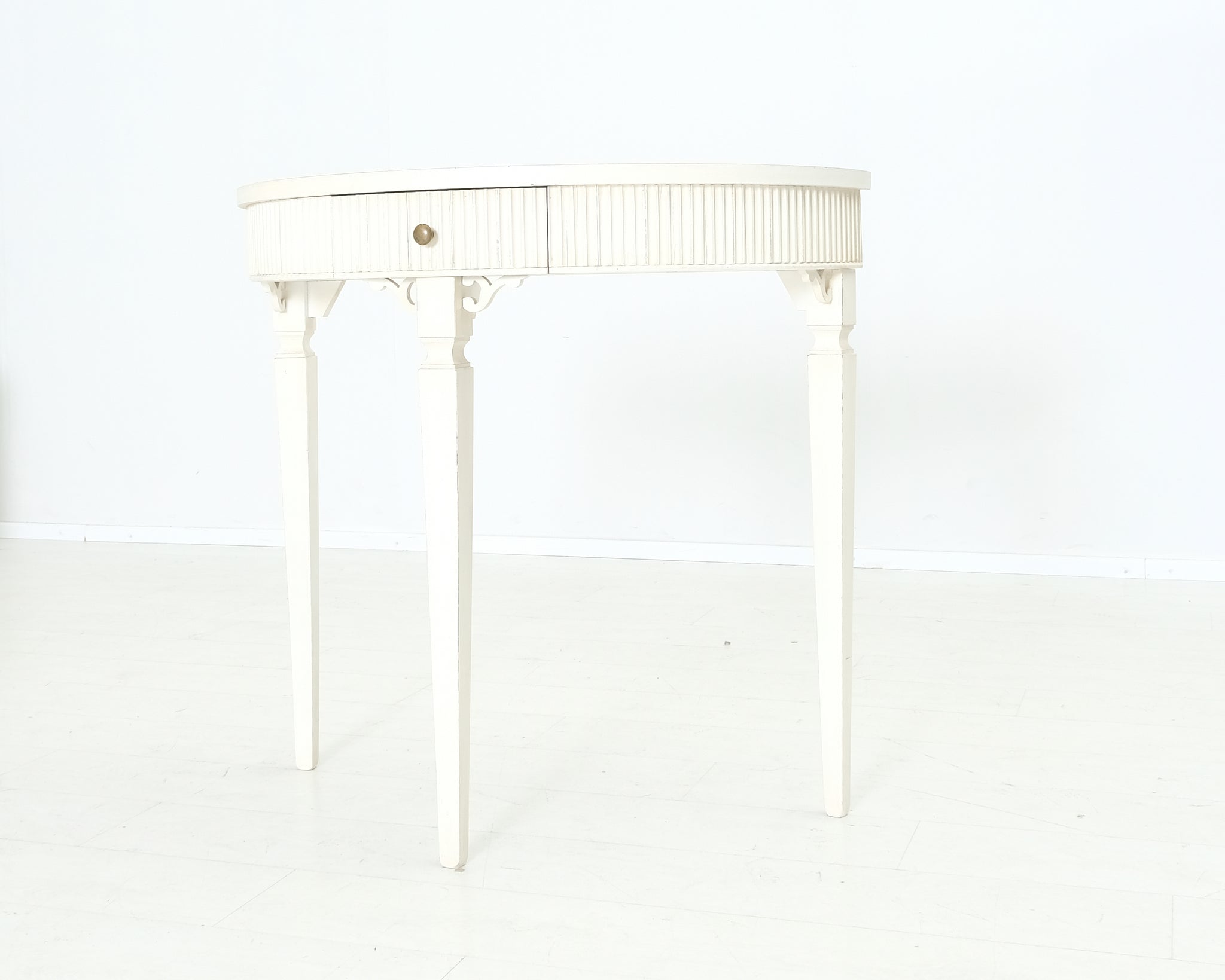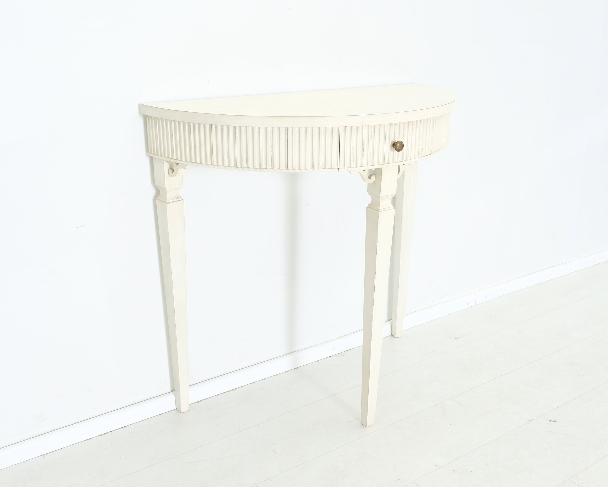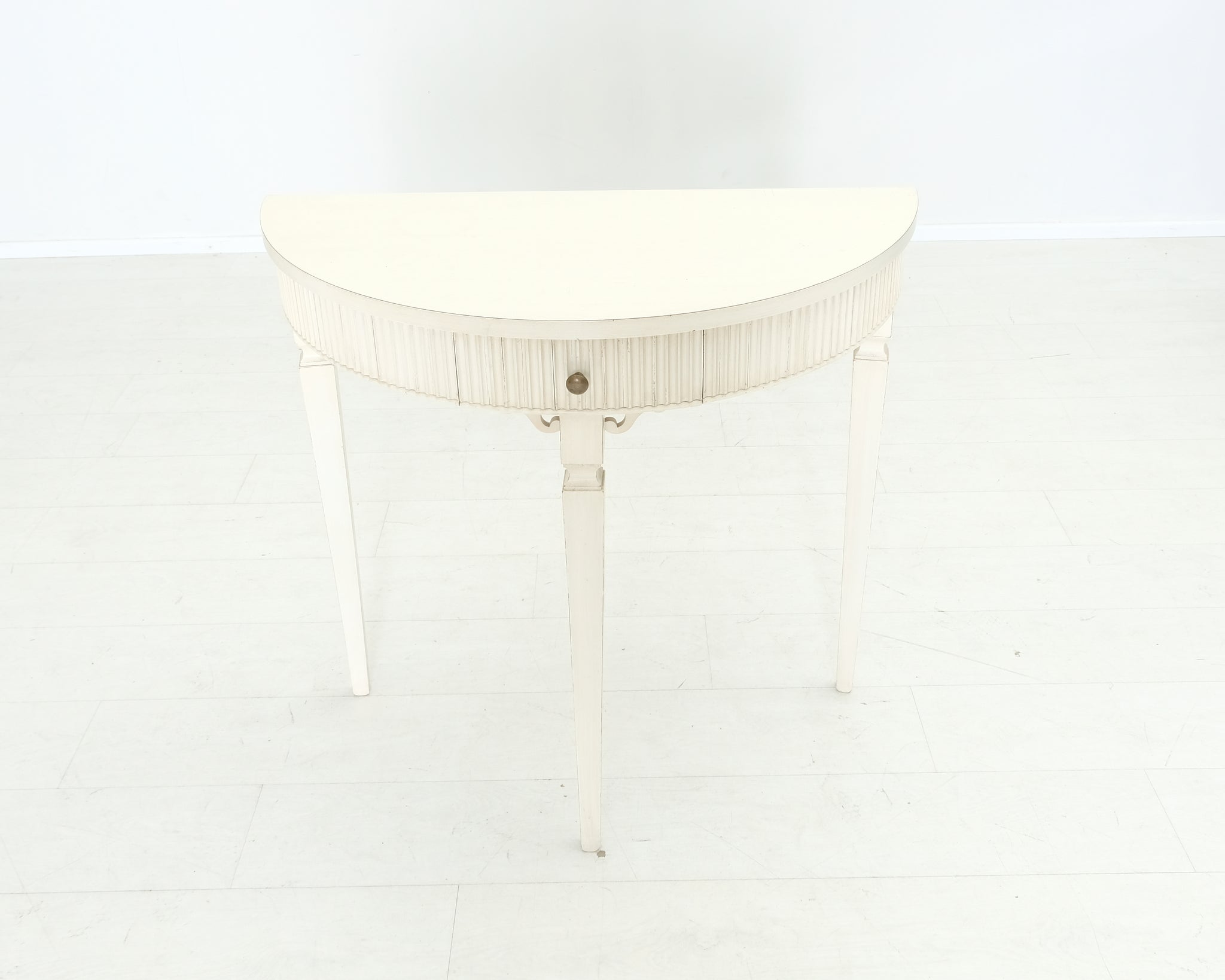 Rustiikkinen sivupöytä kauniilla valkoisella, antikoidulla pinnalla. Siro ilme sopii hienosti niin moderniin, kuin perinteikkäämpäänkin sisustukseen.