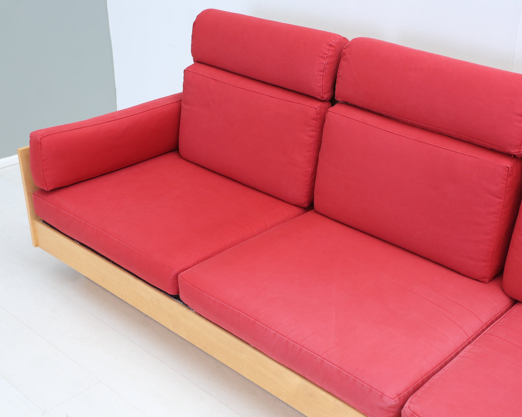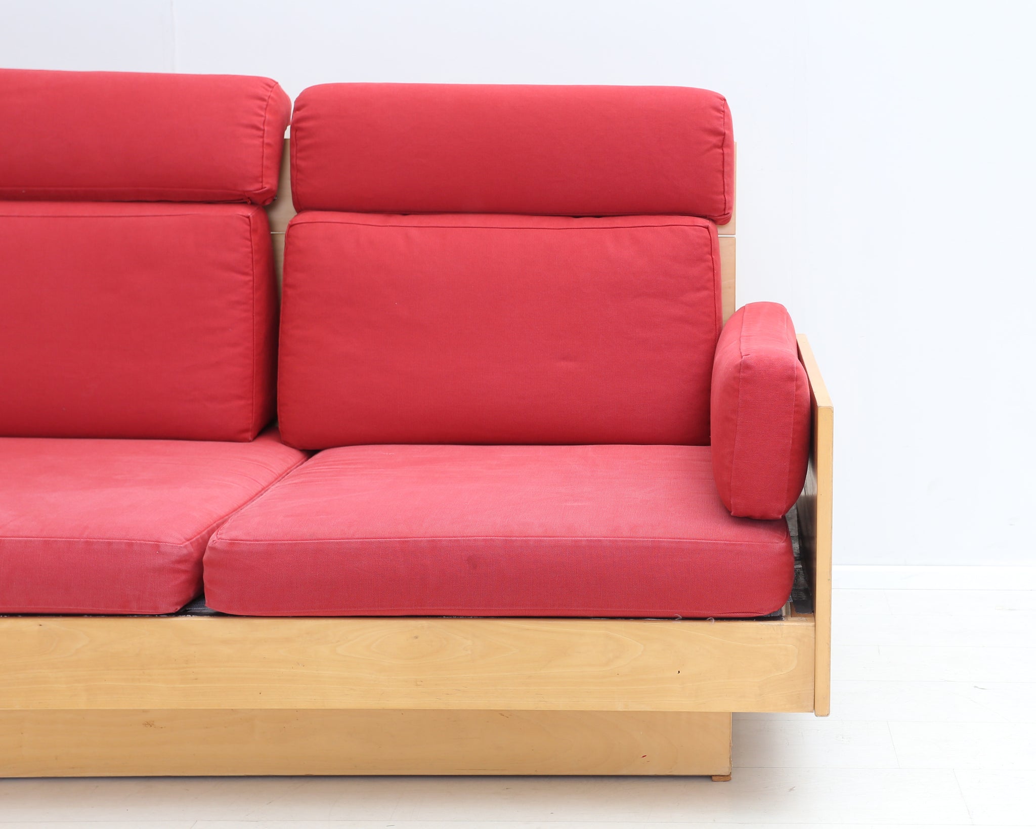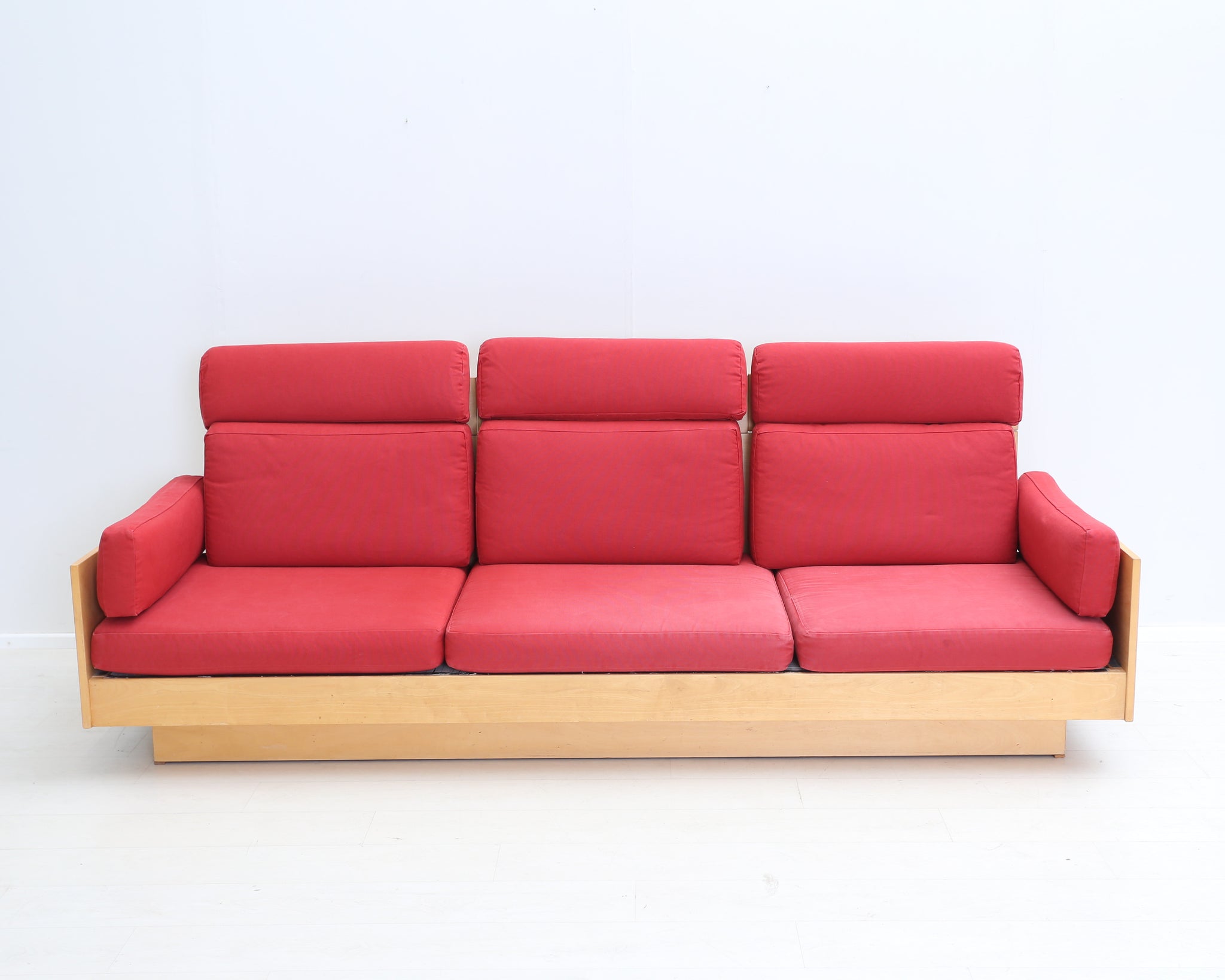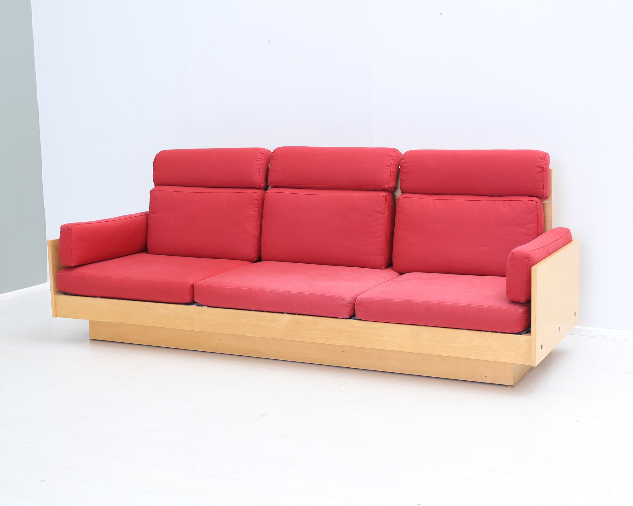 Ben af Schulténin suunnittelema Artekin klassikkosohva. Puinen runko ja punaiset tyynyt. Todellisesti aikaa kestävä design, joka näyttää hyvältä vuodesta toiseen.