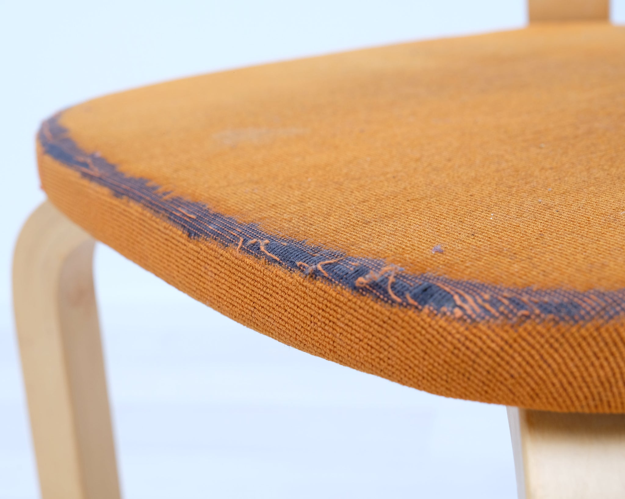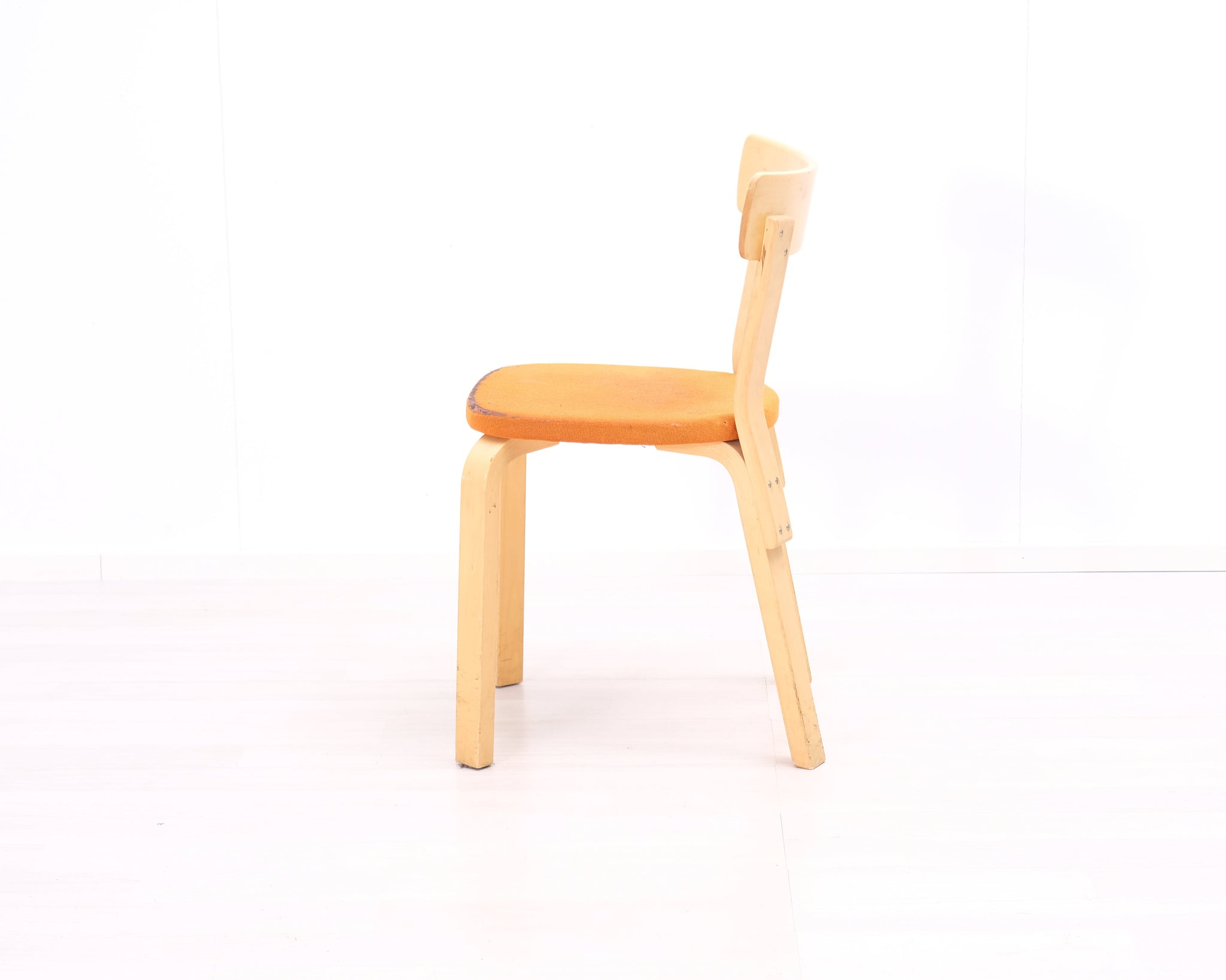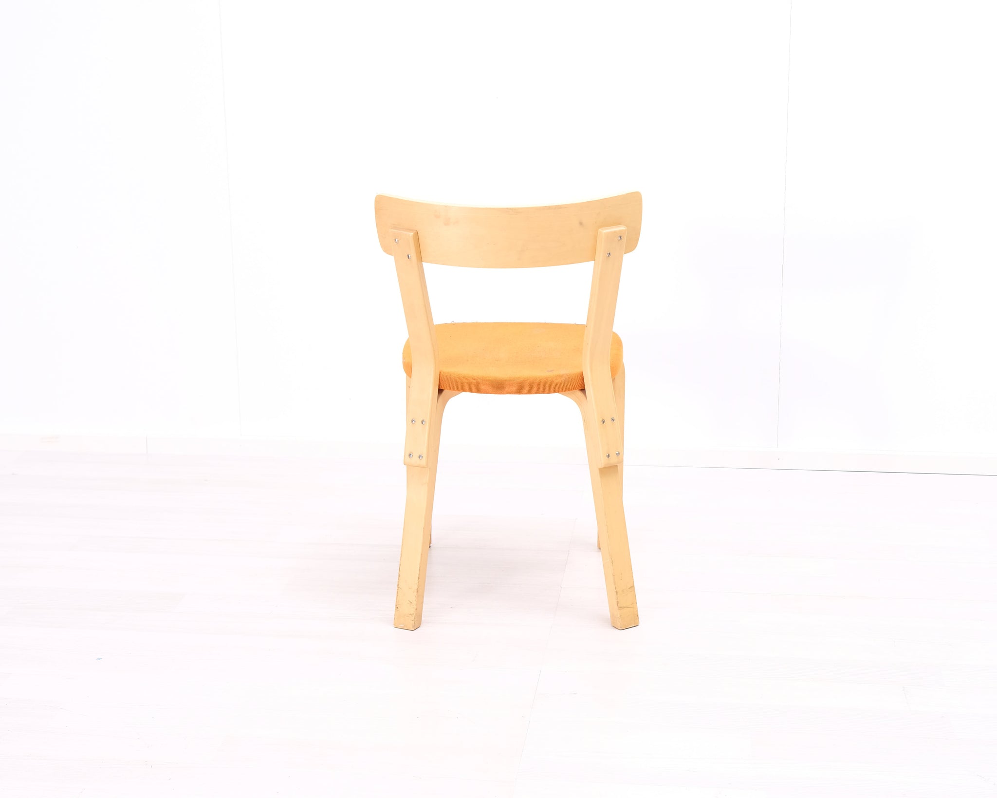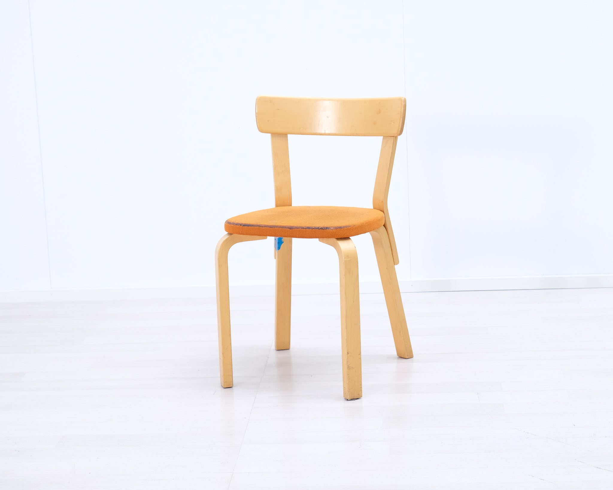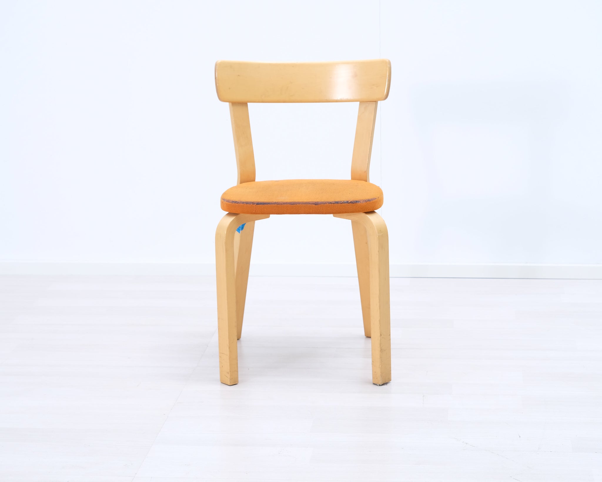 Alvar Aallon Artekille suunnittelema tuoli 69 on todellinen klassikko. Vuonna 1935 suunnitellussa tuolissa on leveämpi selkänoja ja istuin. Tämän vuoksi tuoli sopii mainiosti niin ruokailuun kuin työskentelyyn. Tuolissa on patentoidut L-jalat ja oranssi kangasistuin.