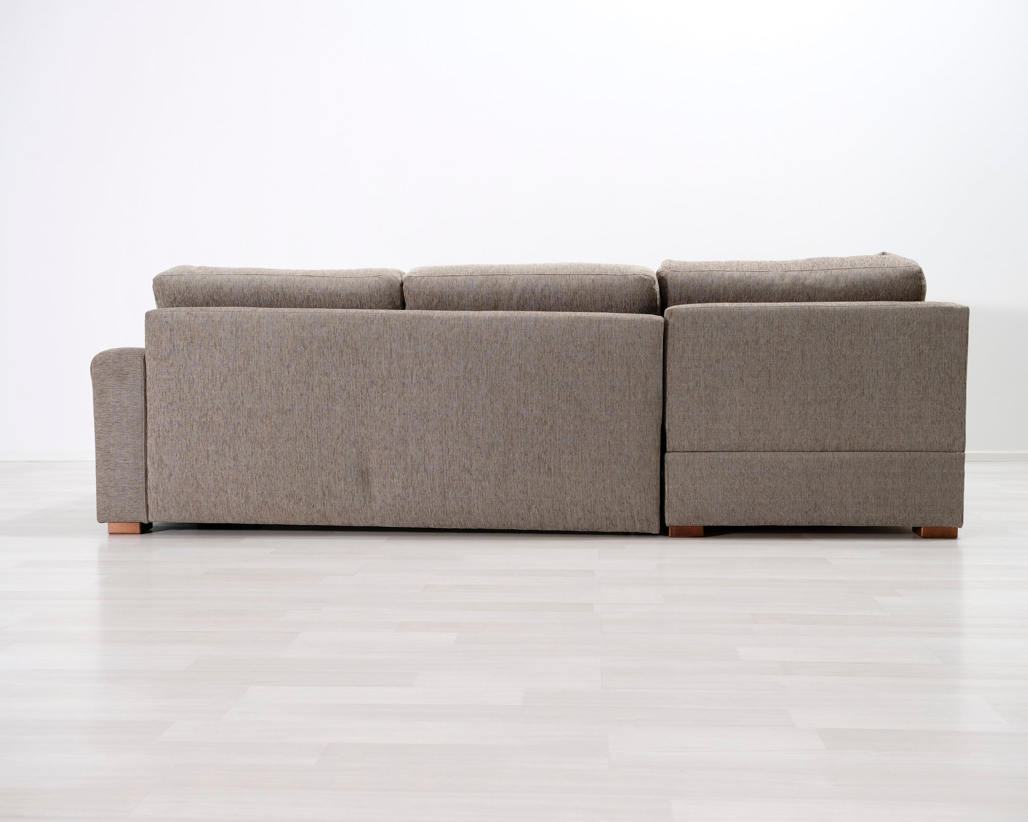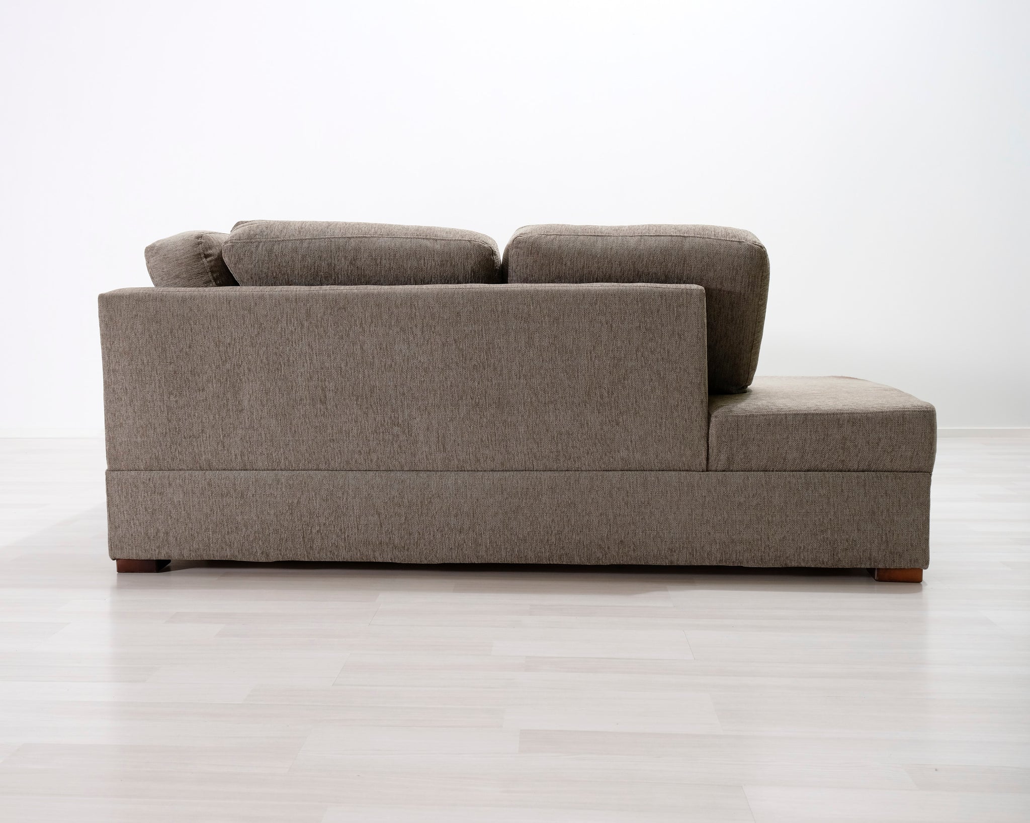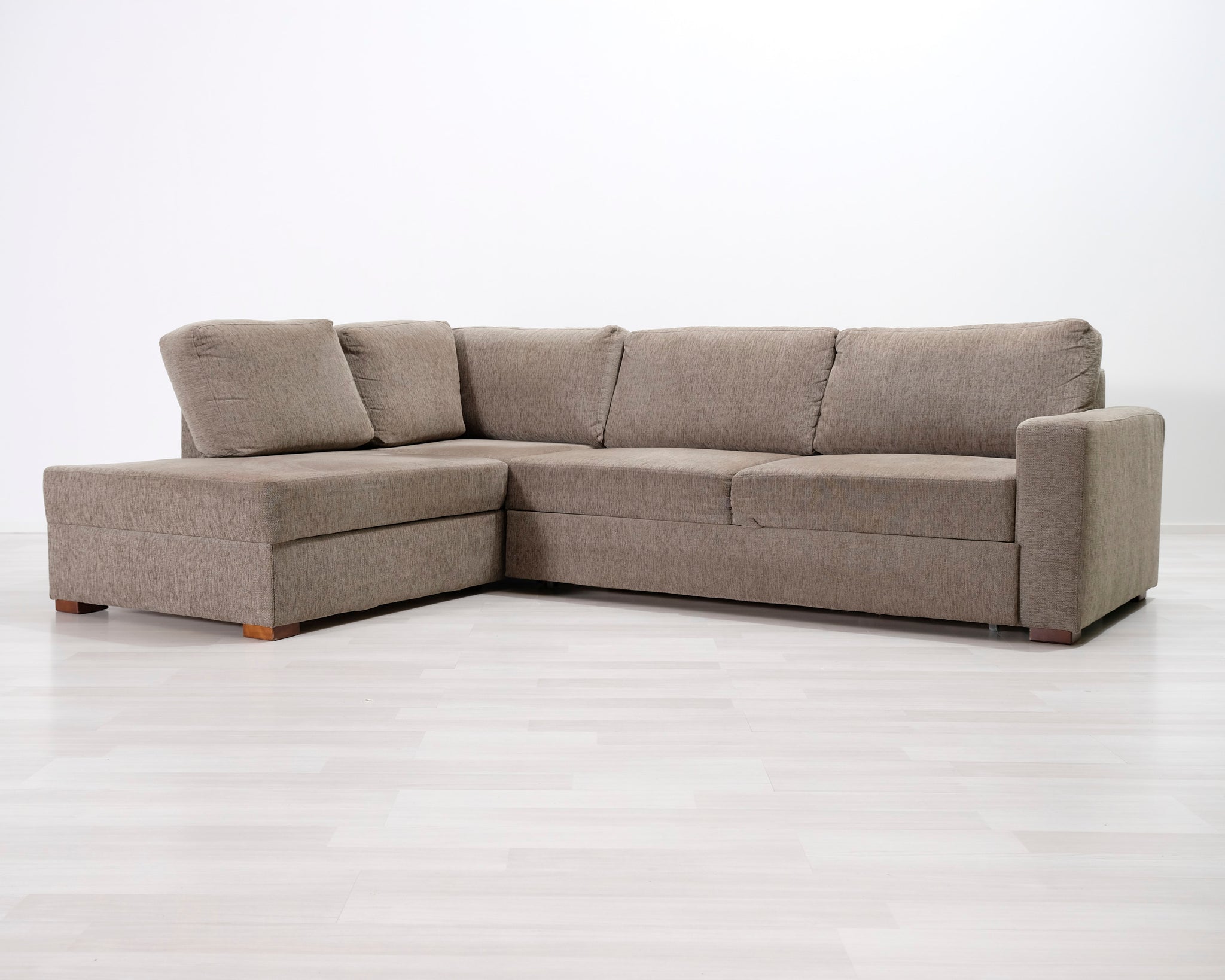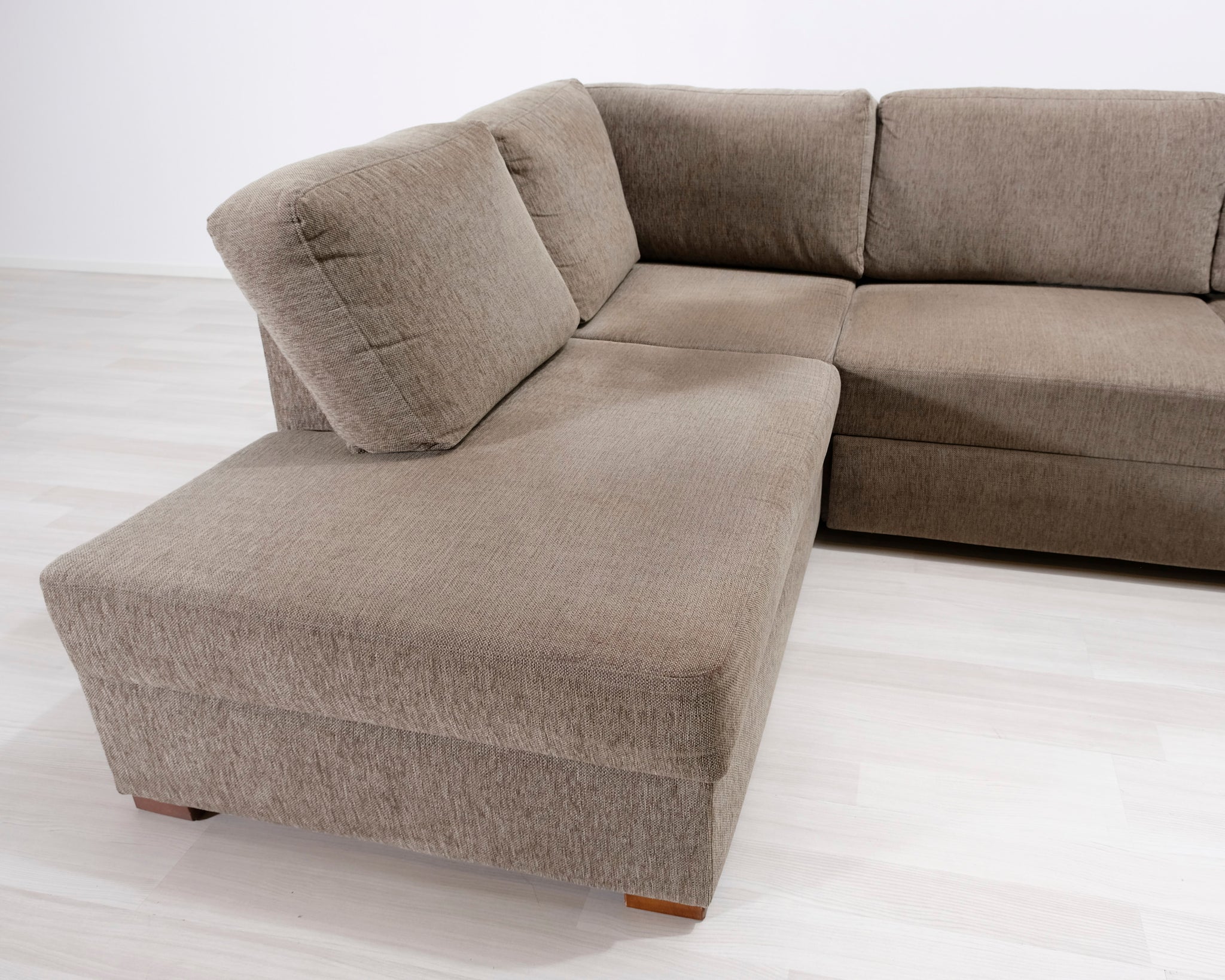 Kangasverhoiltu vuodesohva divaanilla. Toimii niin vierasvuoteena kuin käytännöllisenä sisustusratkaisuna pienessä kodissa.