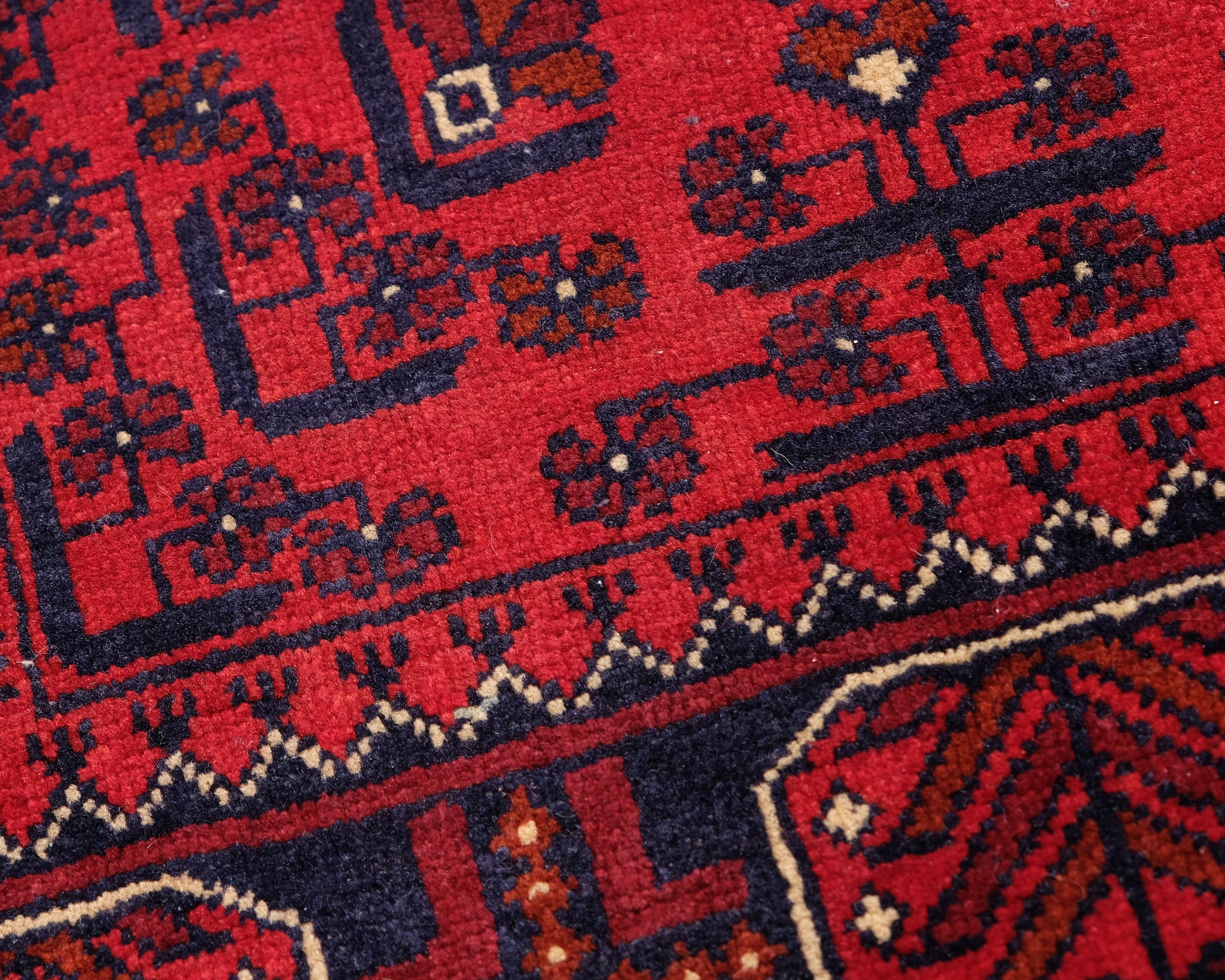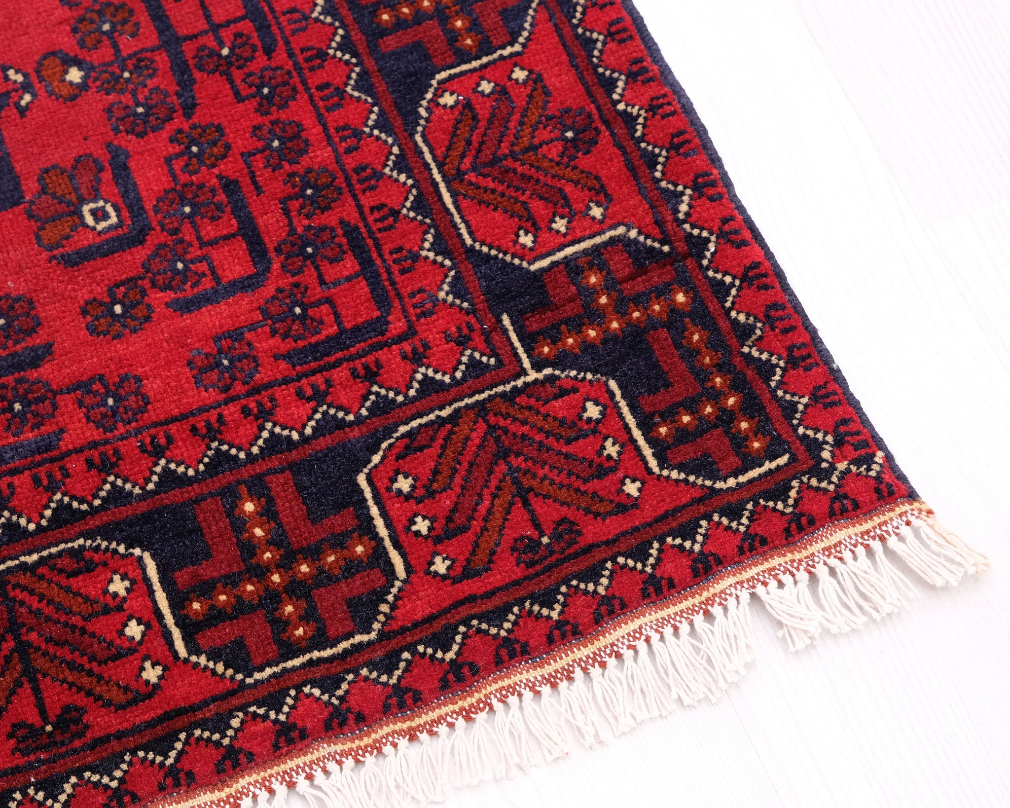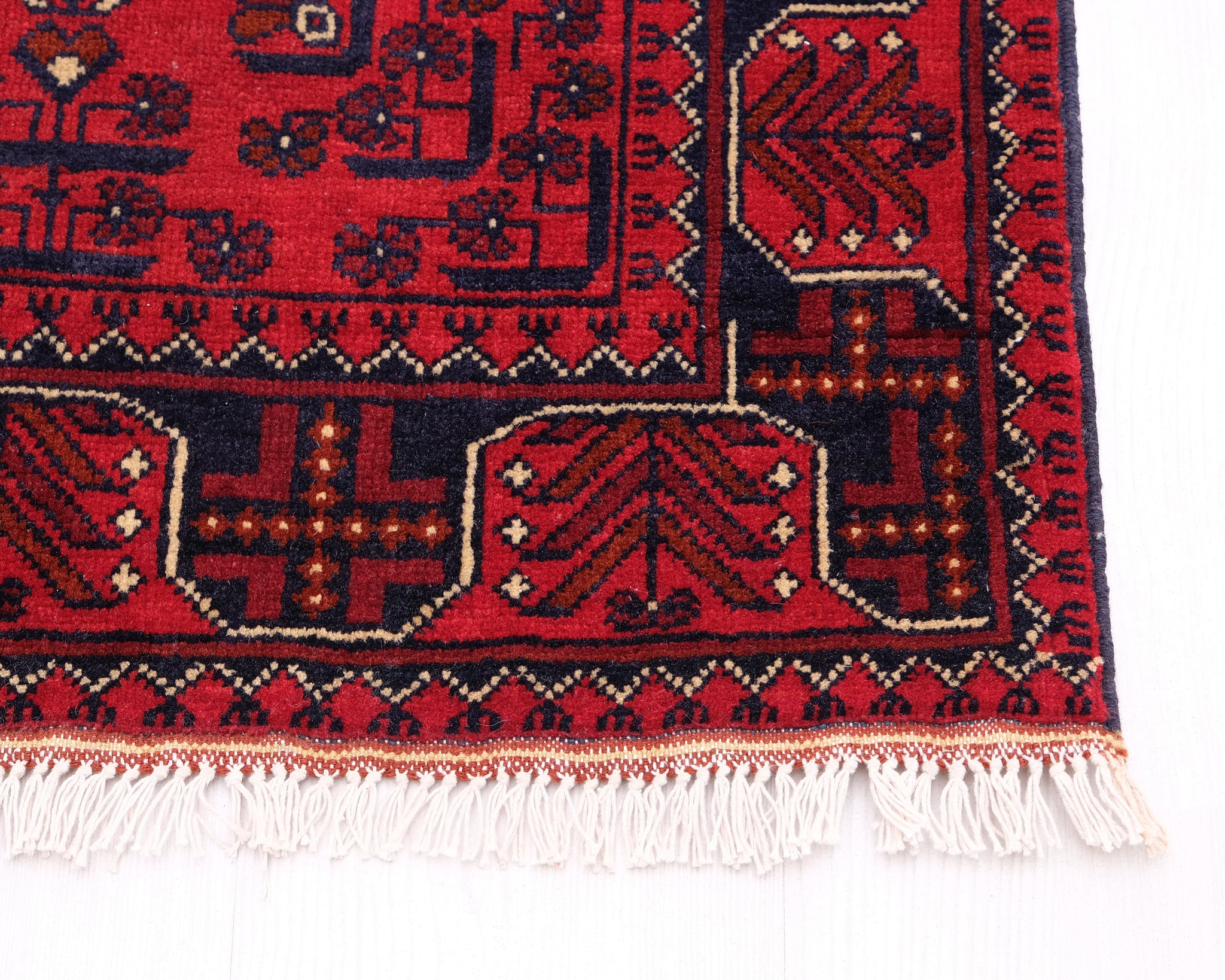 Käsinsolmittu afgaanimatto, valmistettu laadukkaasta villasta. Ostaja saa aitoustodistuksen.