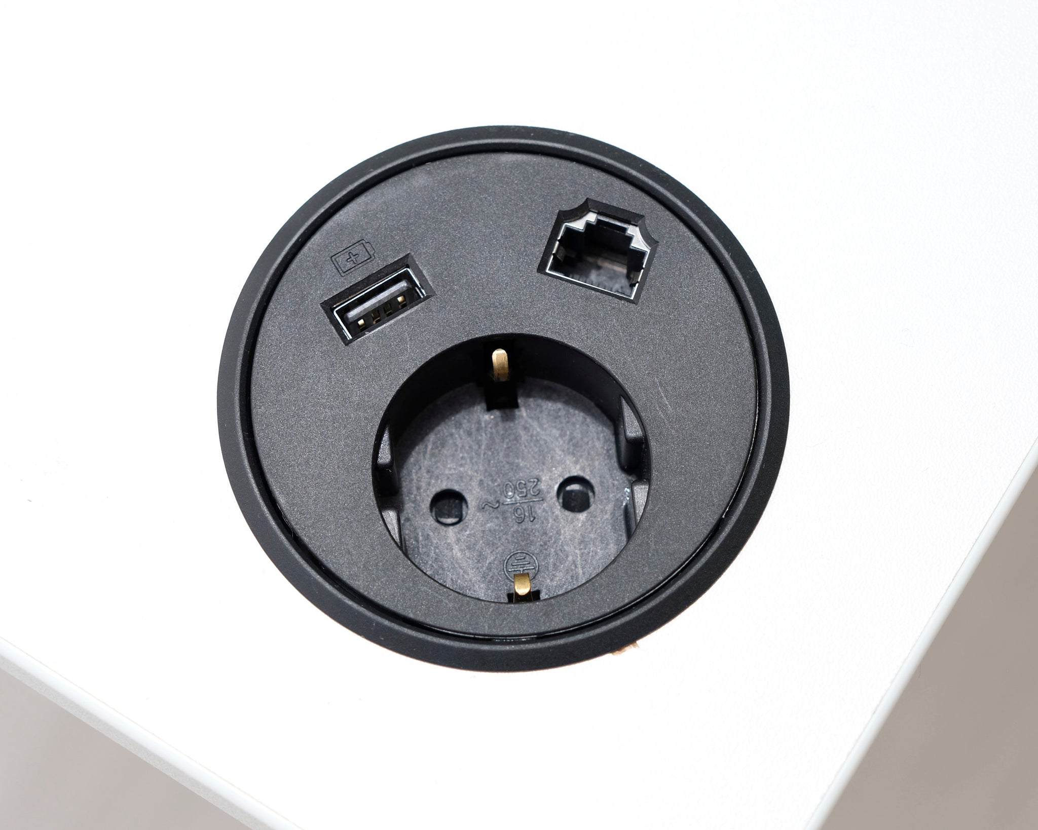 Korkeussäädettävä sähköpöytä. Pöytä on aina sopivan korkuinen niin istuma- kuin seisomatyöhön.