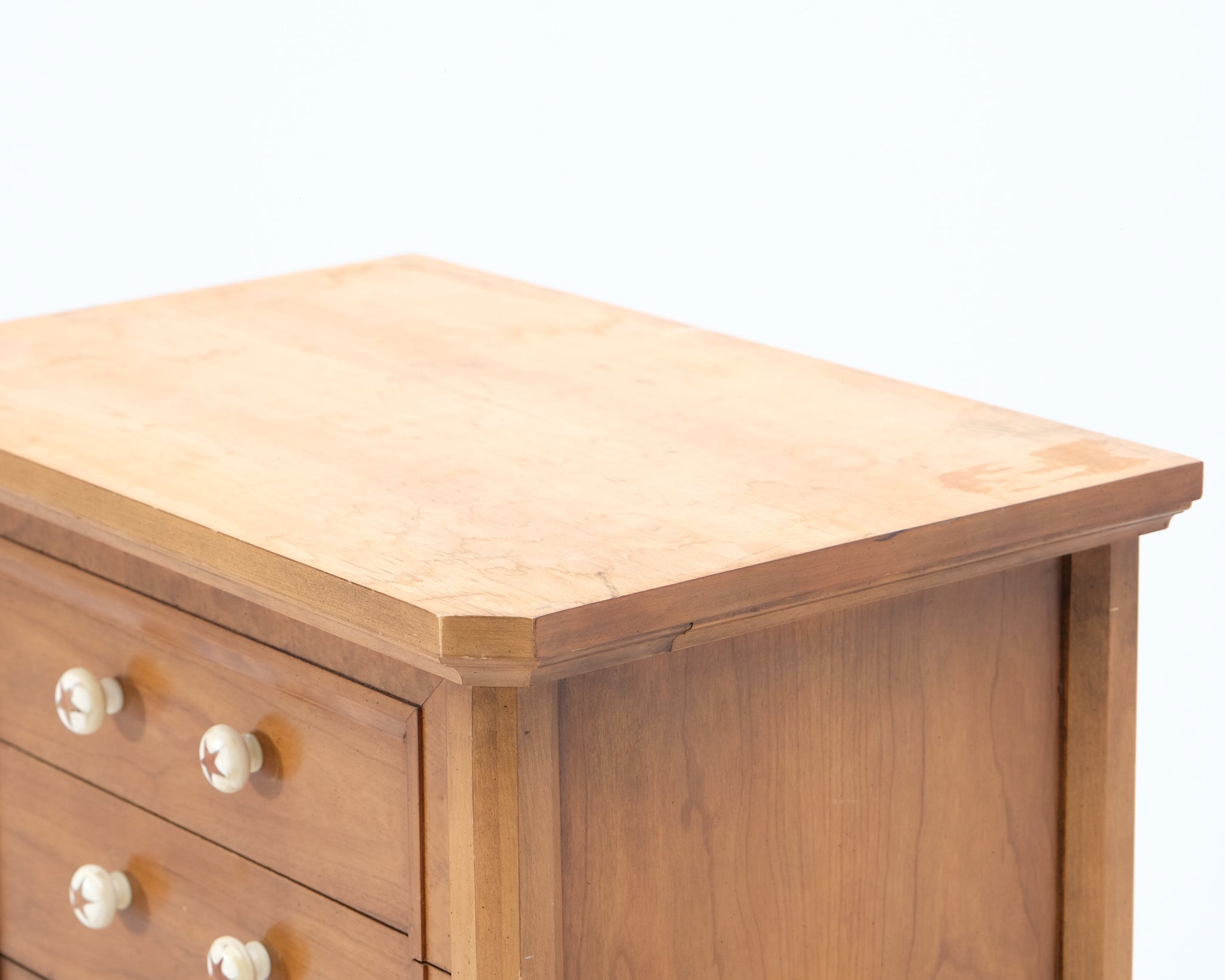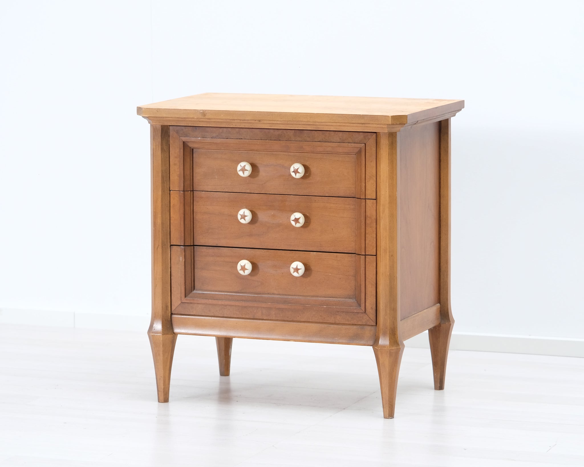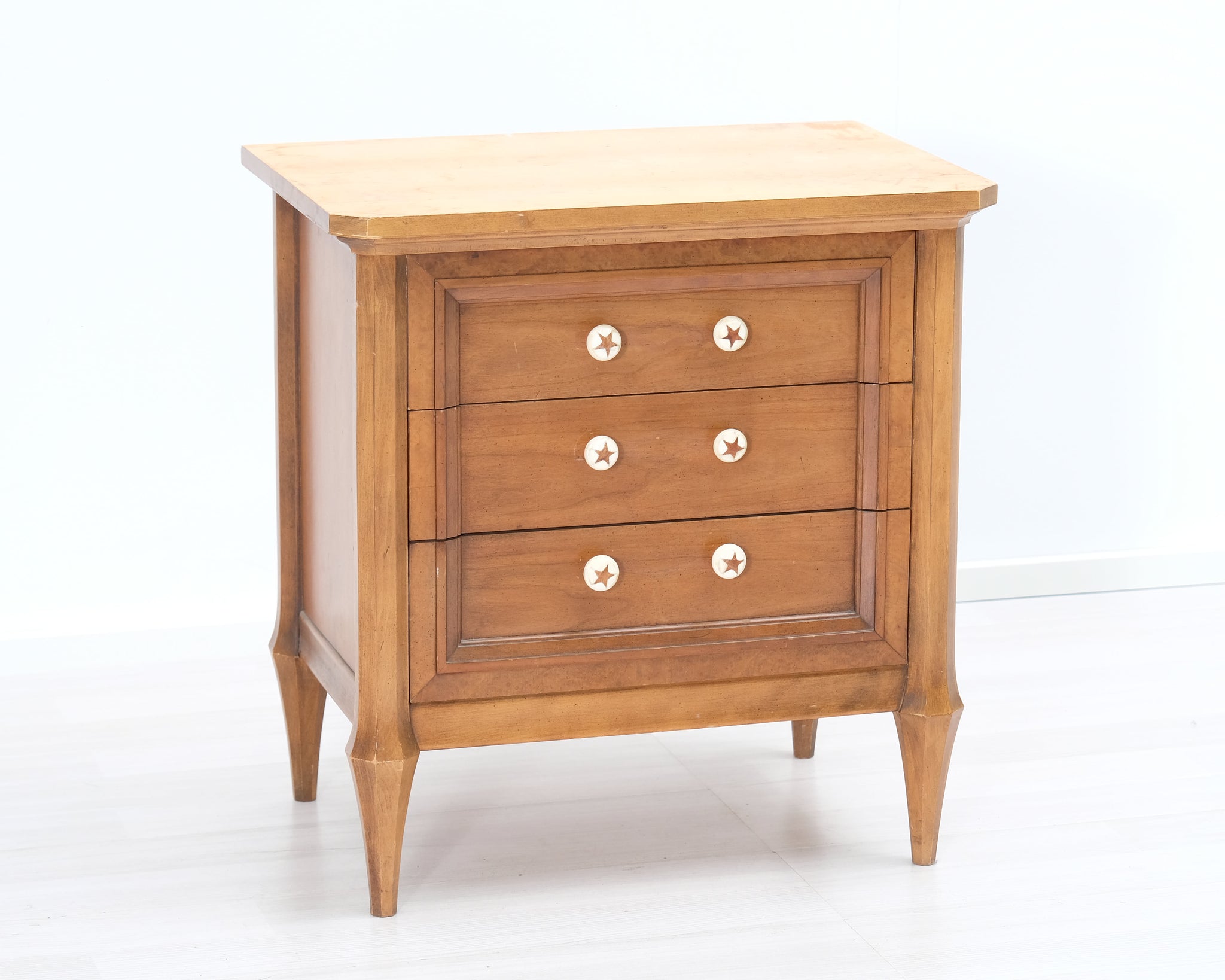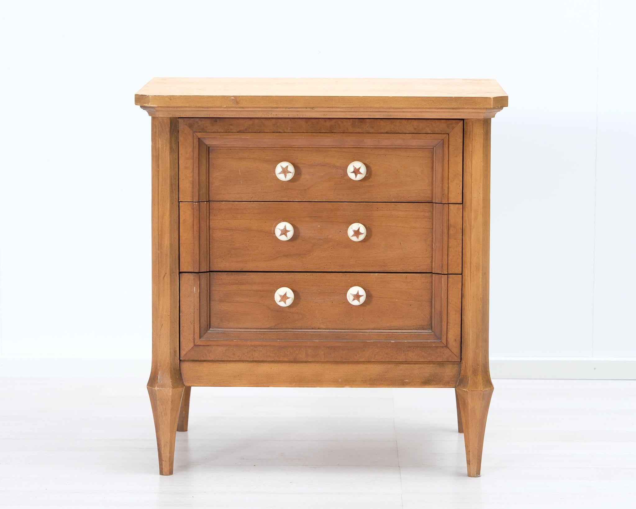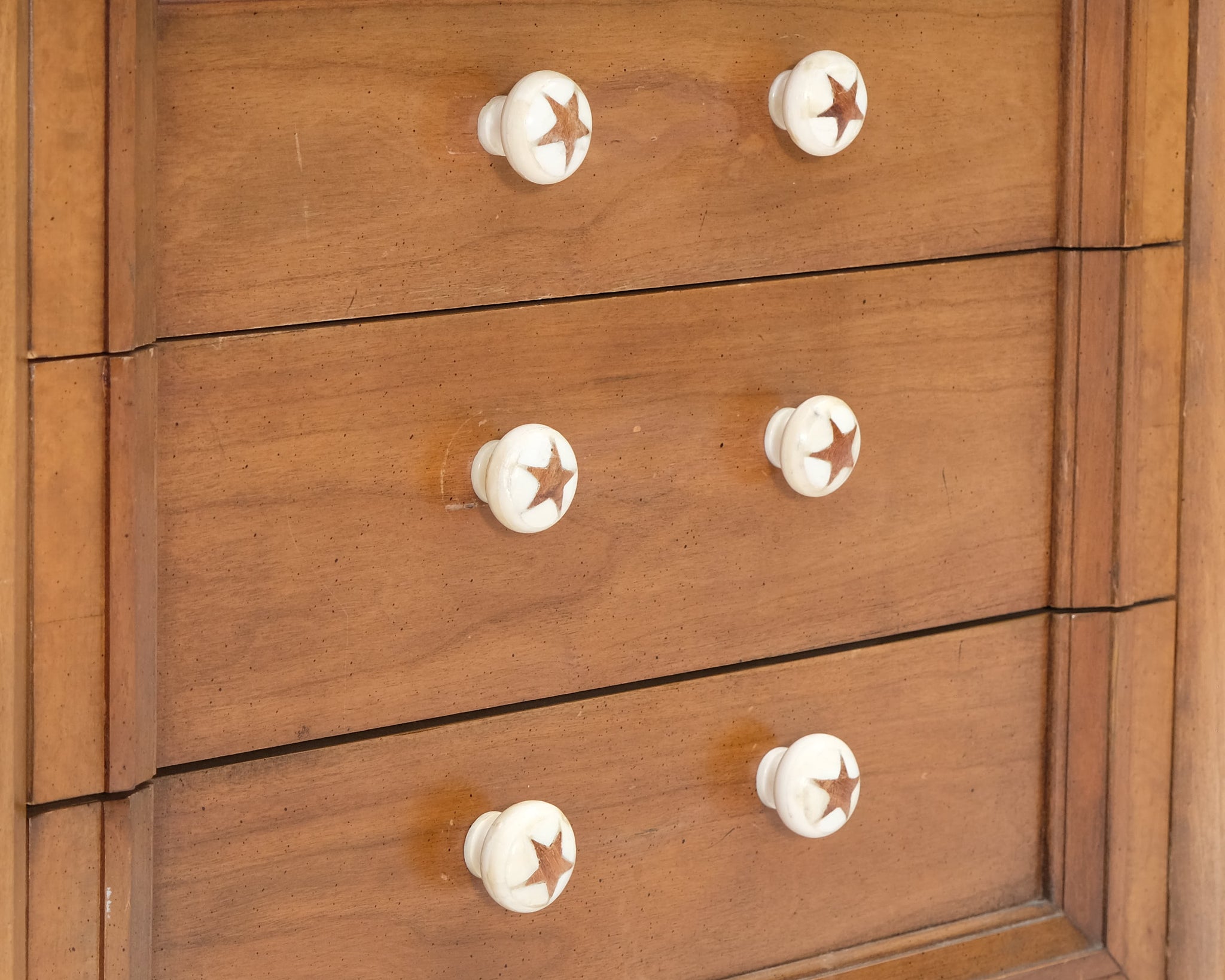 Tämän lipaston tekee uniikiksi sen hauskat tähtikuvioiset nupit.