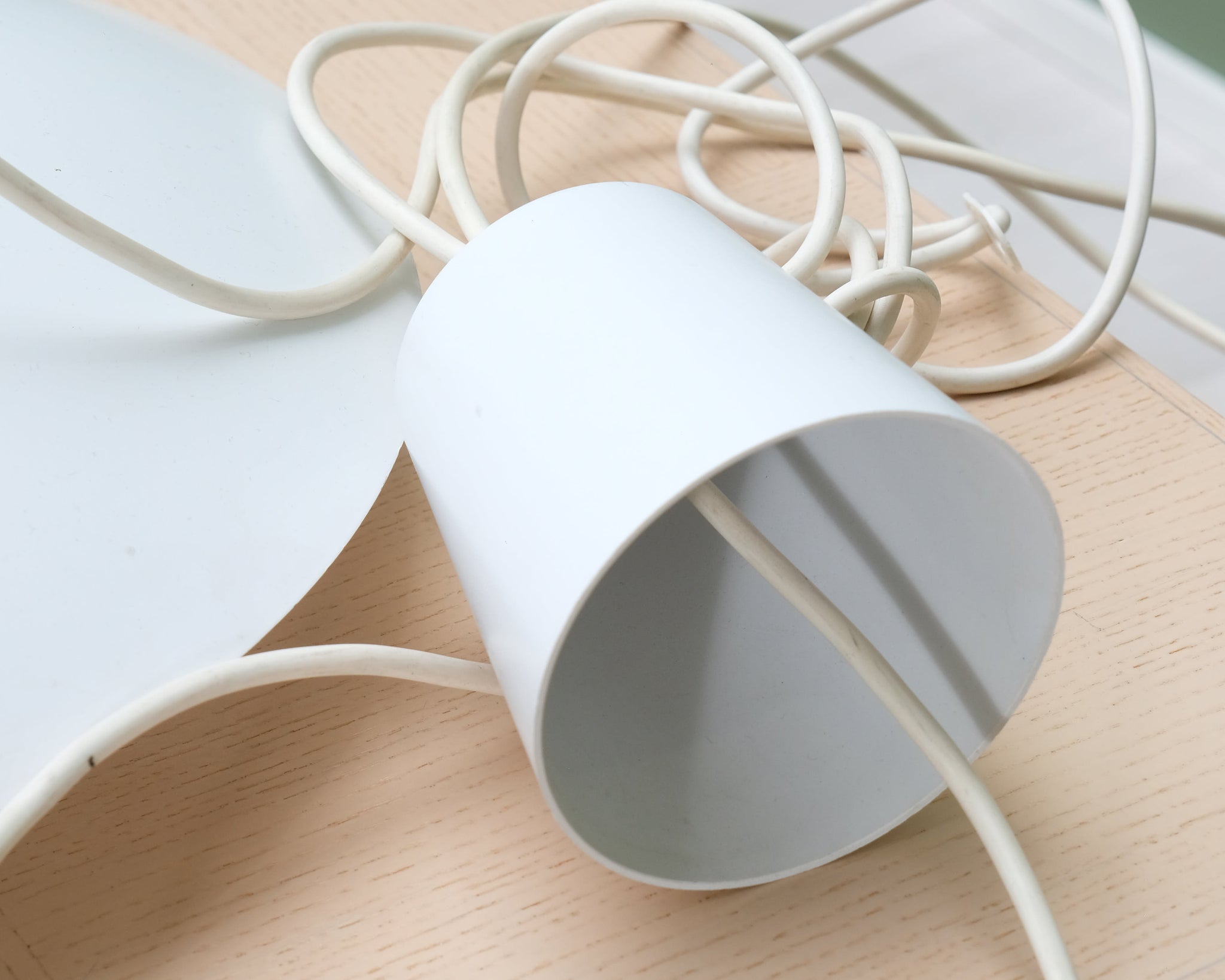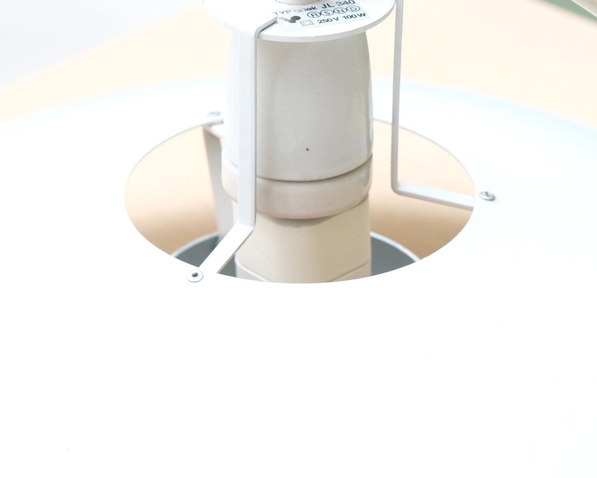 Artekin valmistama JL340-kattovalaisin. Päämateriaalina valkoiseksi maalattu alumiini. Juha Leiviskän vuonna 1968 suunnittelema.