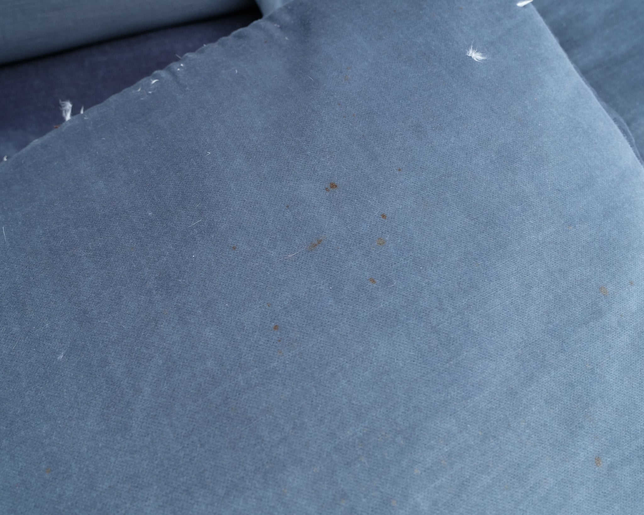 Ihastuttava vintagesohva. Kaunis vaaleansininen kangasverhoilu ja koristenapit. Valmistettu 1940-luvun lopussa.