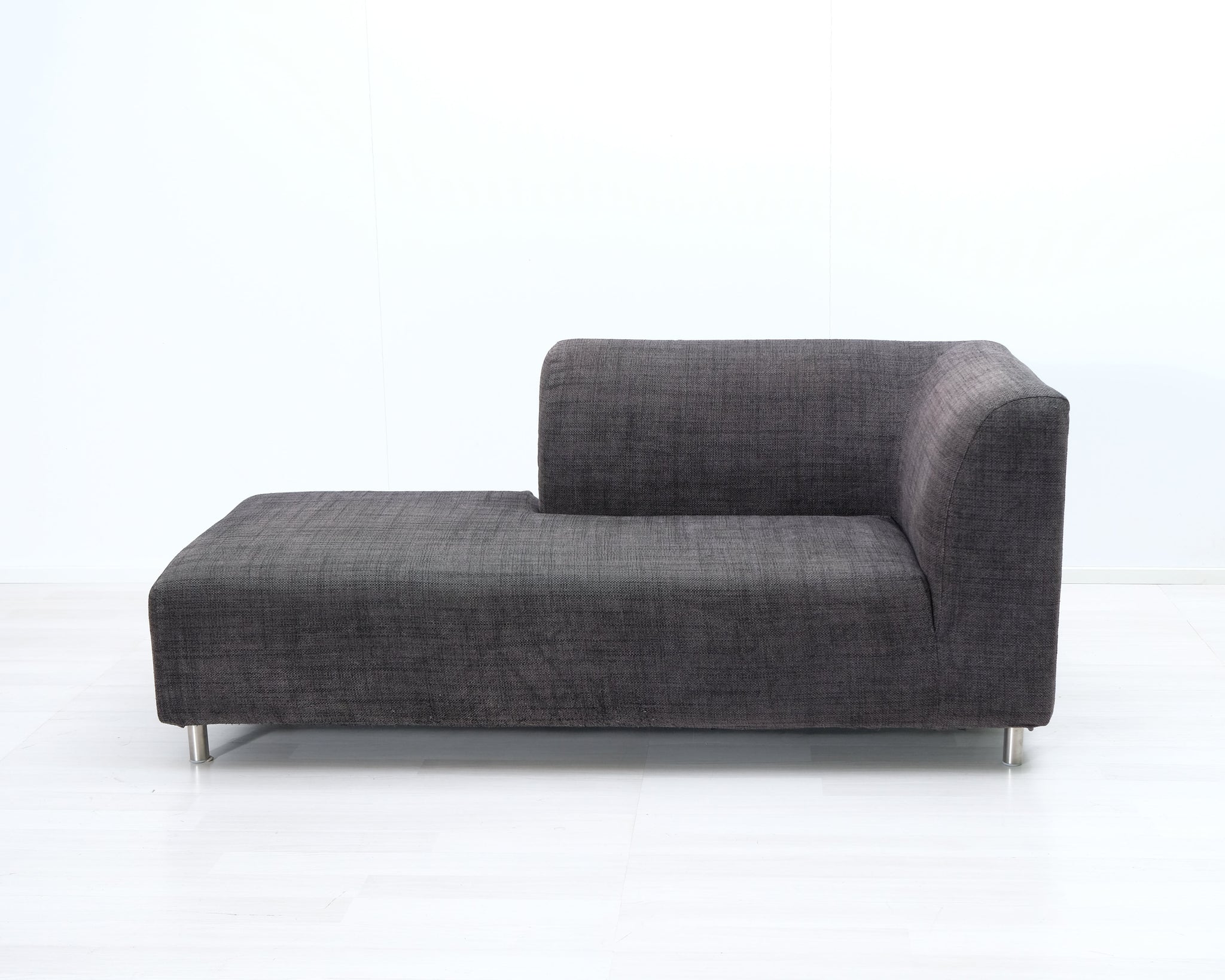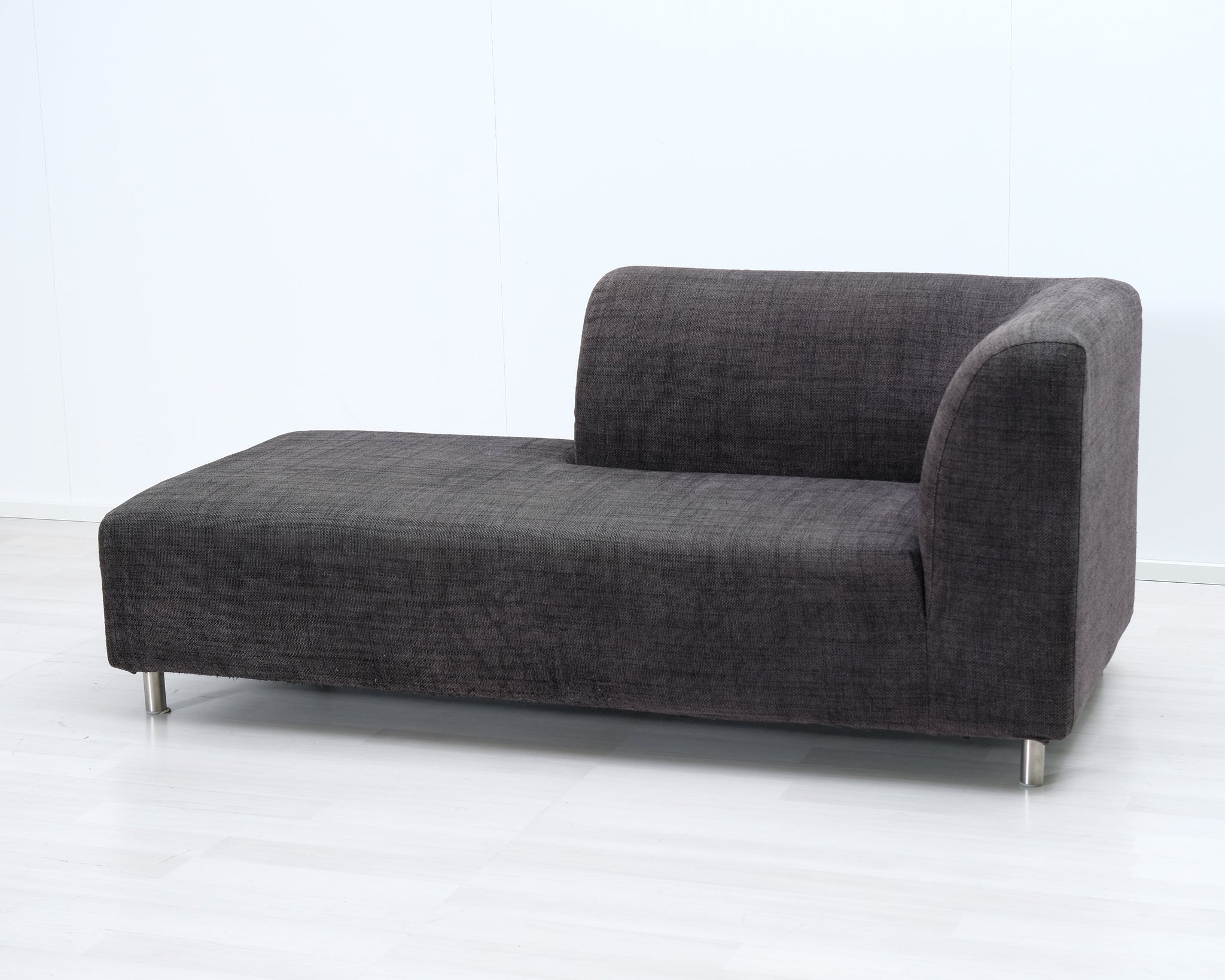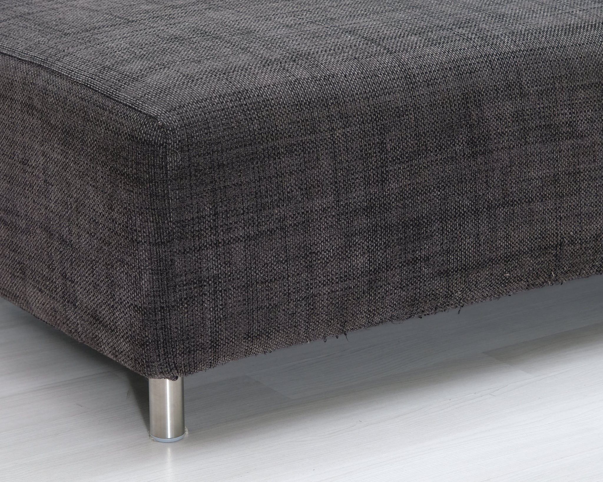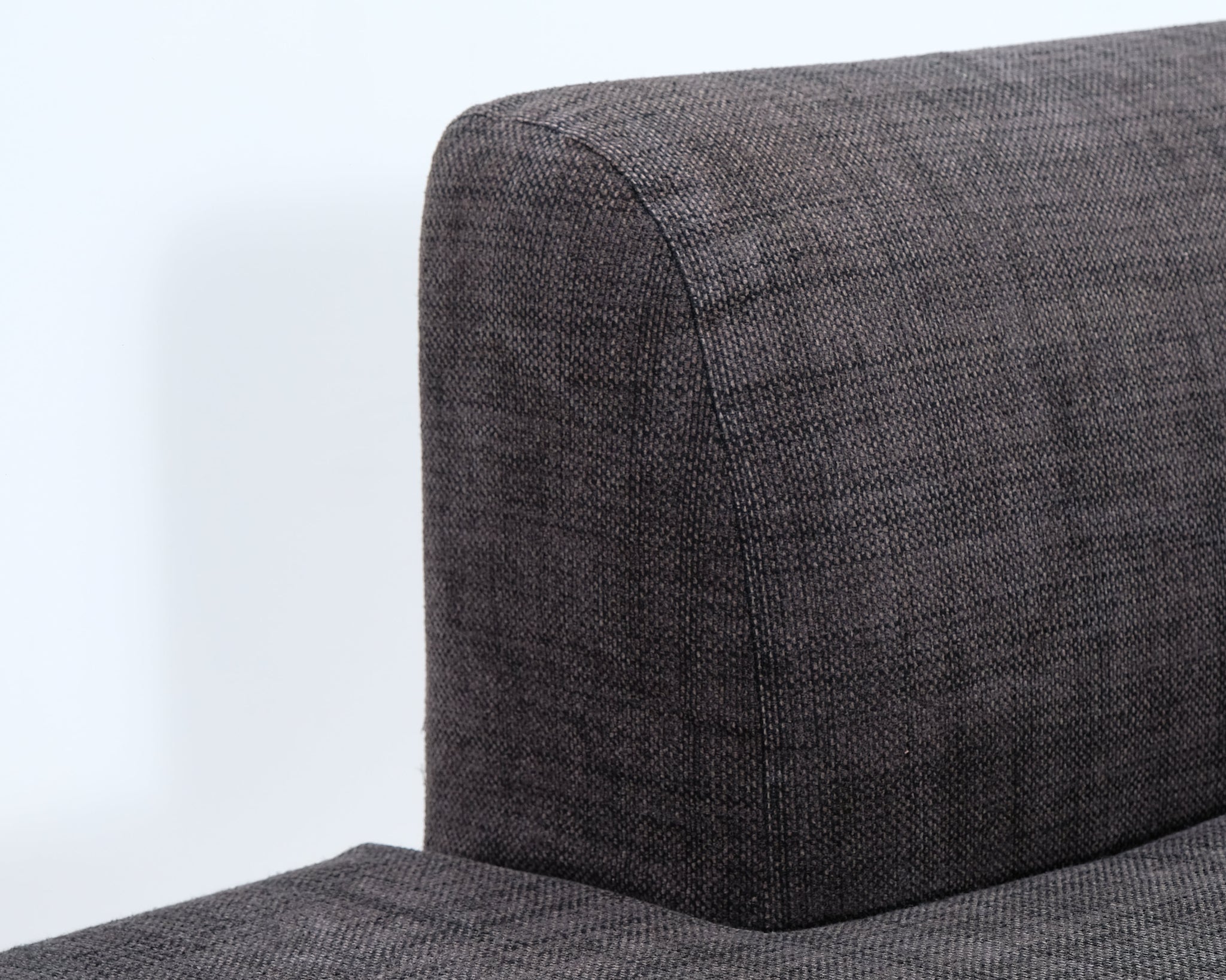 Tummanharmaa Camp-divaani merkiltä Adea. Ostettu Vepsäläiseltä. Kangasverhoilu, metalliset jalat.