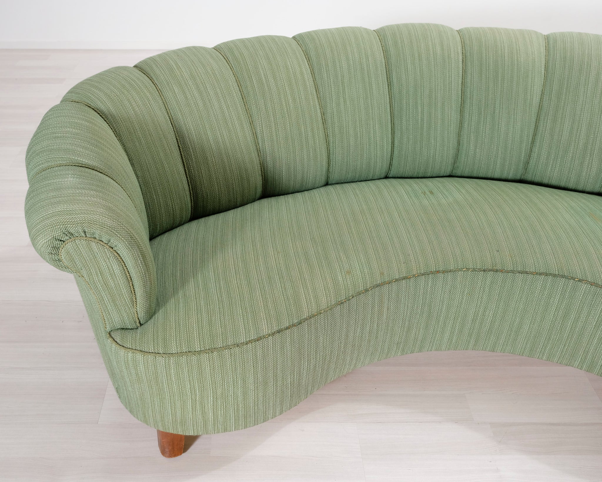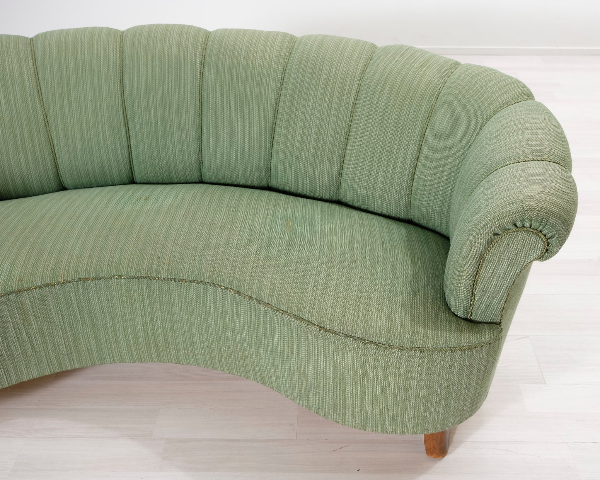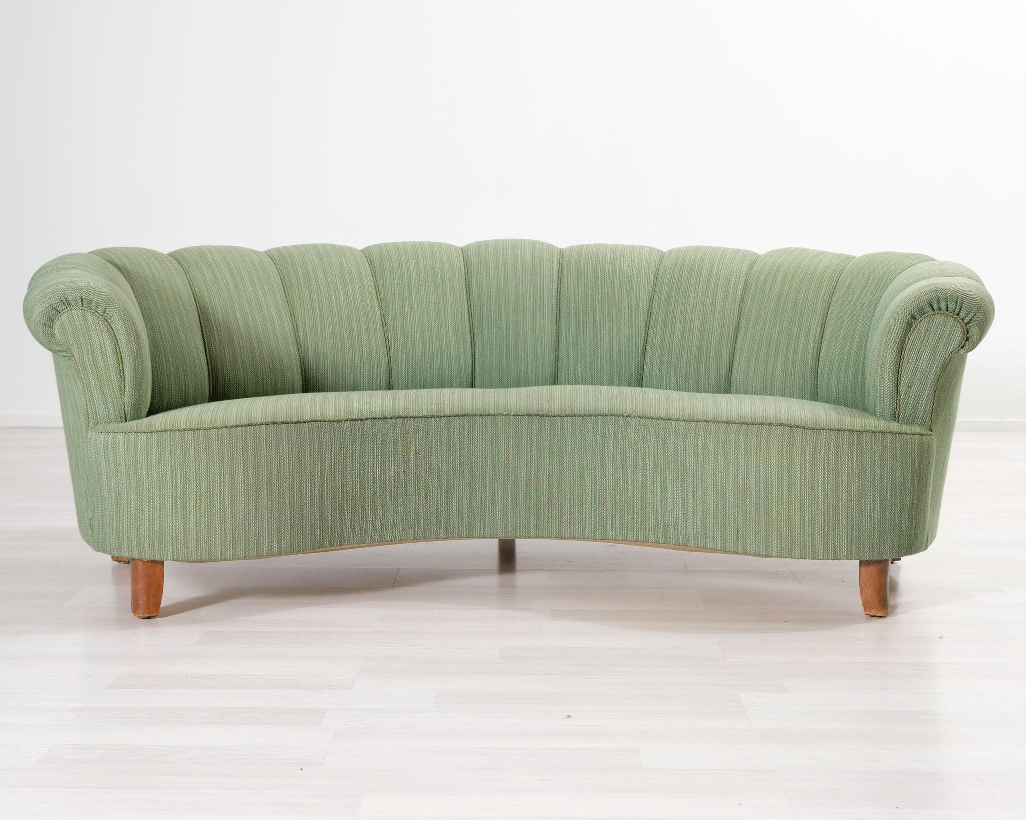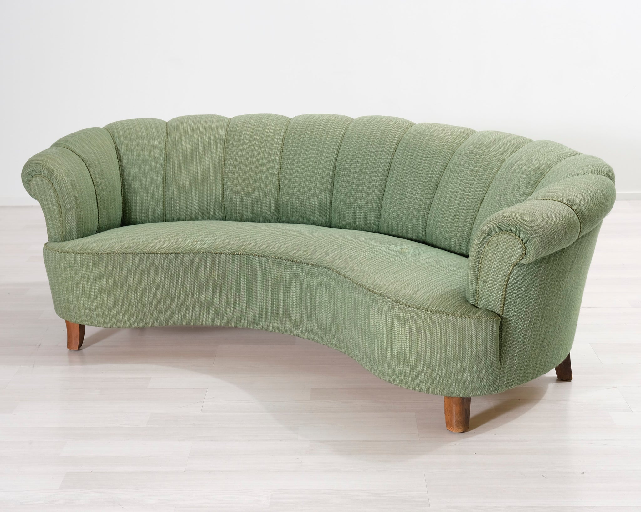 Upea simpukkasohva 1940-luvulta. Kaareva runko ja selkänojan persoonallinen muoto tekevät sohvasta todellisen katseenvangitsijan. Kokonaan verhoiltu vaaleanvihreällä kankaalla. Mahdollisesti Otto Schultz -sohva.