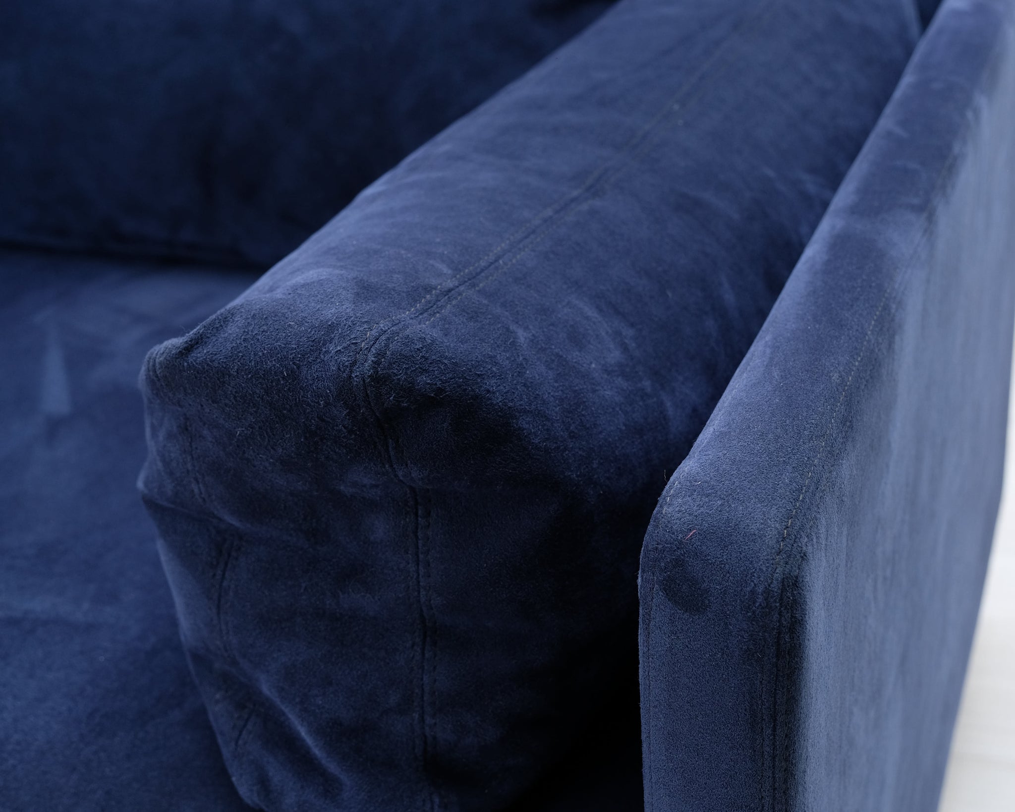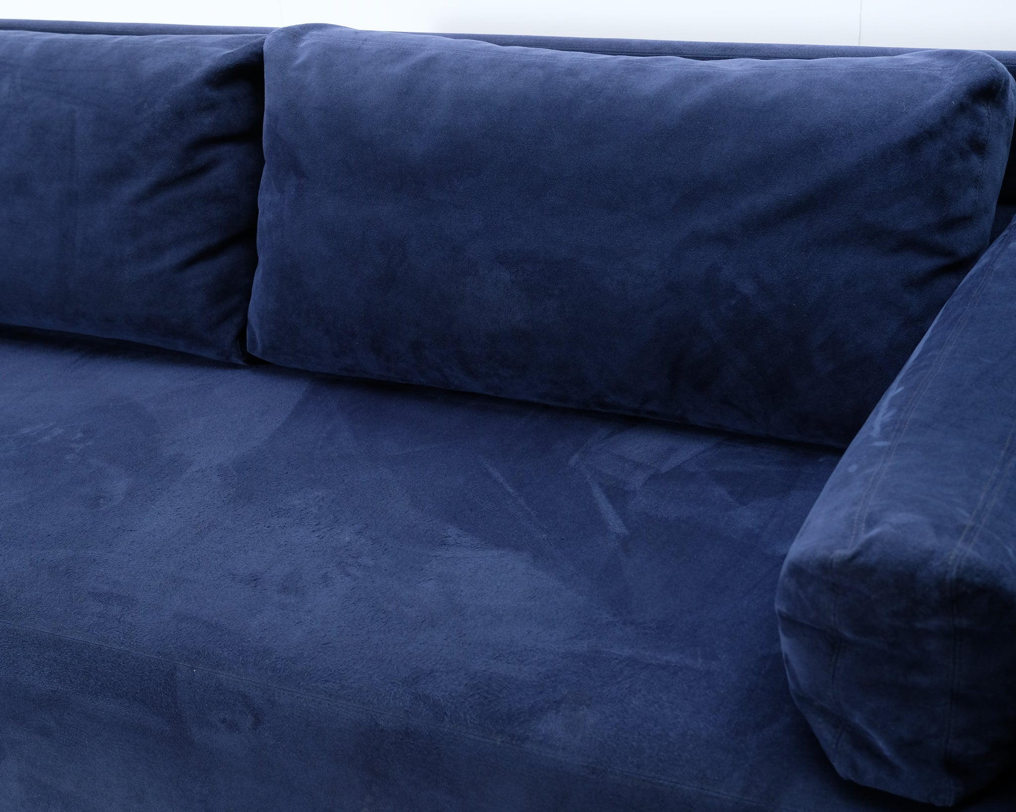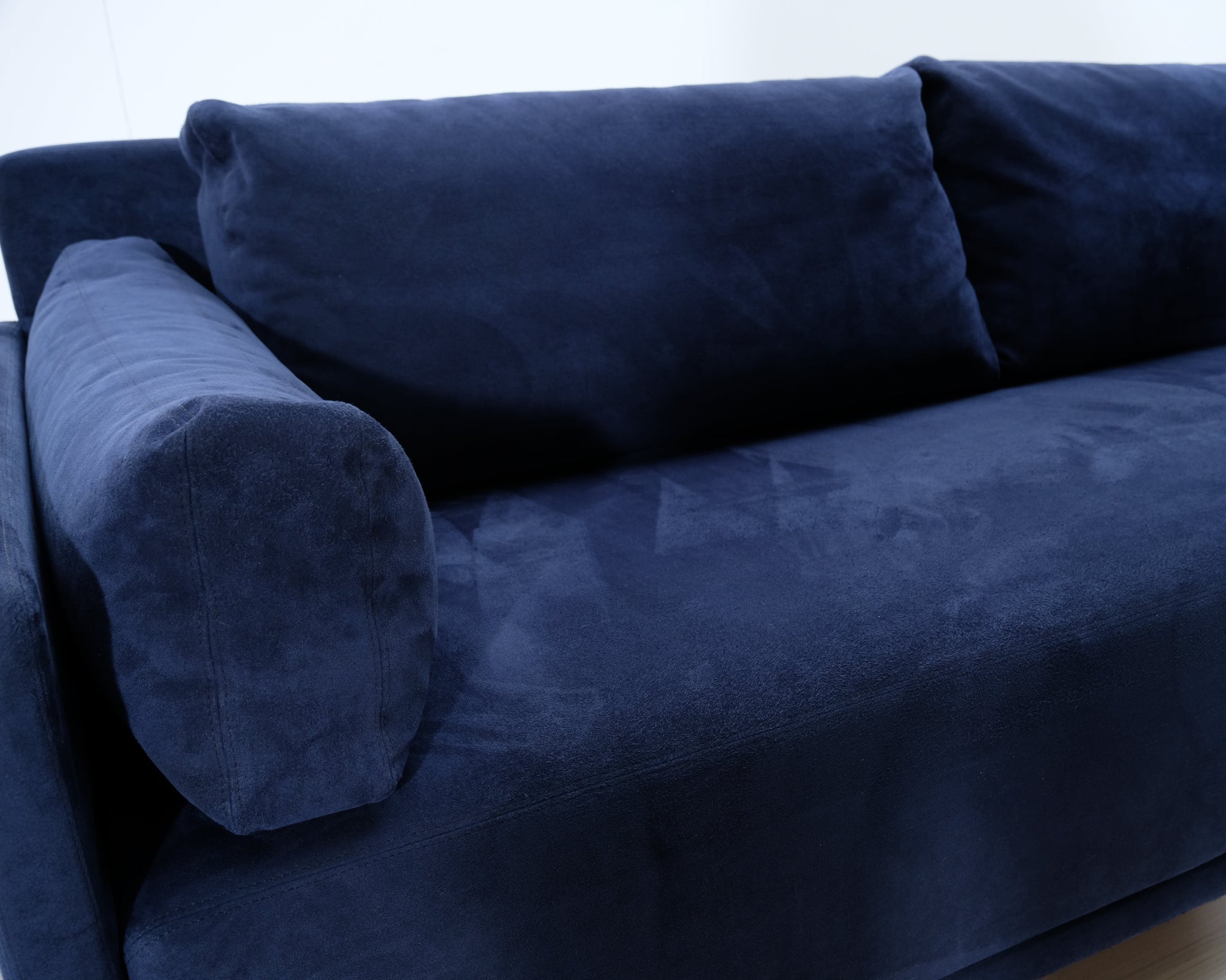Artekin 592-sohvan on suunnitellut Ben af Schulten. Tämä kyseinen yksilö on verhoiltu syvän sinisellä alcantara-kankaalla ja tyynyissä on untuvatäyte.