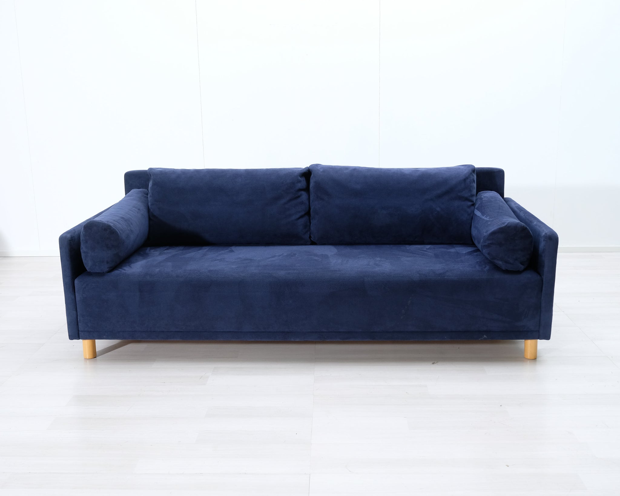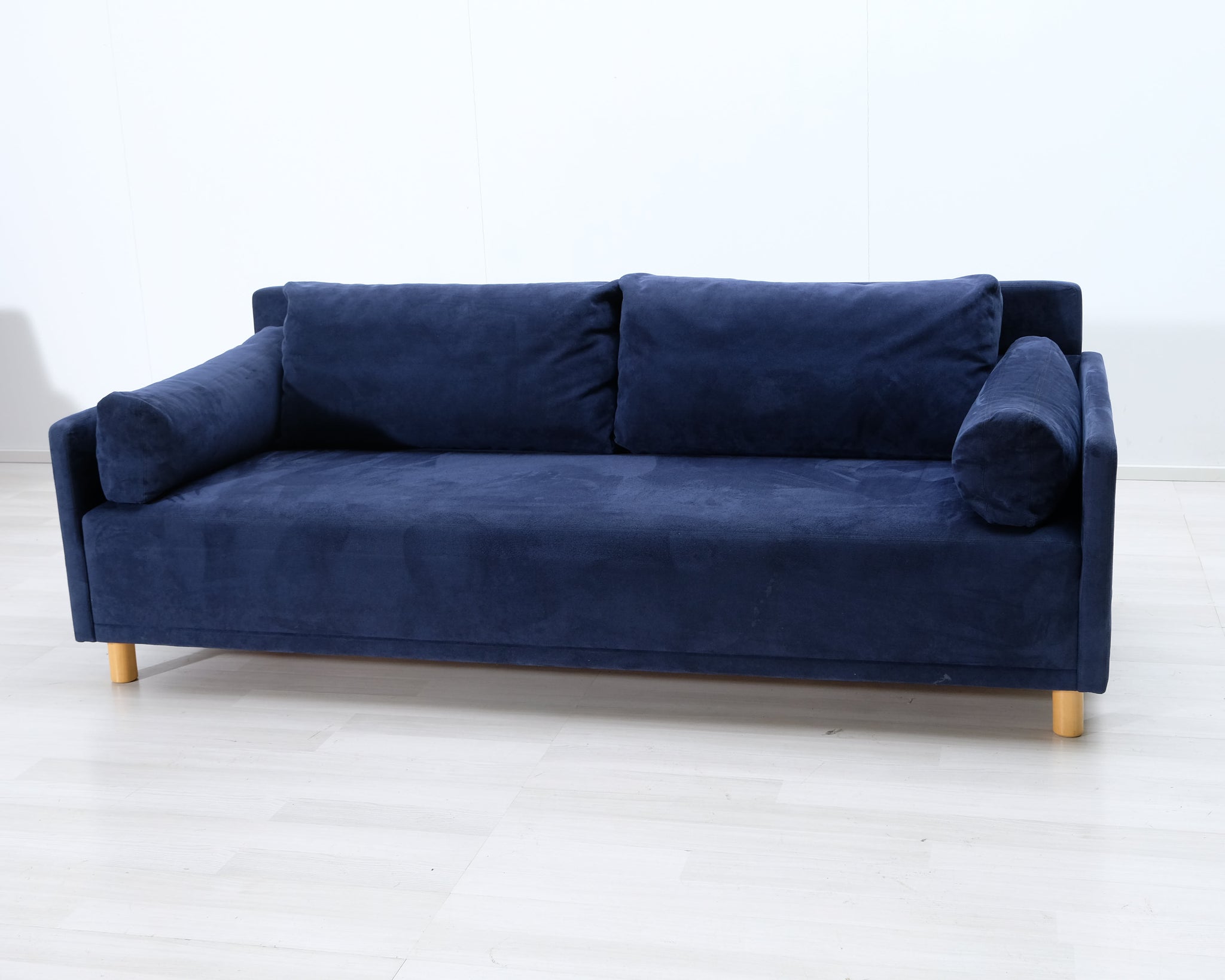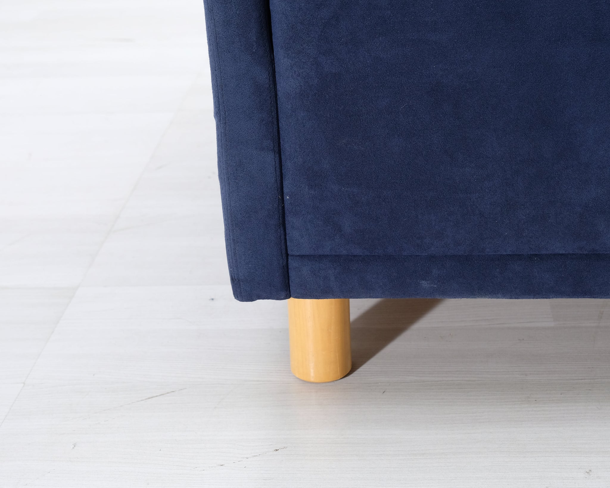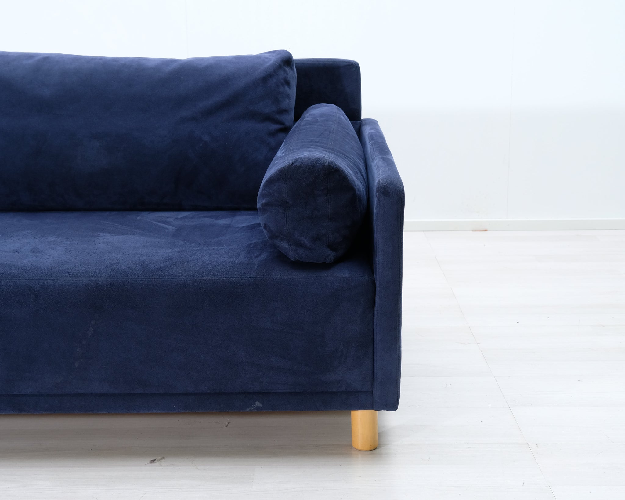 Artekin 592-sohvan on suunnitellut Ben af Schulten. Tämä kyseinen yksilö on verhoiltu syvän sinisellä alcantara-kankaalla ja tyynyissä on untuvatäyte.