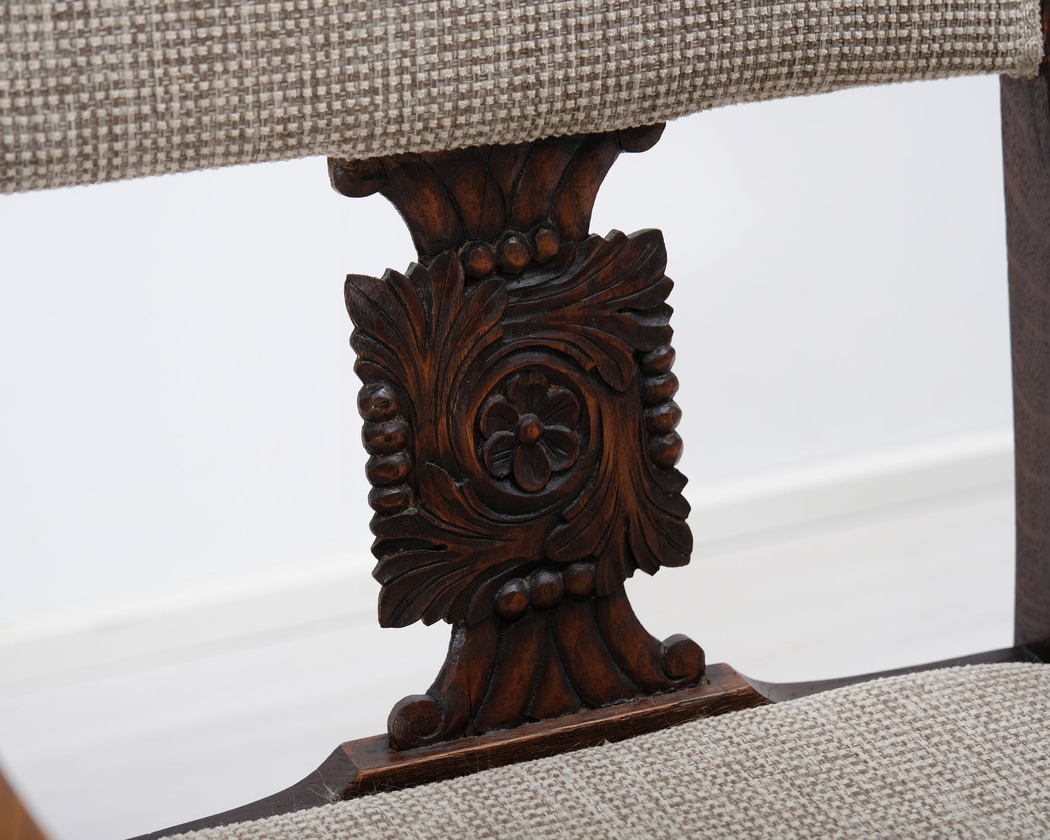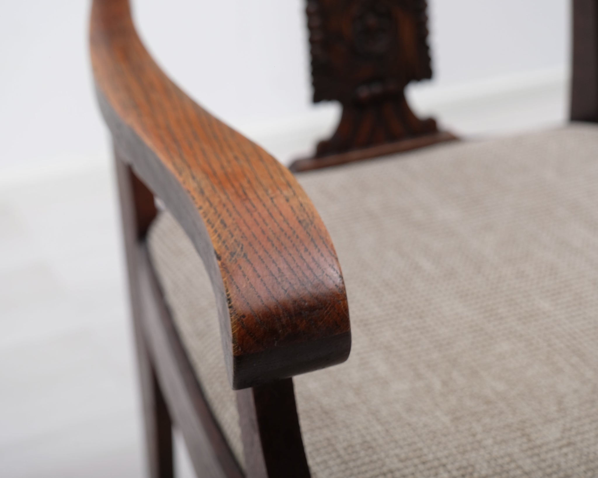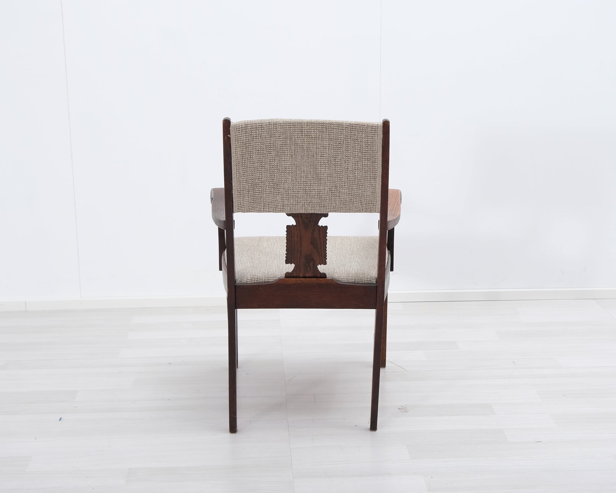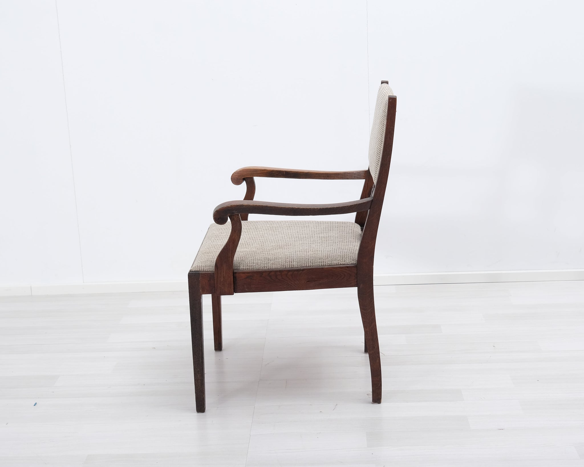 Upeilla yksityiskohdilla varusteltu kangasverhoiltu tuoli. Kalusto 40-luvulta kokopuuta, puusepän käsin rakentama, tukevaa tekoa. Entisöity ja kangasverhoilu vaihdettu 2-vuotta sitten. Uniikkikappale.