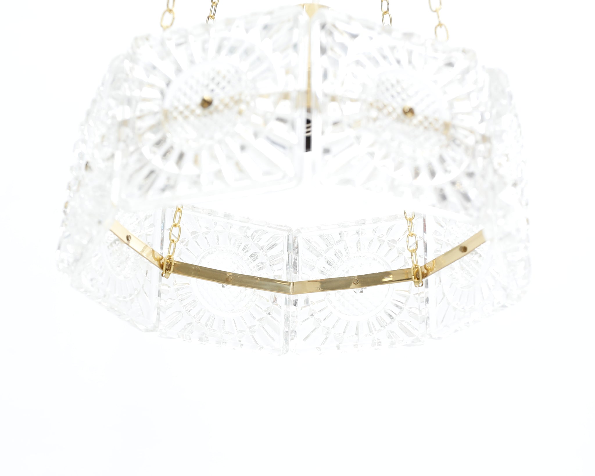 Upea Aris-valaisin. Kristallimaisia lasilevyjä, kullanväriset ketjut ja kattokupu. Arviolta 60- lukua. Toimivuus ei testattu.