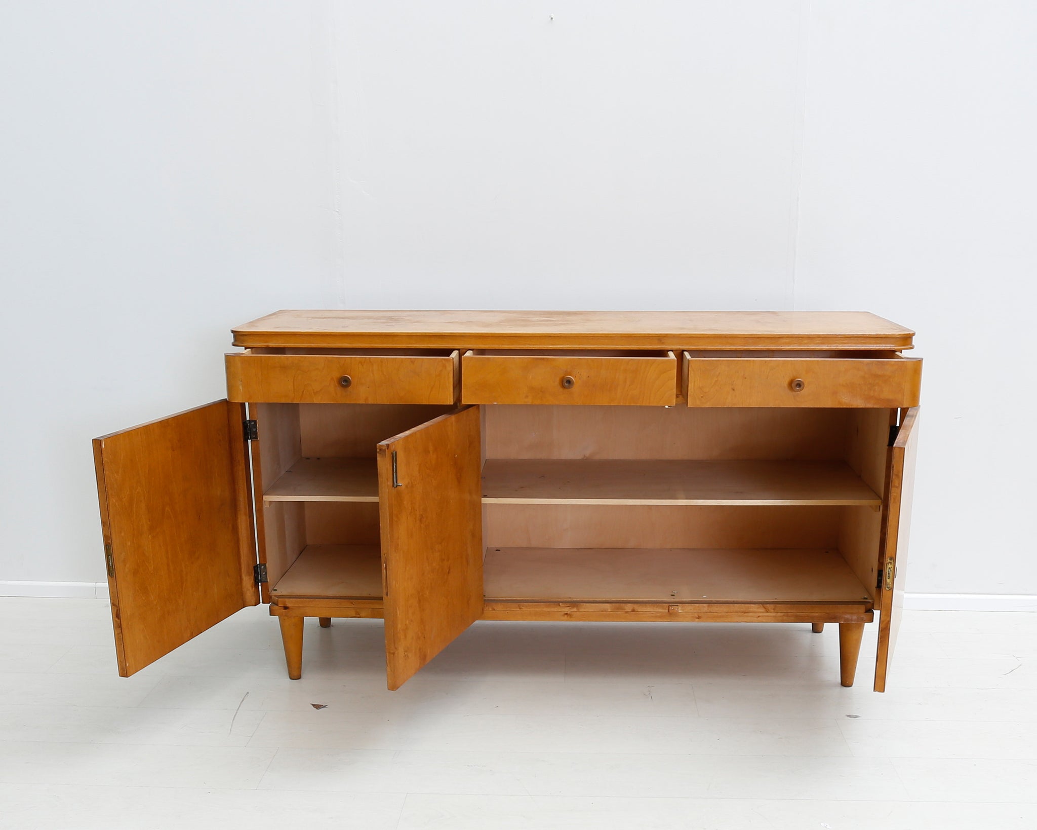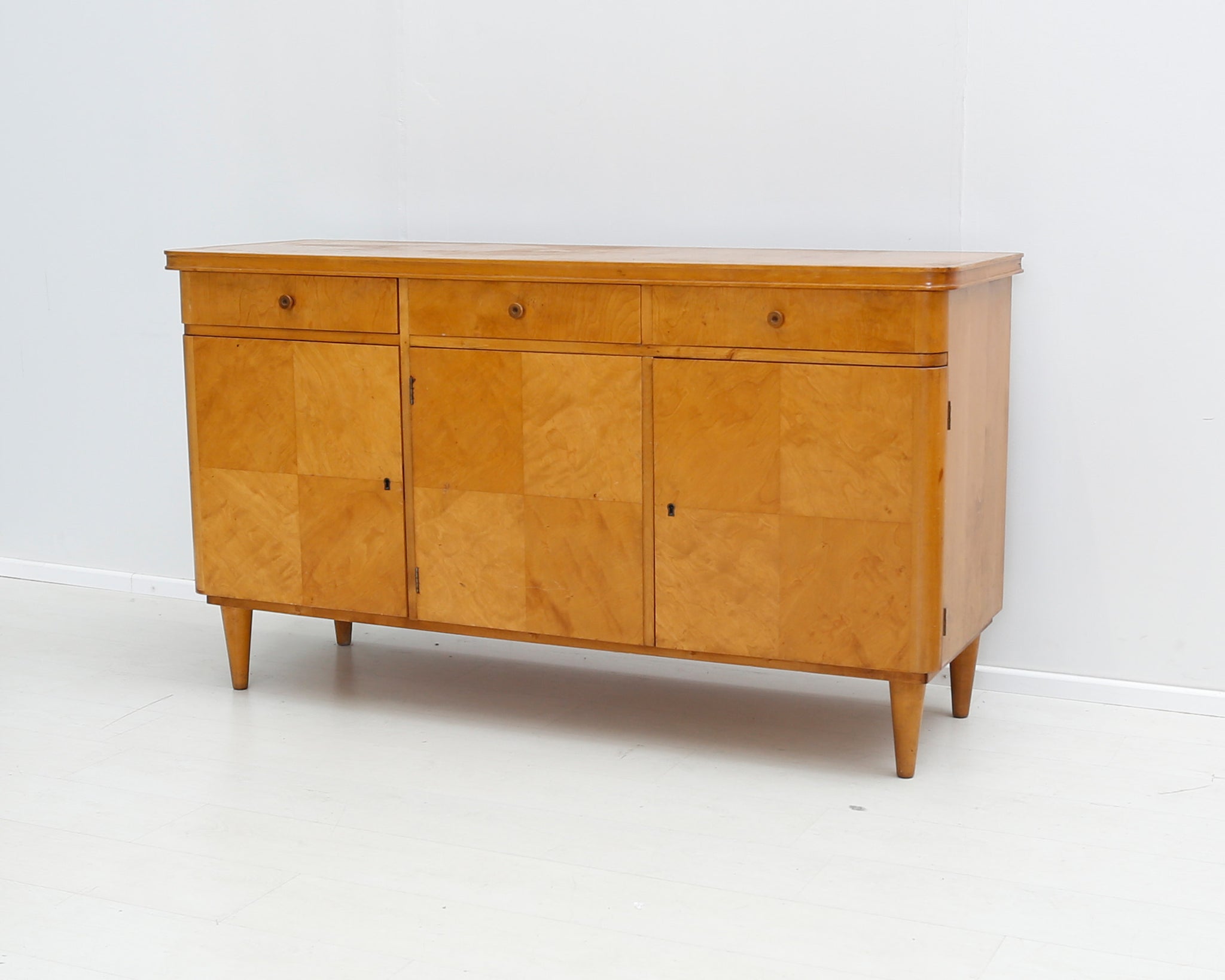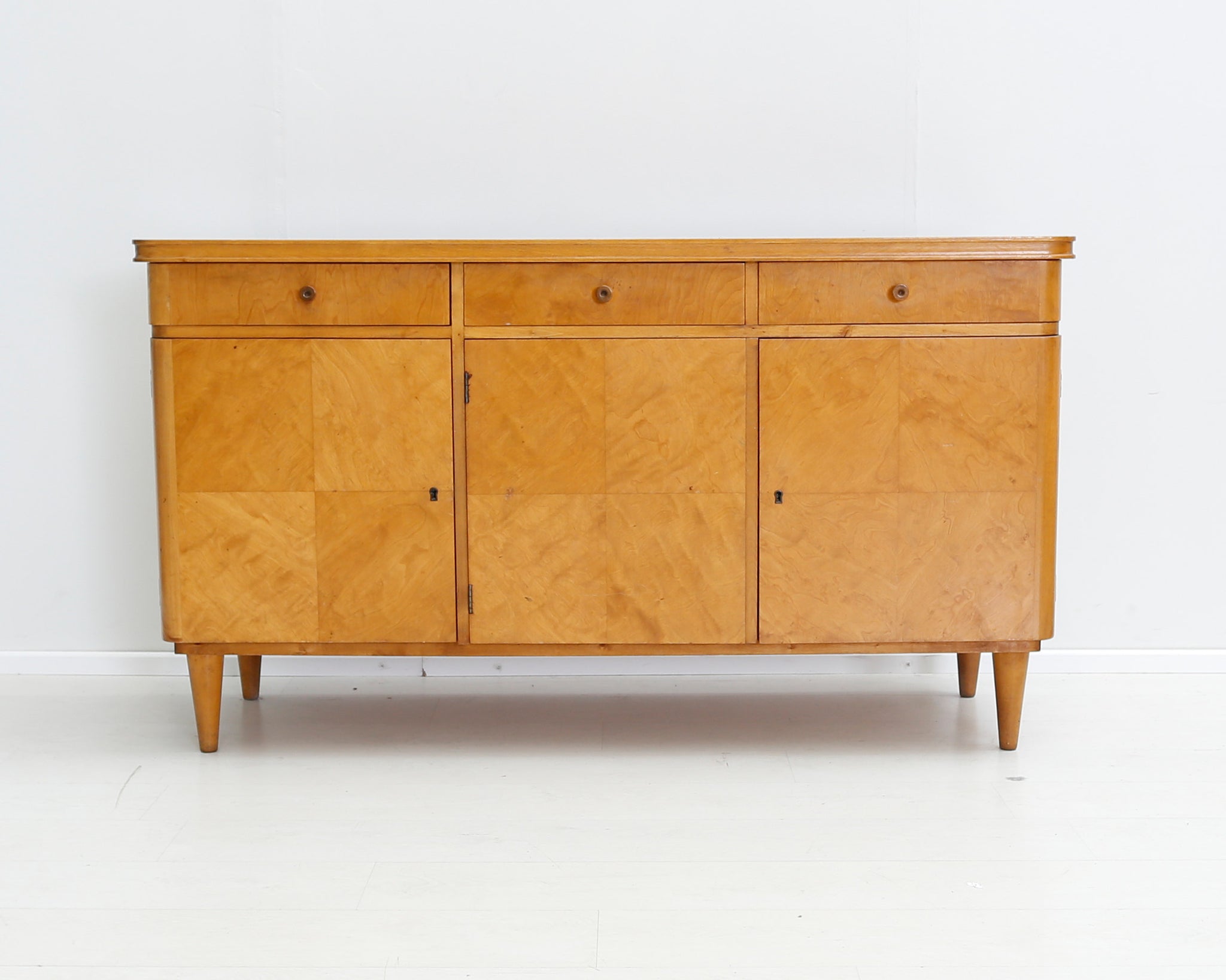 Arviolta 40-luvun puinen senkki, jonka ovissa kauniit yksityiskohdat. Vanhat senkit ovat viime vuosina olleet suosiossa, sillä ne näyttävät ajattoman tyylikkäiltä yhdistettynä moderniin sisustukseen.