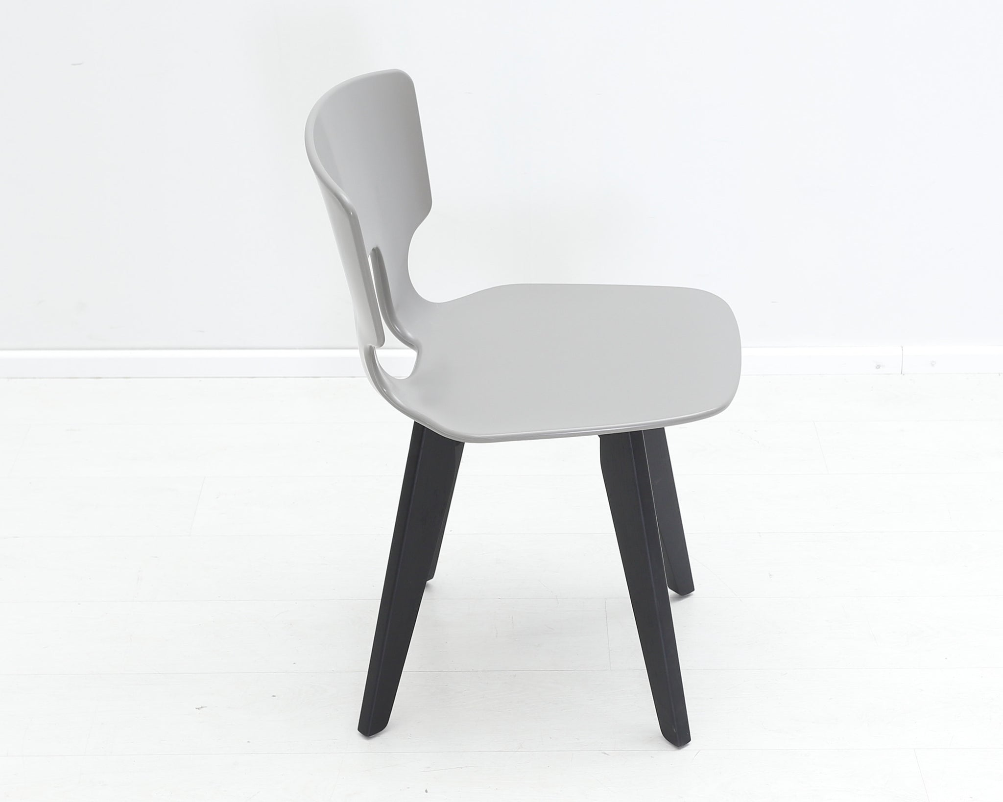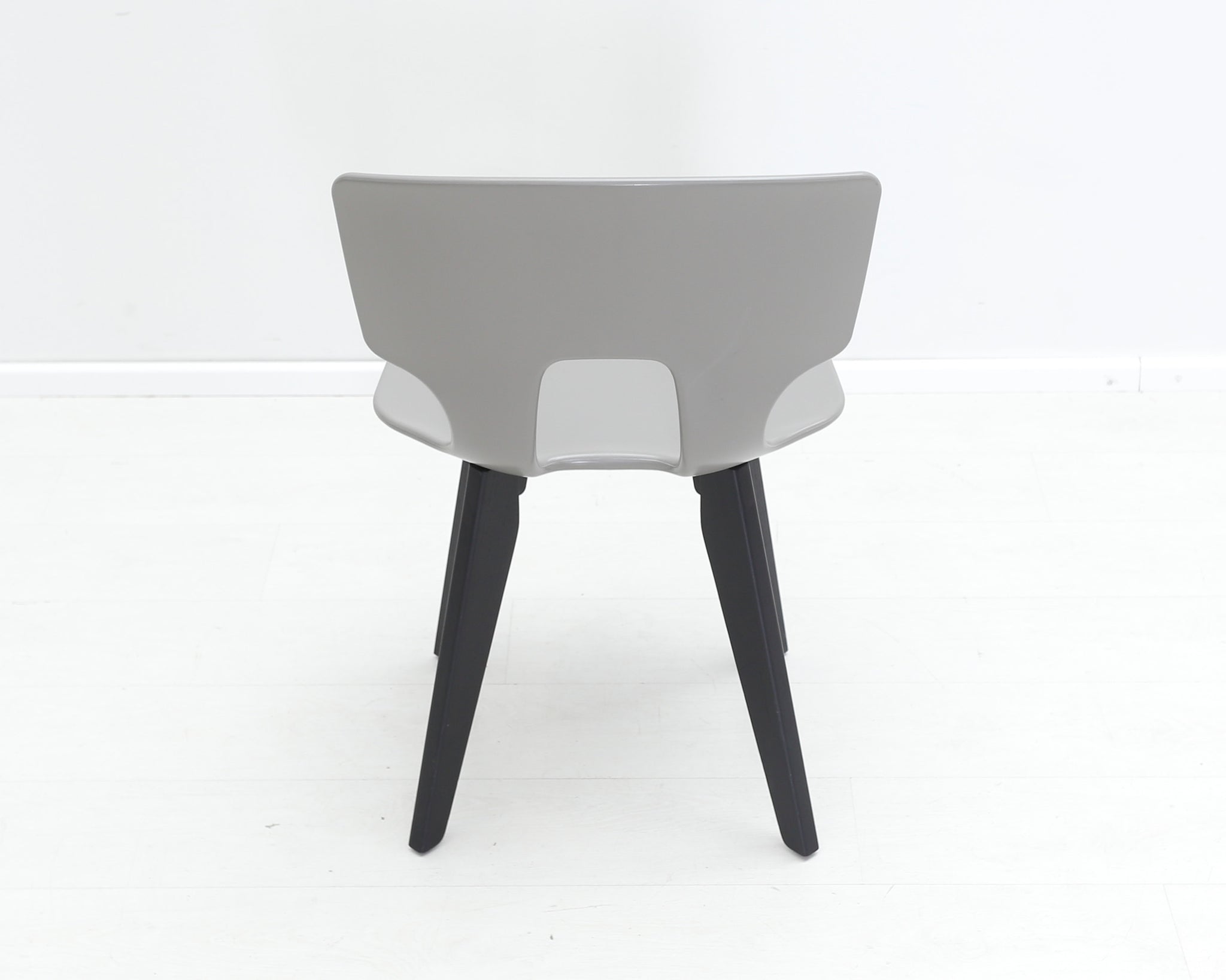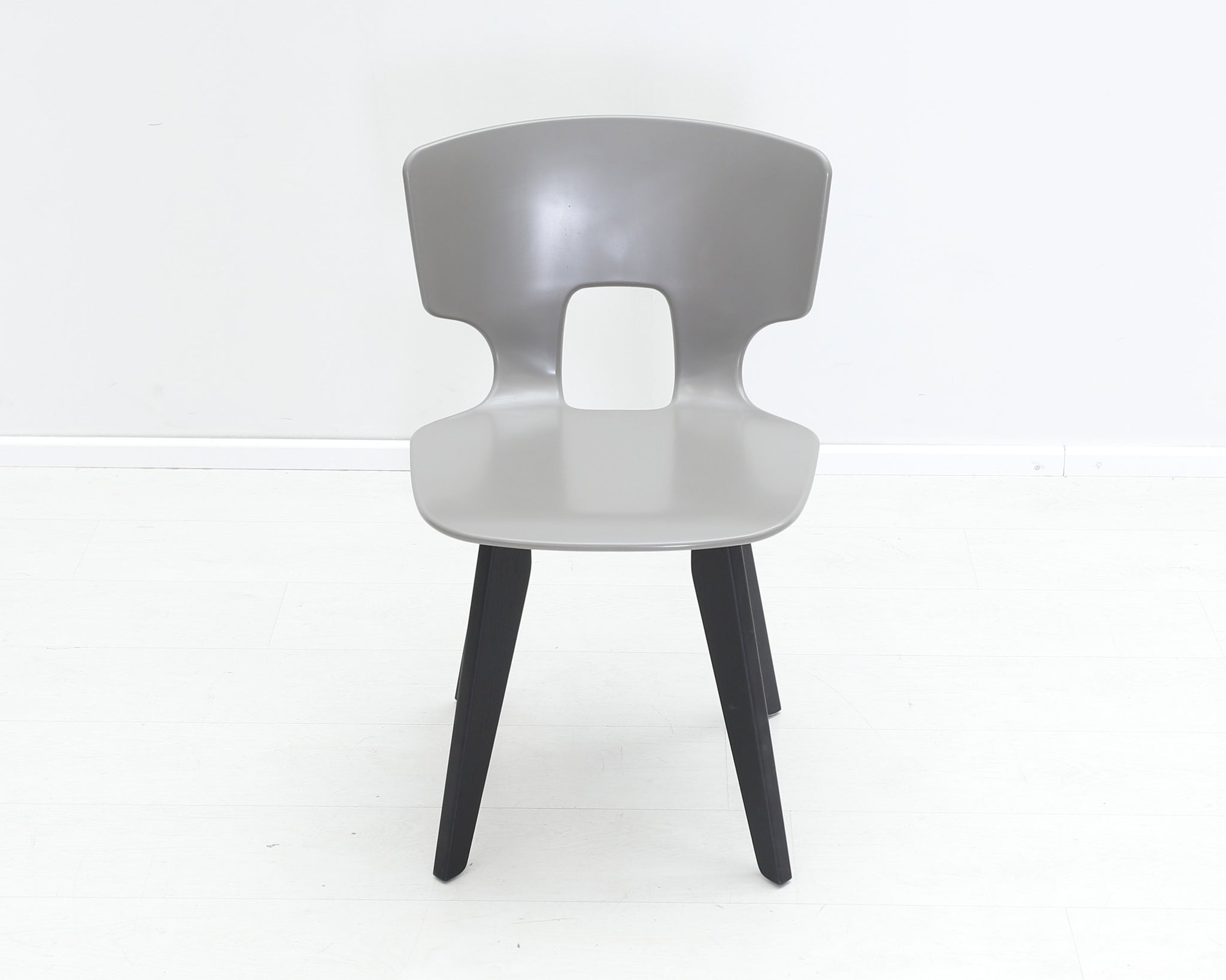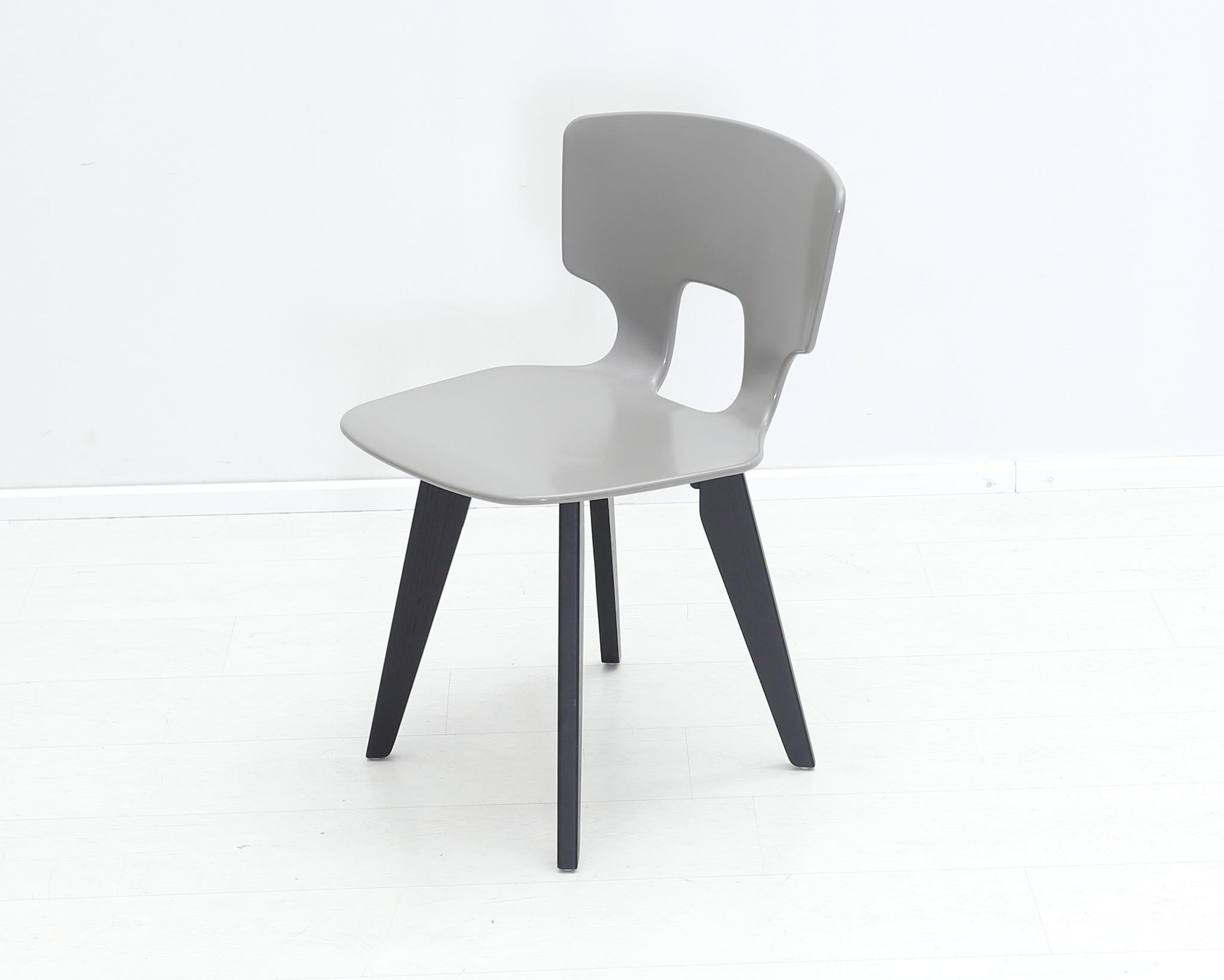 Tuolille antavat luonnetta sen paksut puujalat. Ajattomasti muotoillulle tuolille on monta käyttötarkoitusta. Muovinen istuinosa.