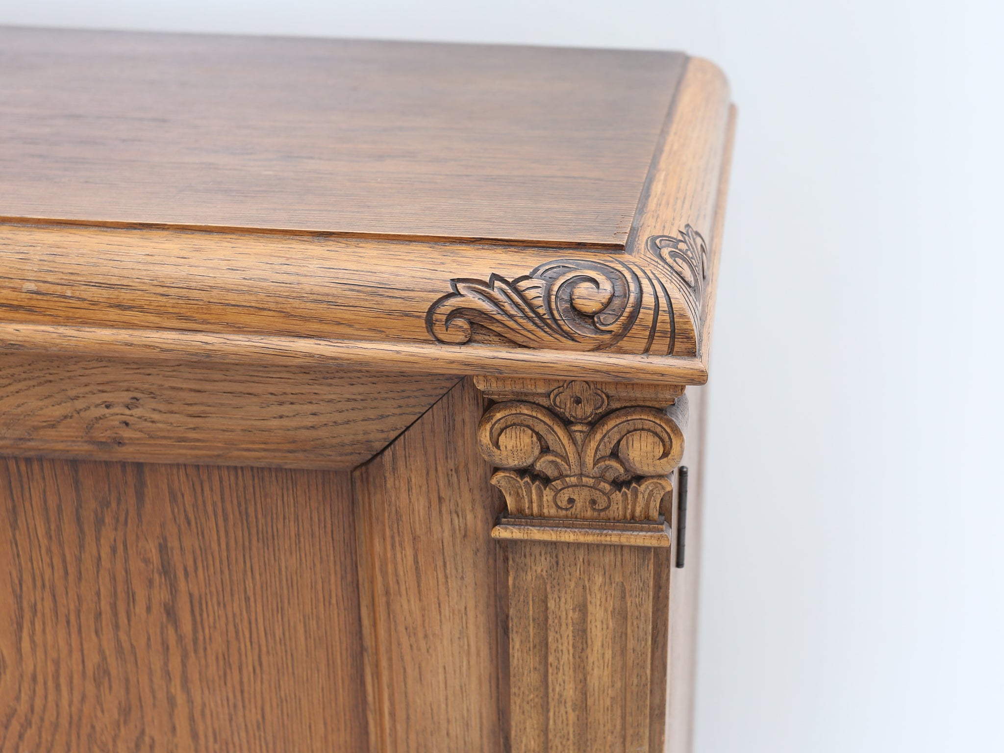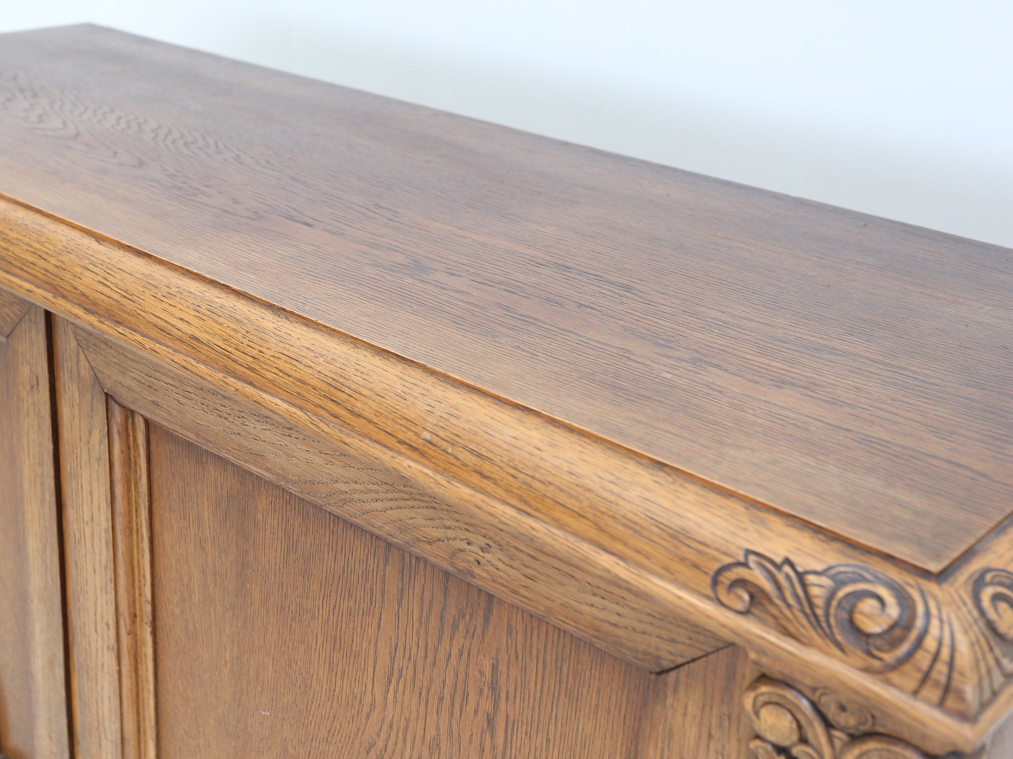 Kauniisti koristeltu kaappi. Osa kalustesarjaa, johon kuuluu senkki, [ruokapöytä](/products/9511) ja [ruokatuolit](/products/9509). Kokoa itsellesi mieluisa kokonaisuus!