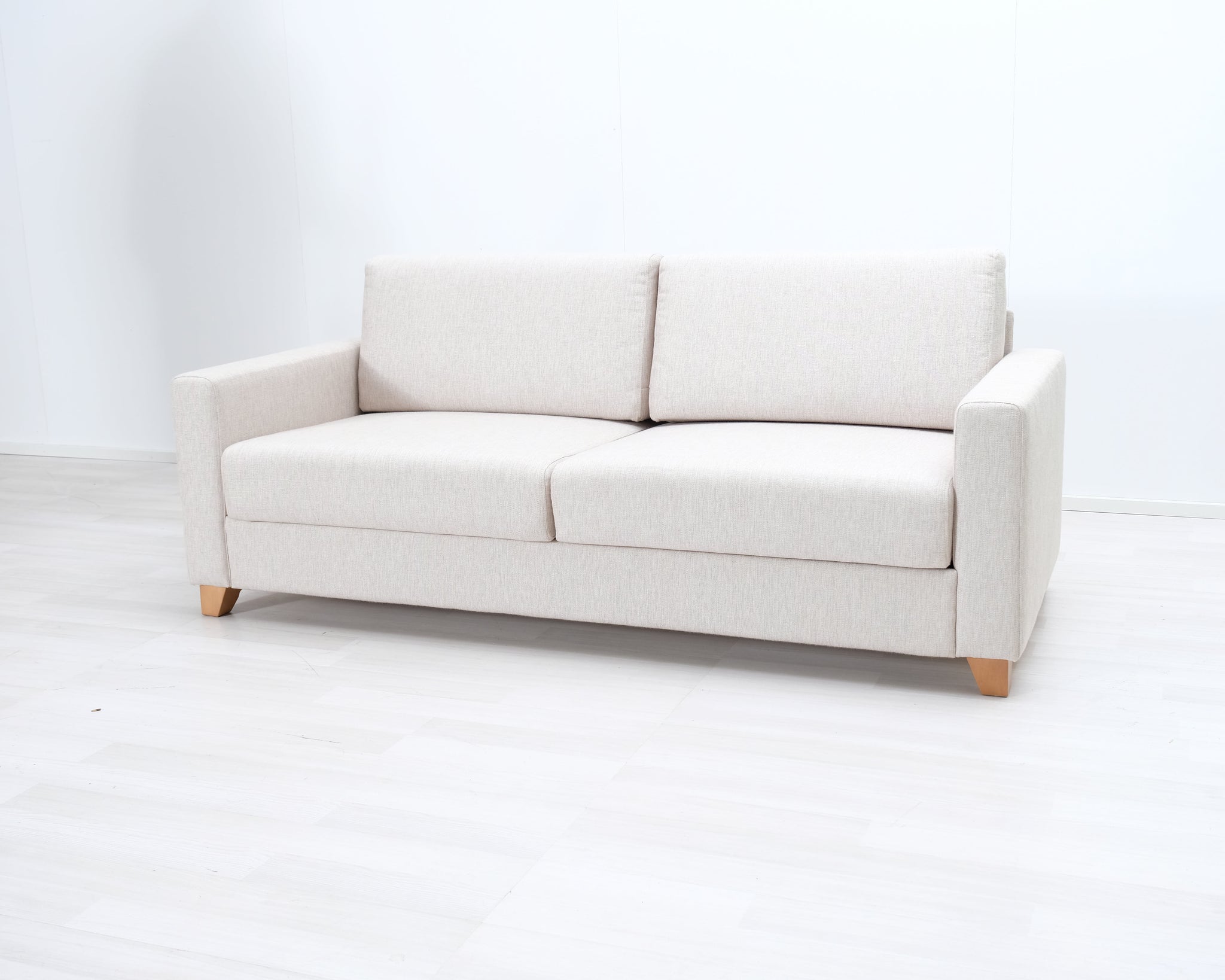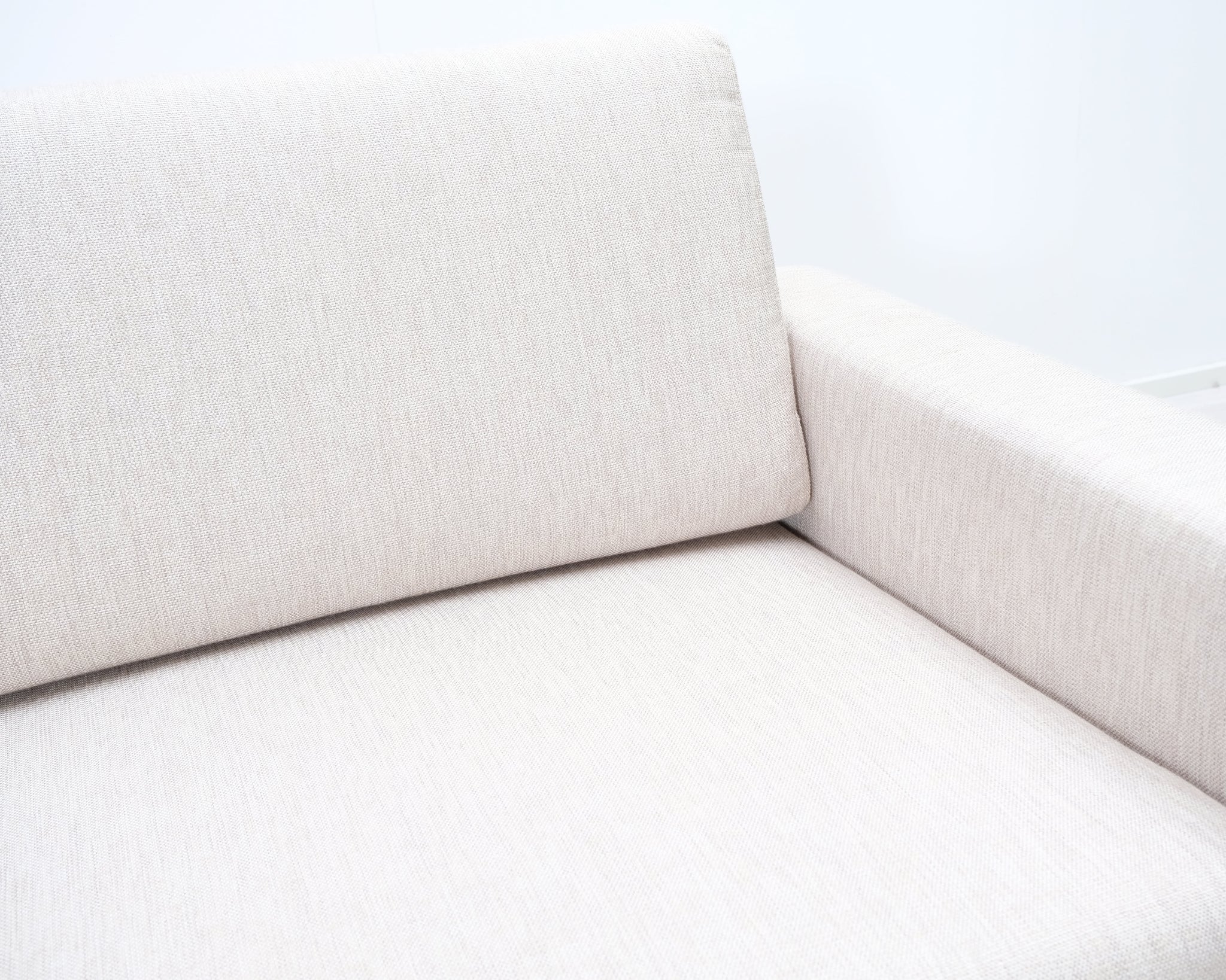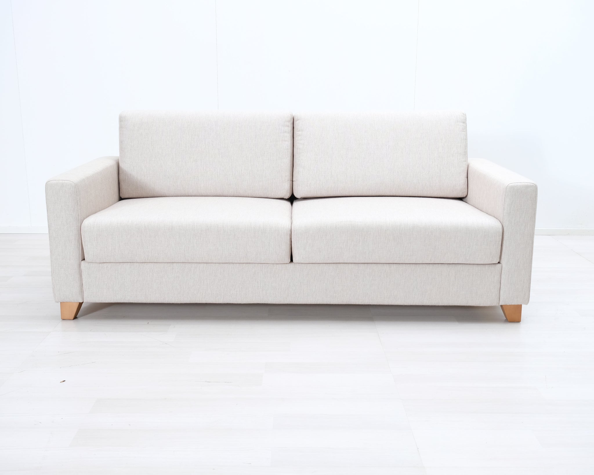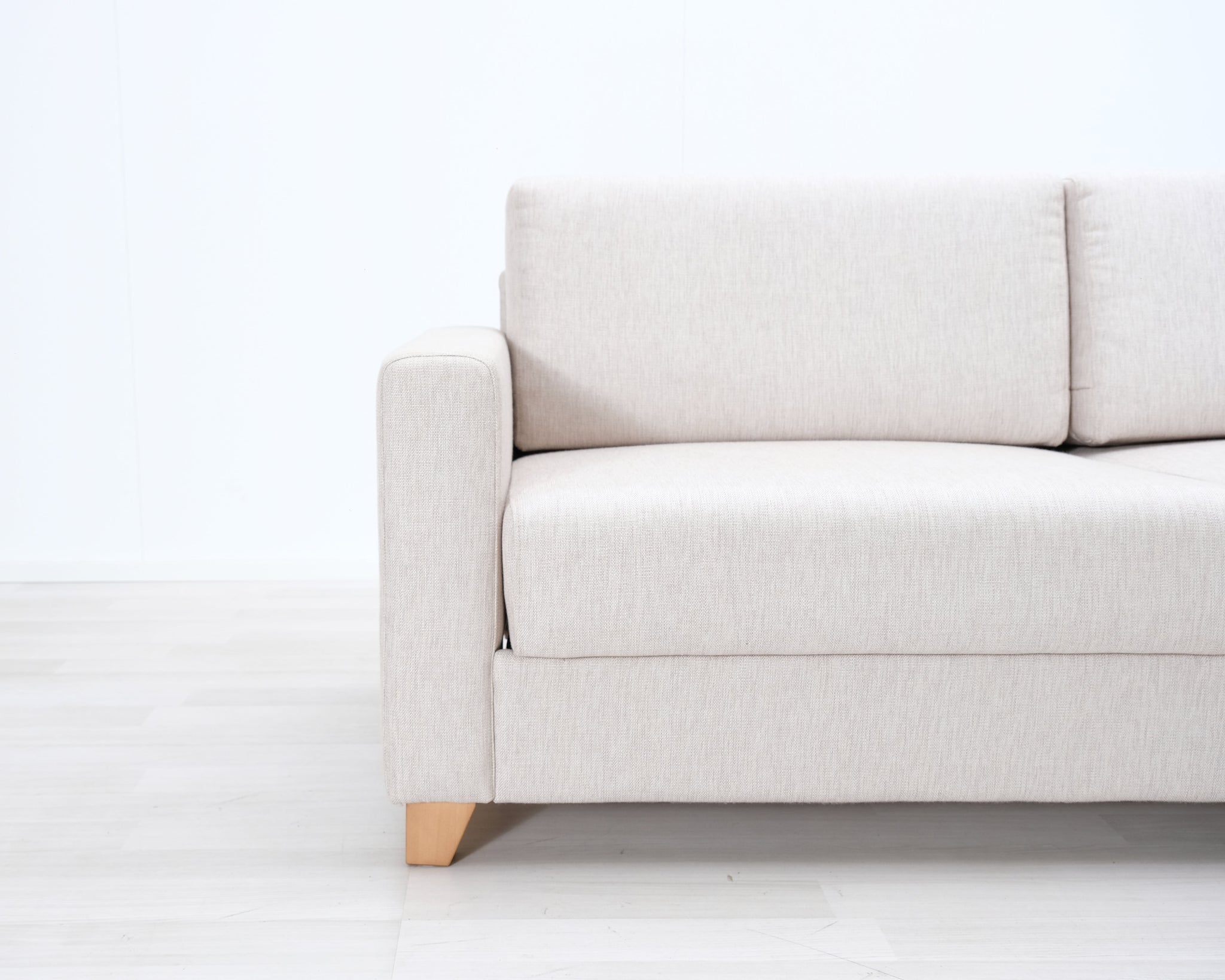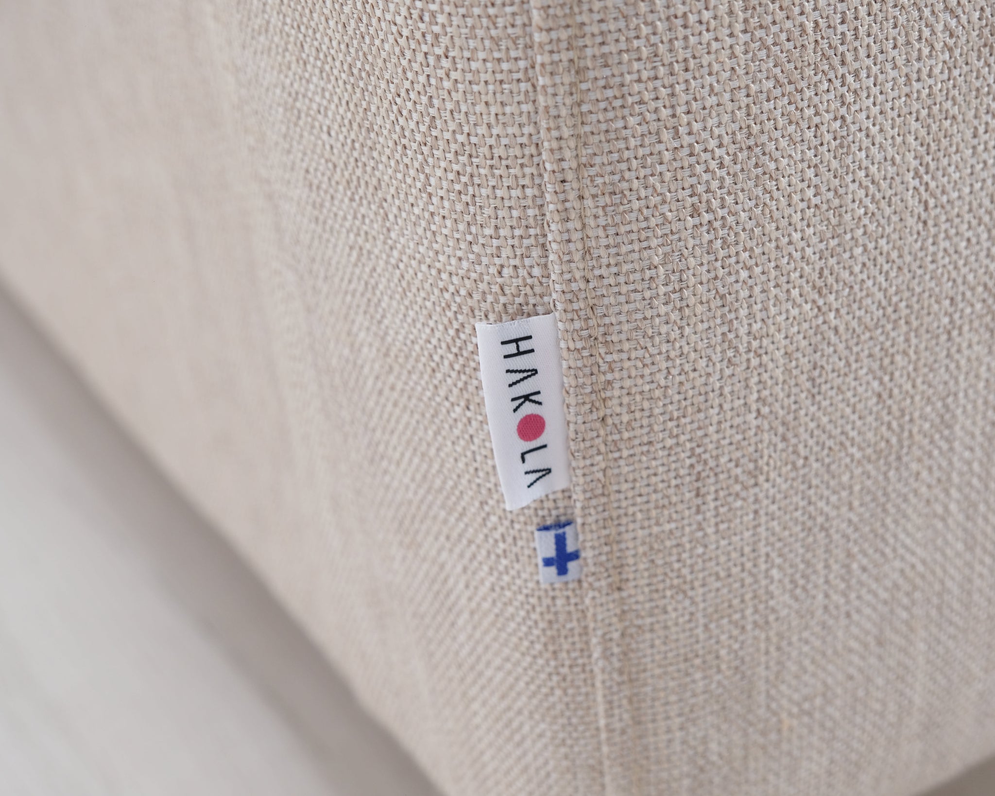 Kotimaisen Hakolan viehättävä vuodesohva on sekä mukava että käytännöllinen. Kahden istuttava sohva mahtuu hyvin pienempäänkin olohuoneeseen ja kankaan vaalea väri tuo lempeyttä sisustukseen.